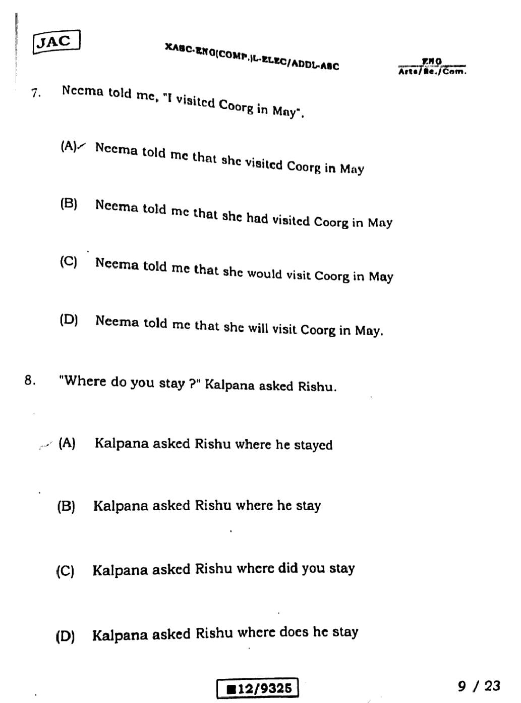 - English (Science ./ Commerce)