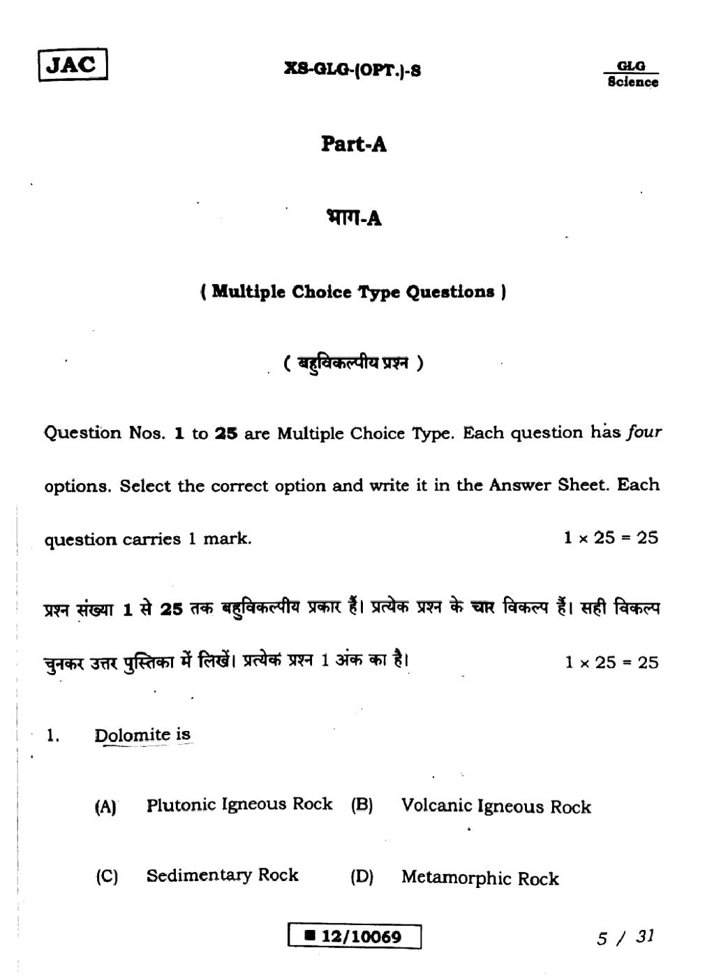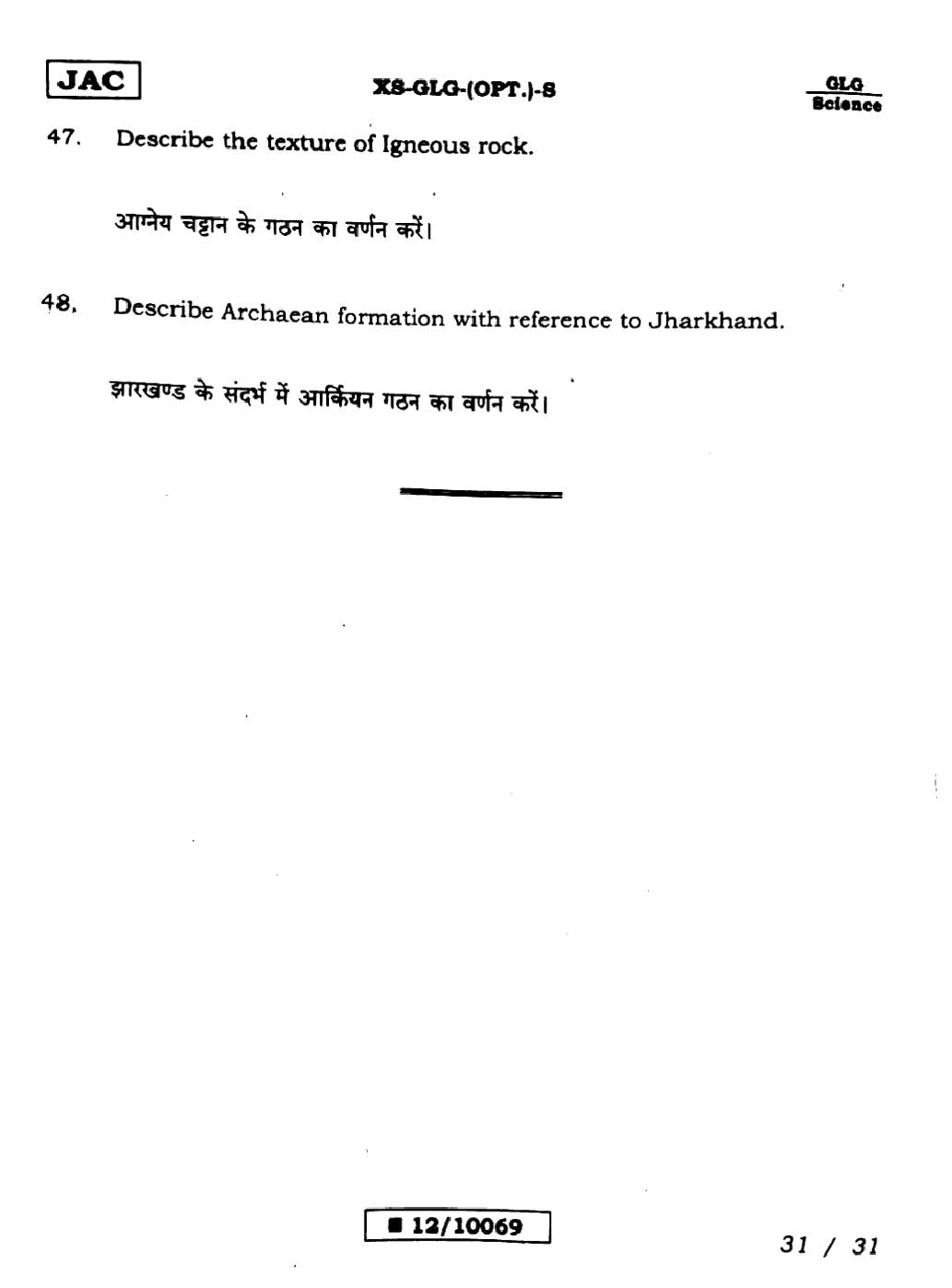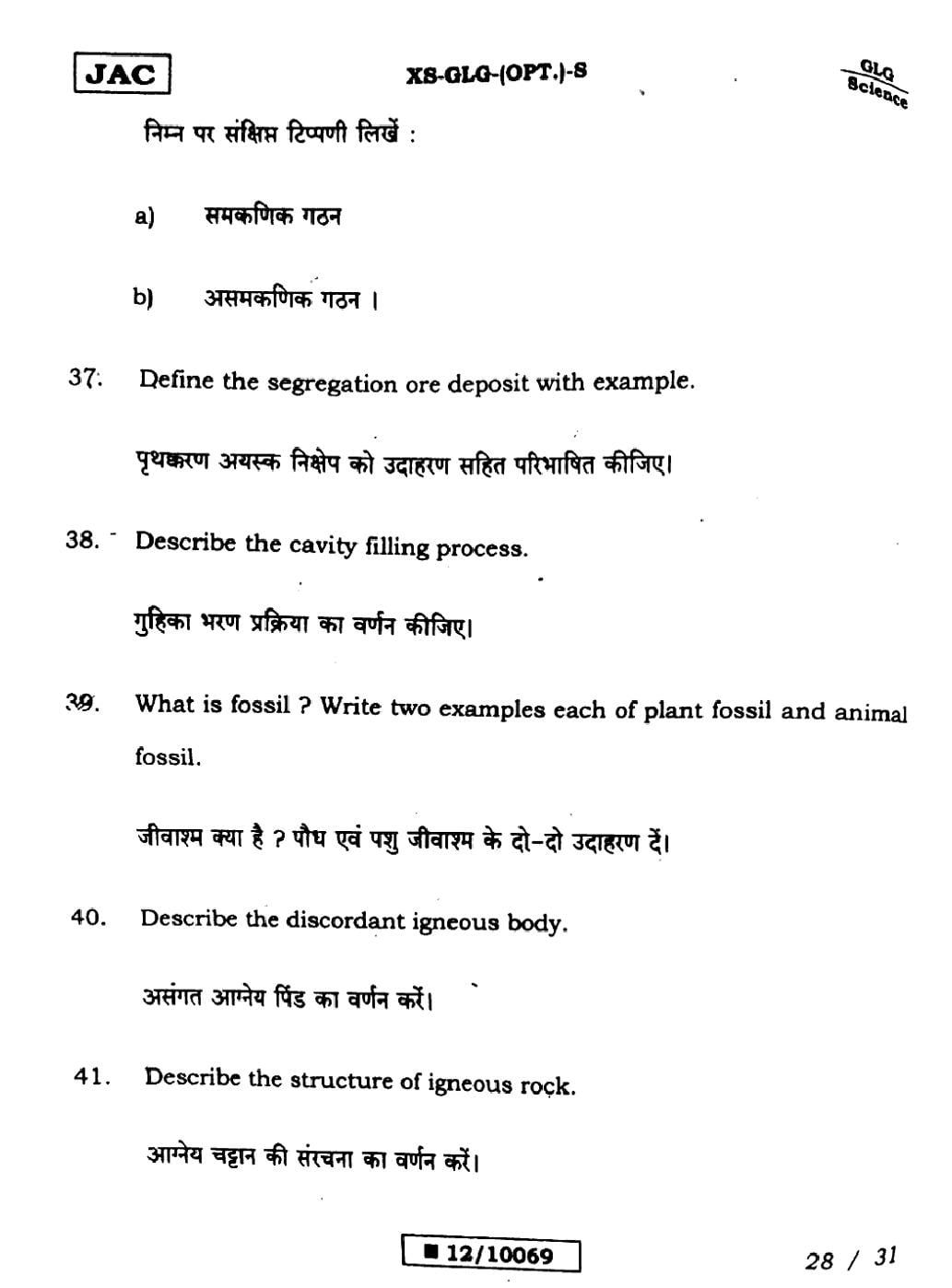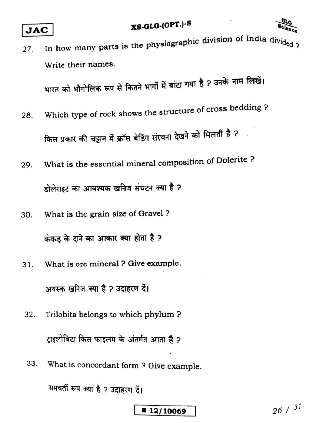 Geology Sample PapersJAC Class 12th Model Question Paper