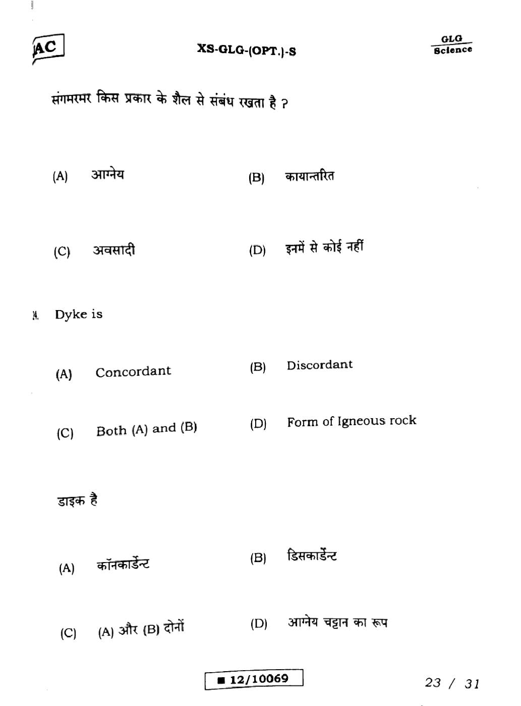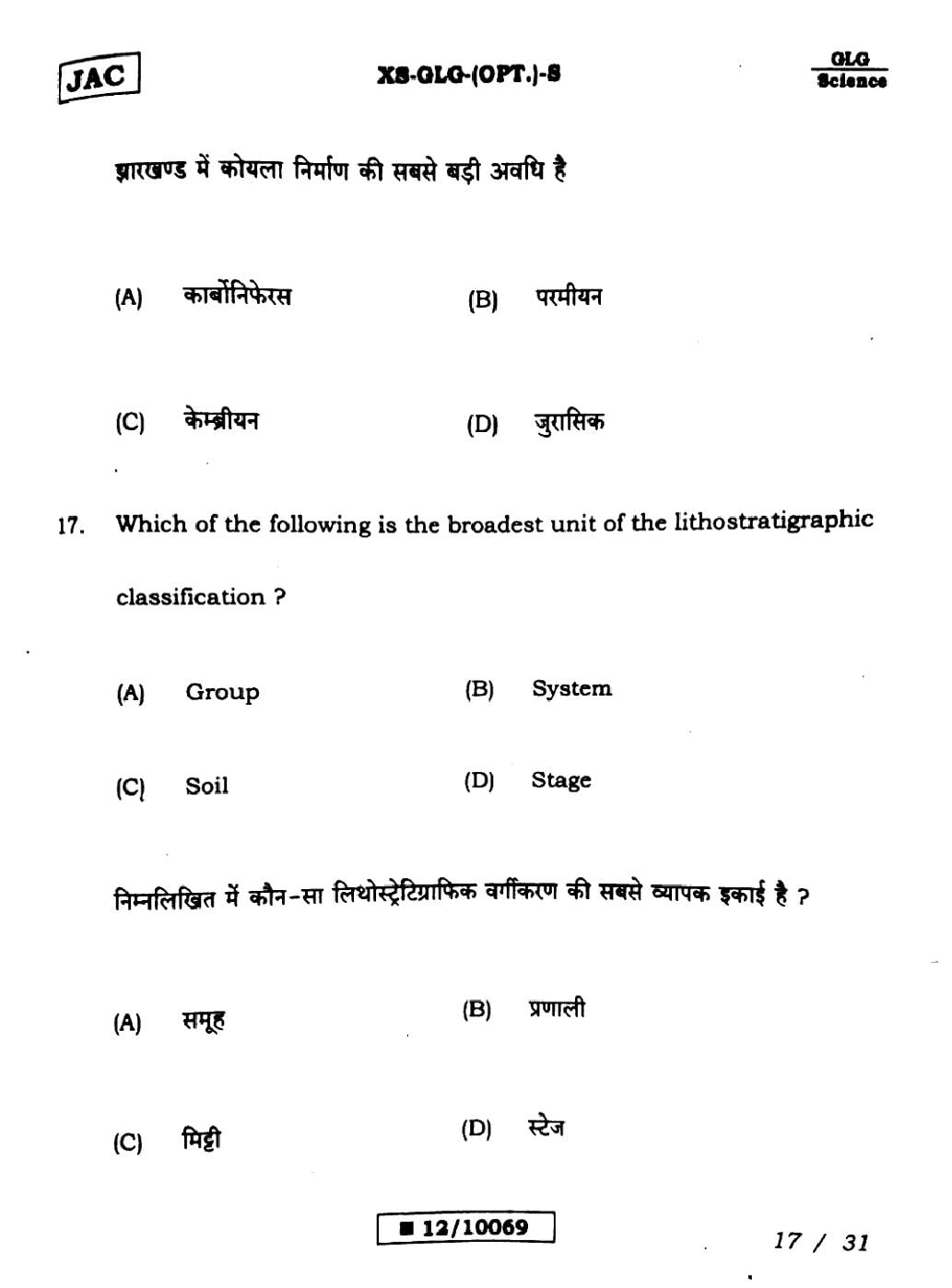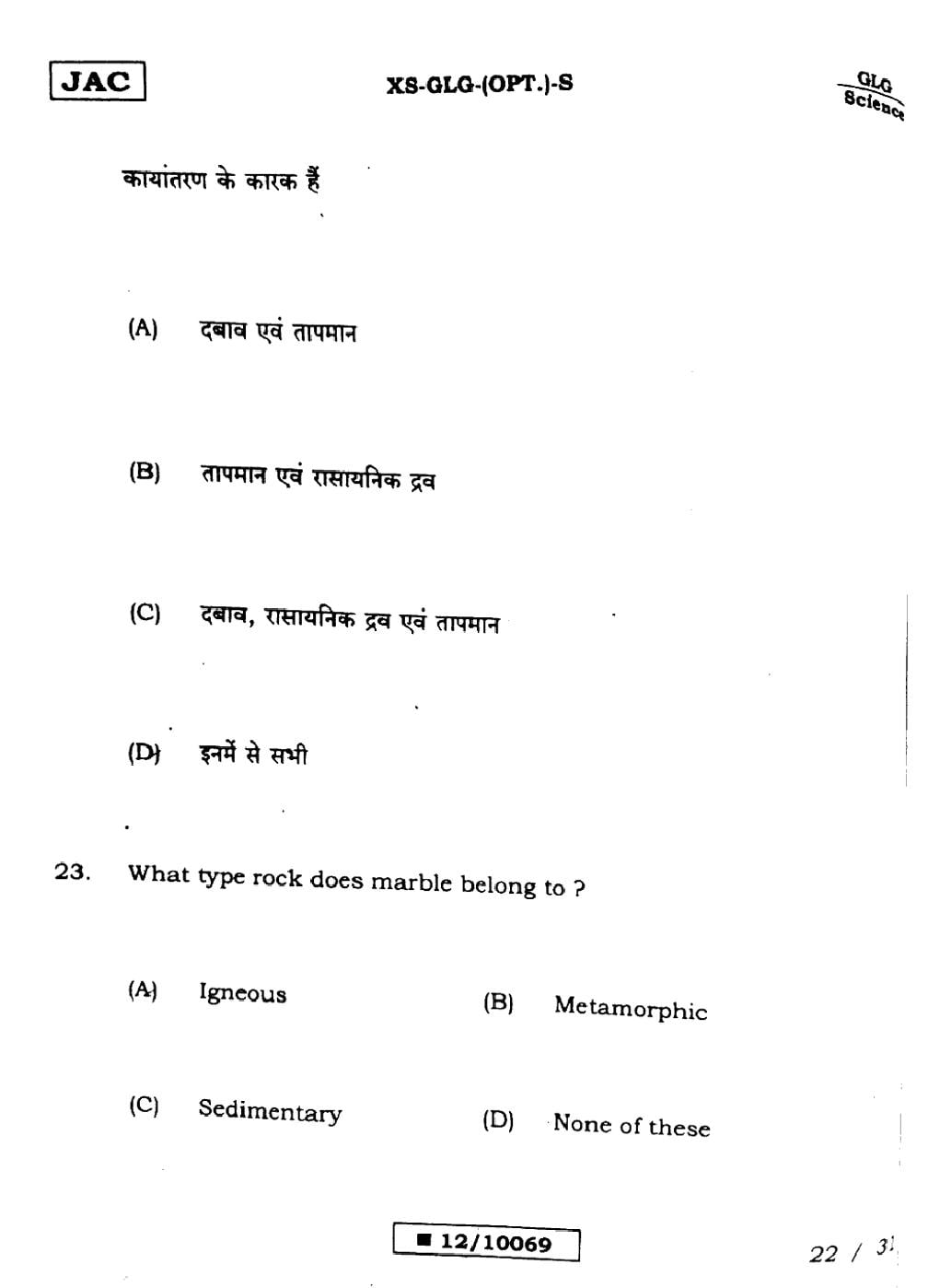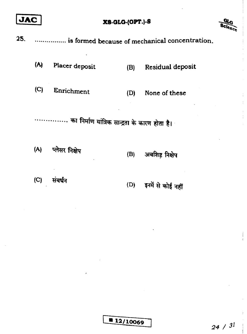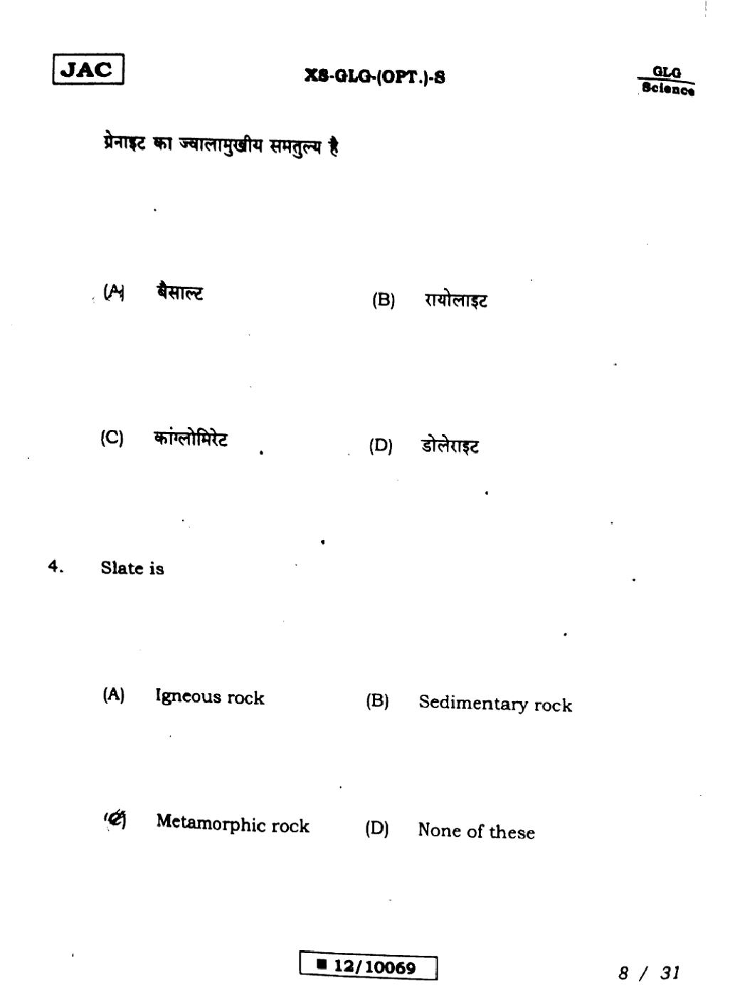 Geology Sample PapersJAC Class 12th Model Question Paper