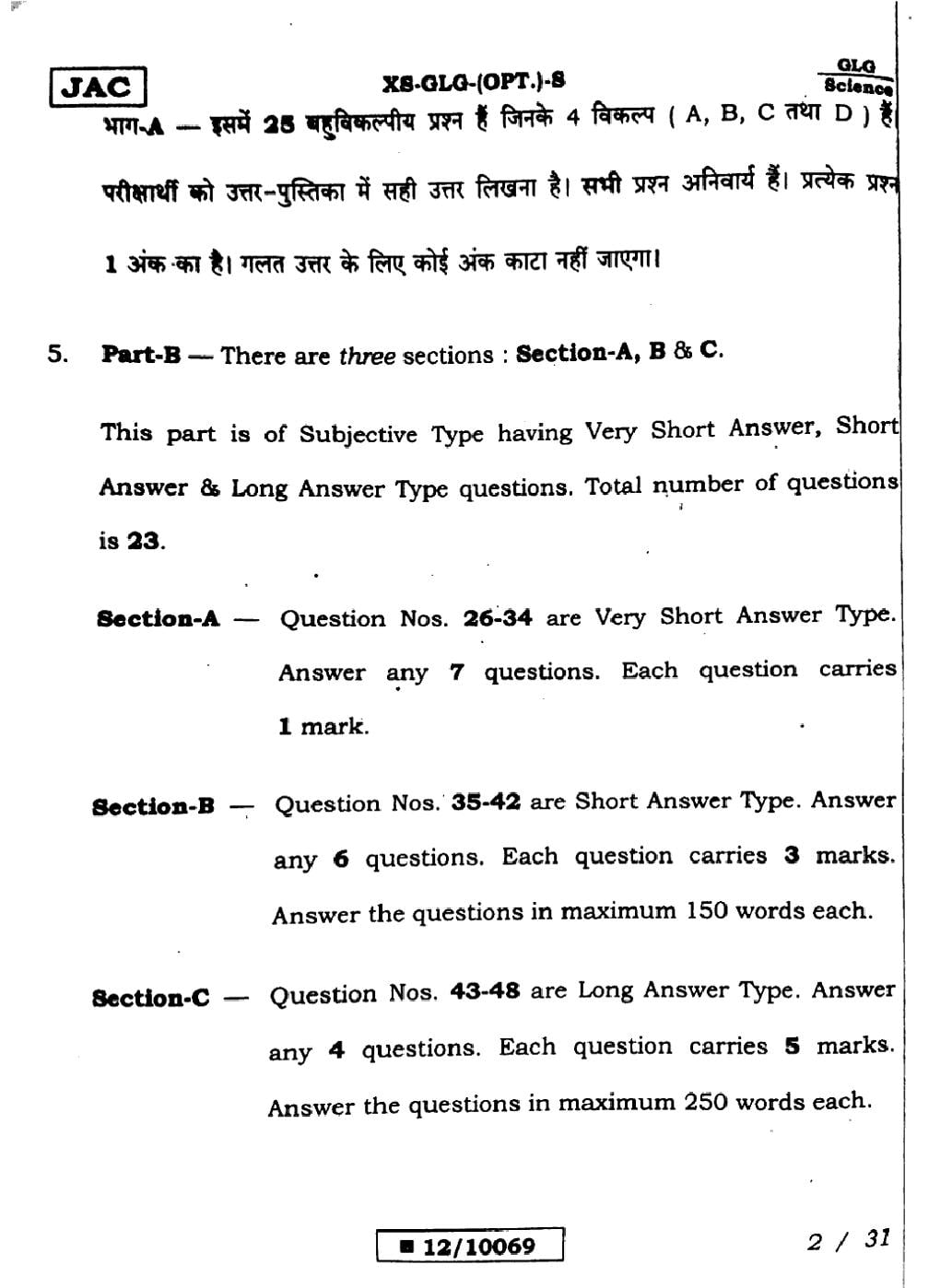 JAC Previous Year Question Papers
