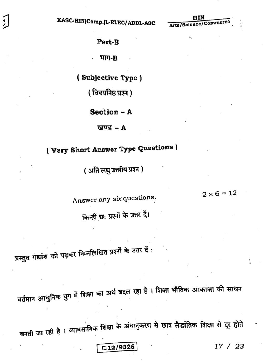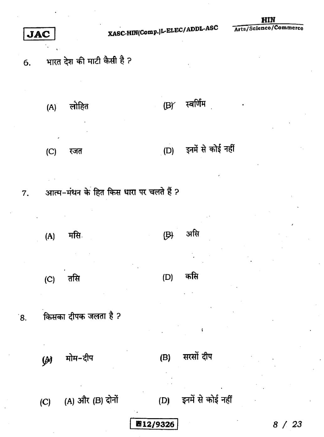 JAC Board Class 12 Hindi Previous Year Question Paper