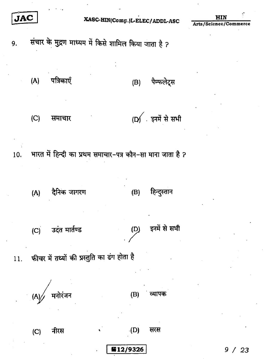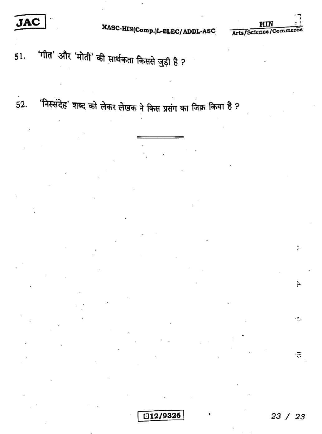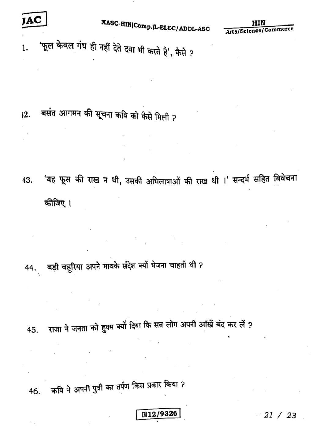 The JAC Board Previous Year Question Paper of Class 12 for Hindi is as follows.