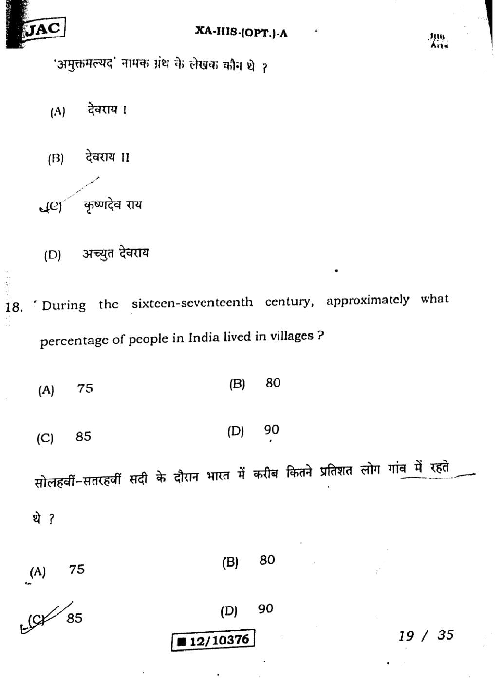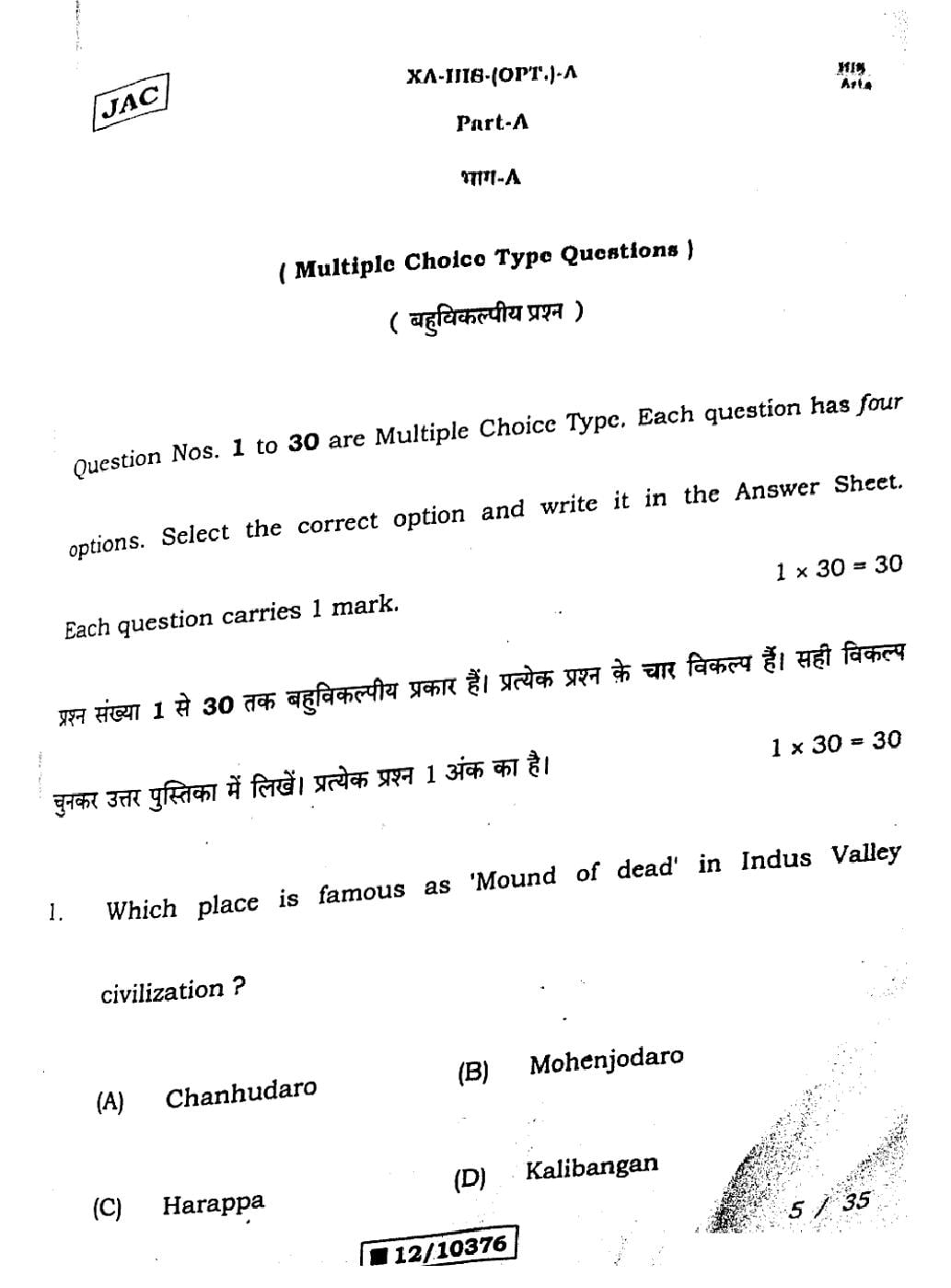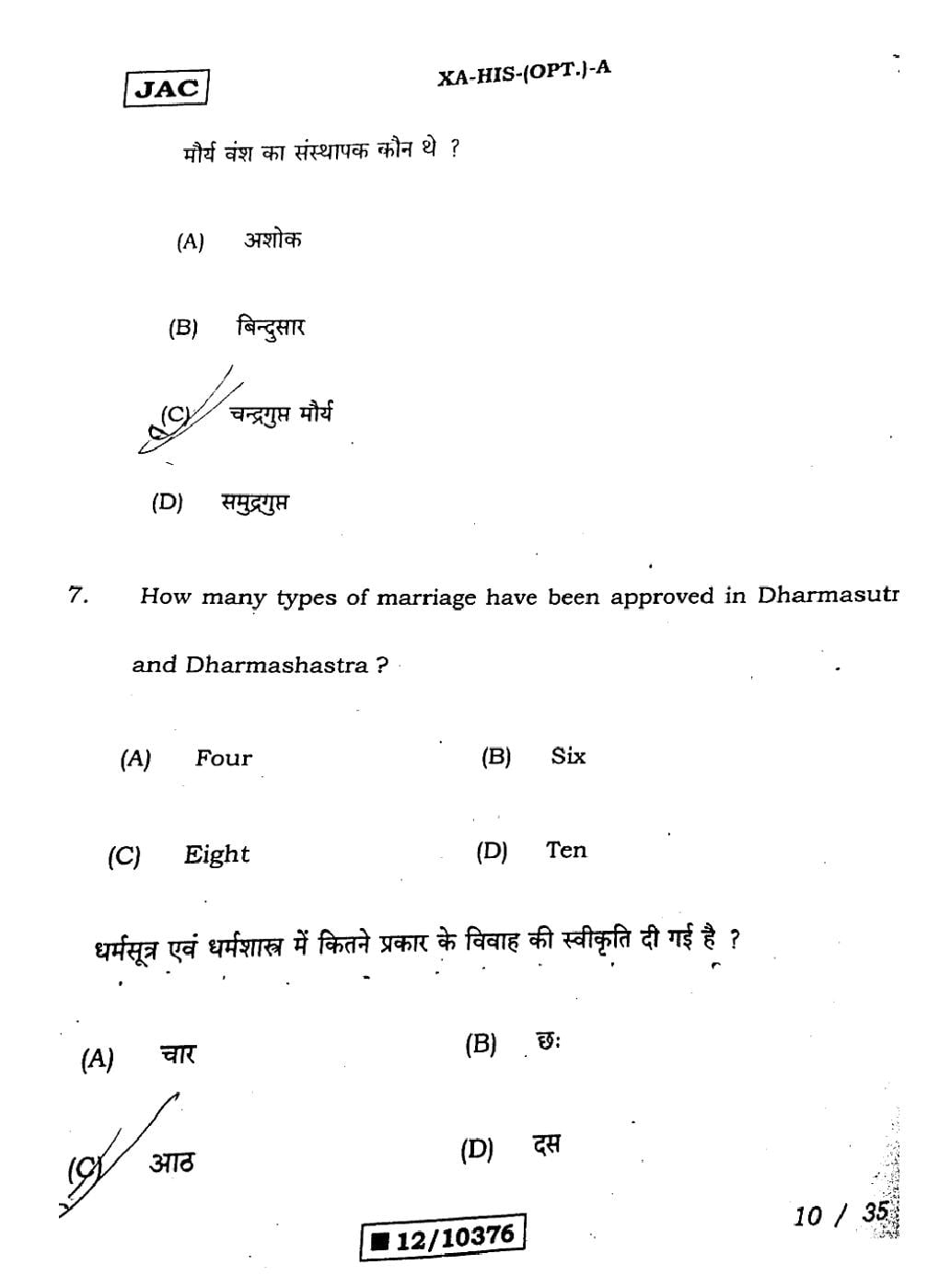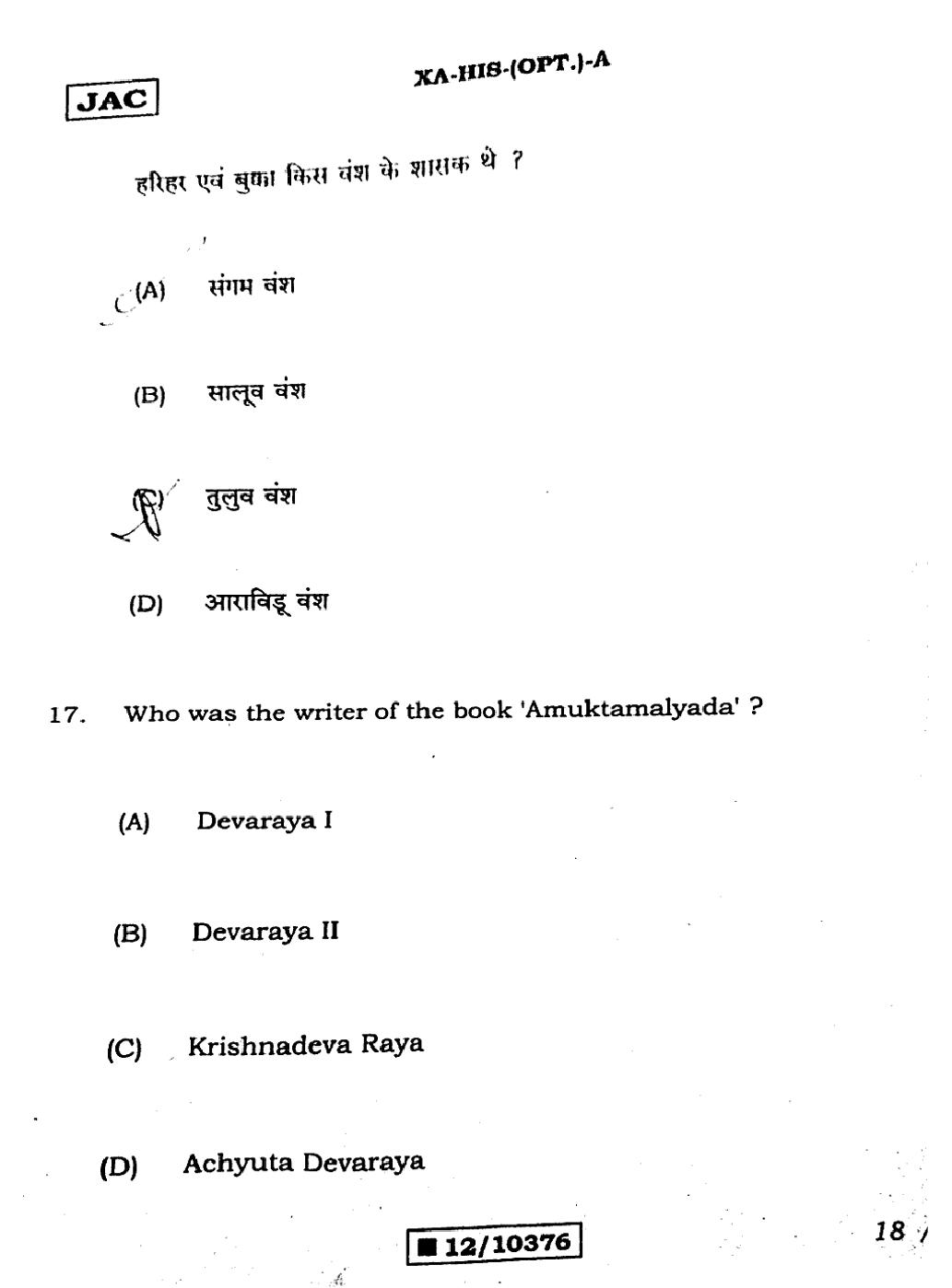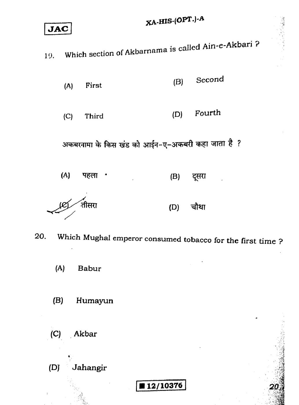 JAC Board Class 12 History Previous Year Question Paper PDF