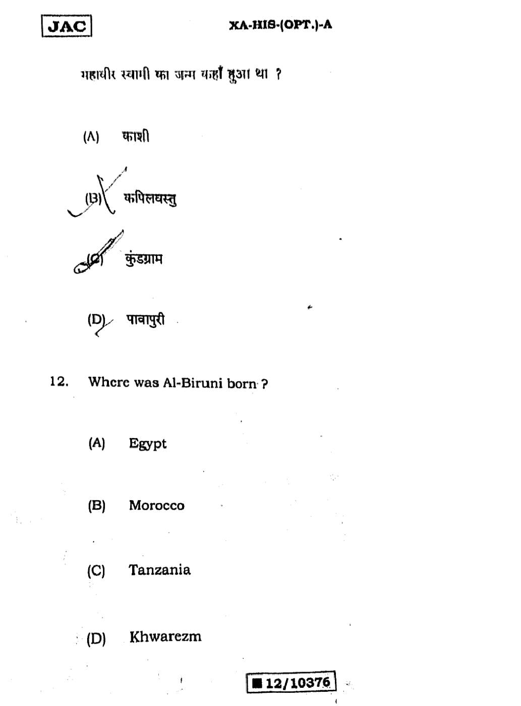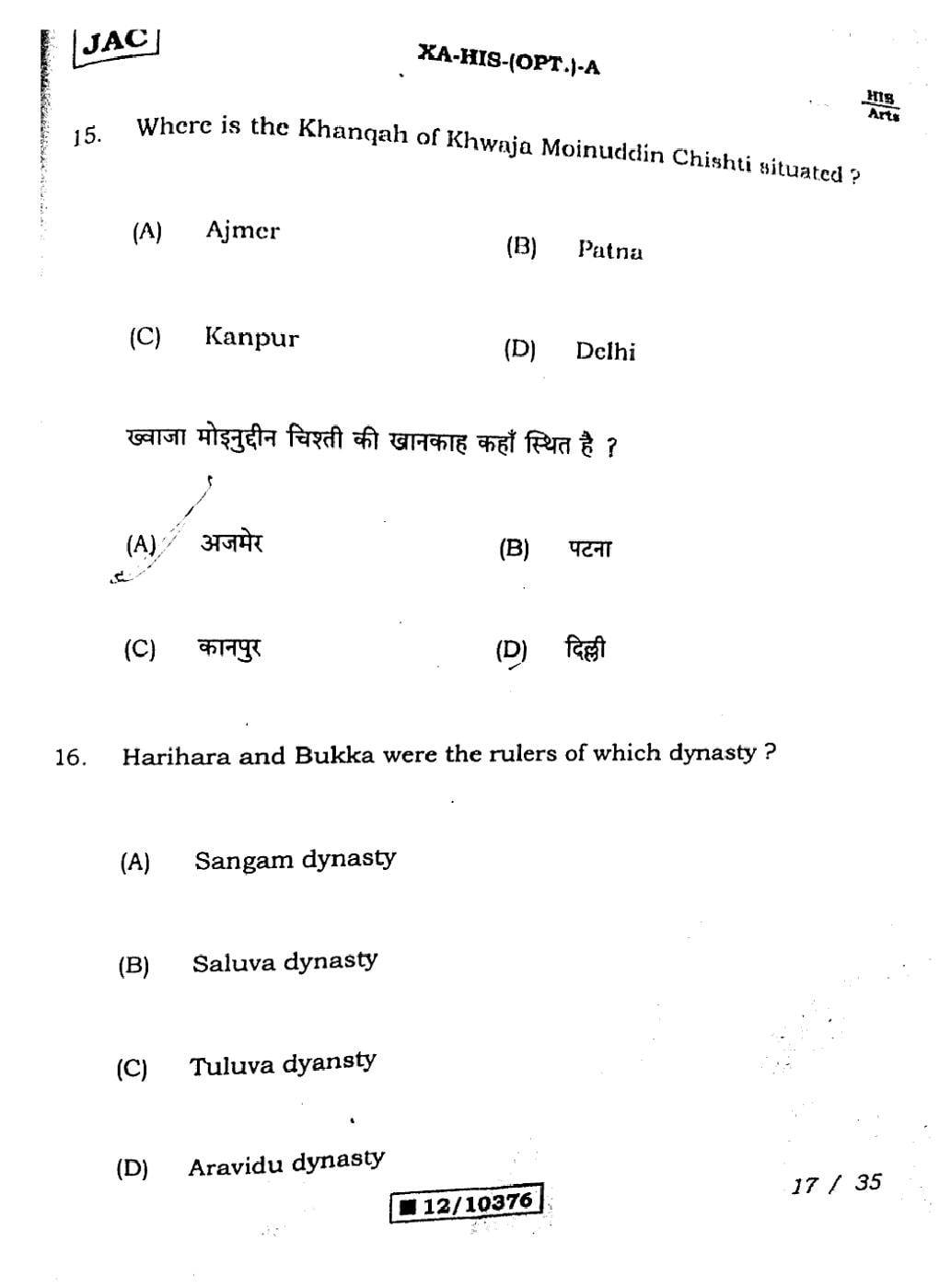 | Resource Here | Jharkhand Board Previous Year Question Paper of Class 12 History |