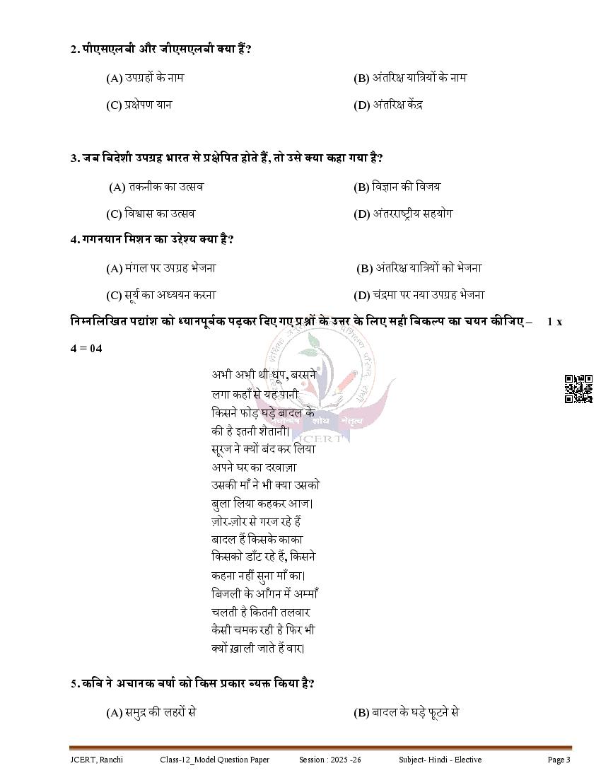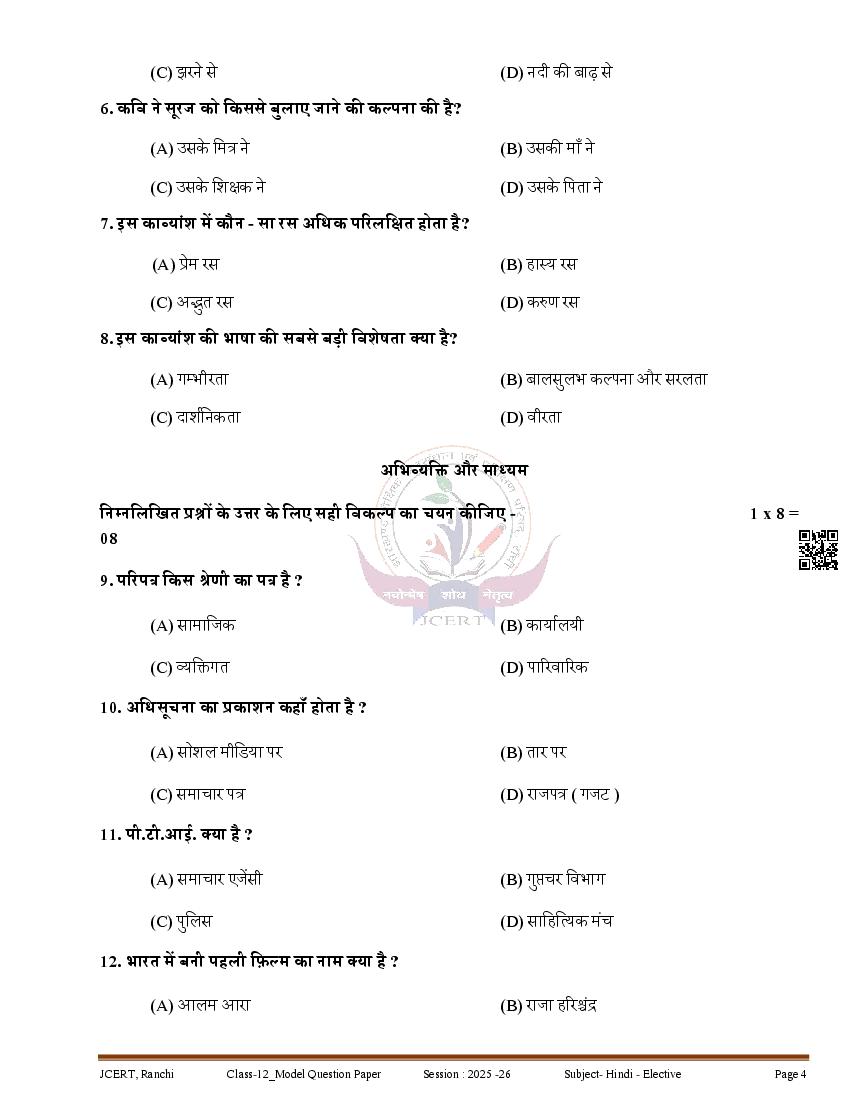 Study Material HereJharkhand Board Class 12 Model Paper for Hindi Elective