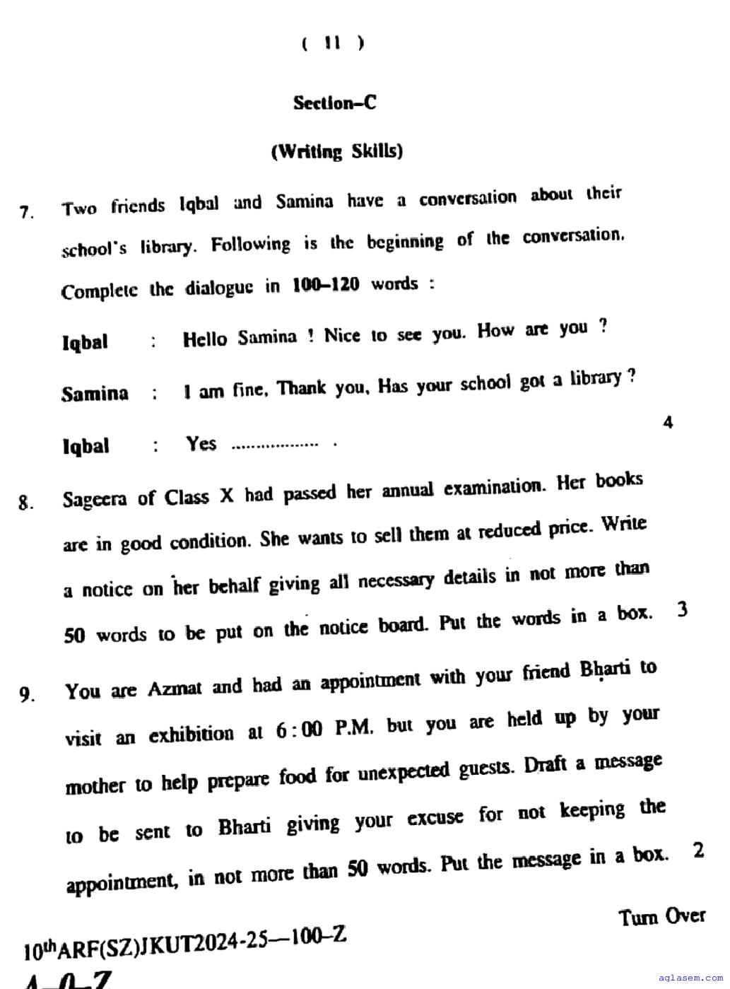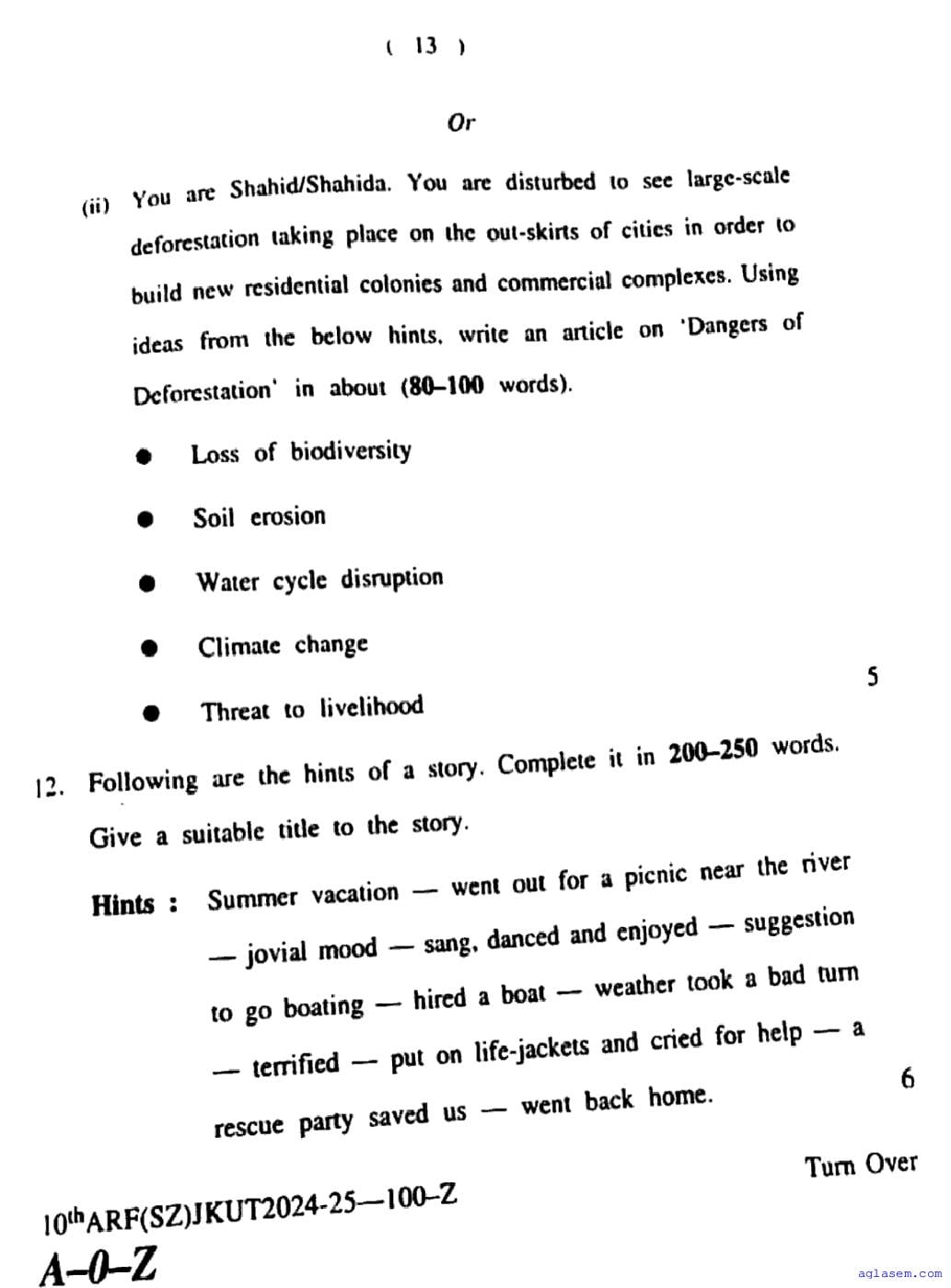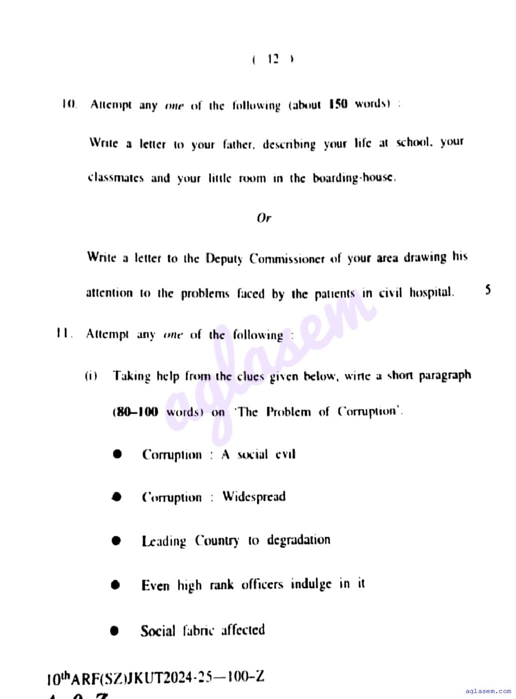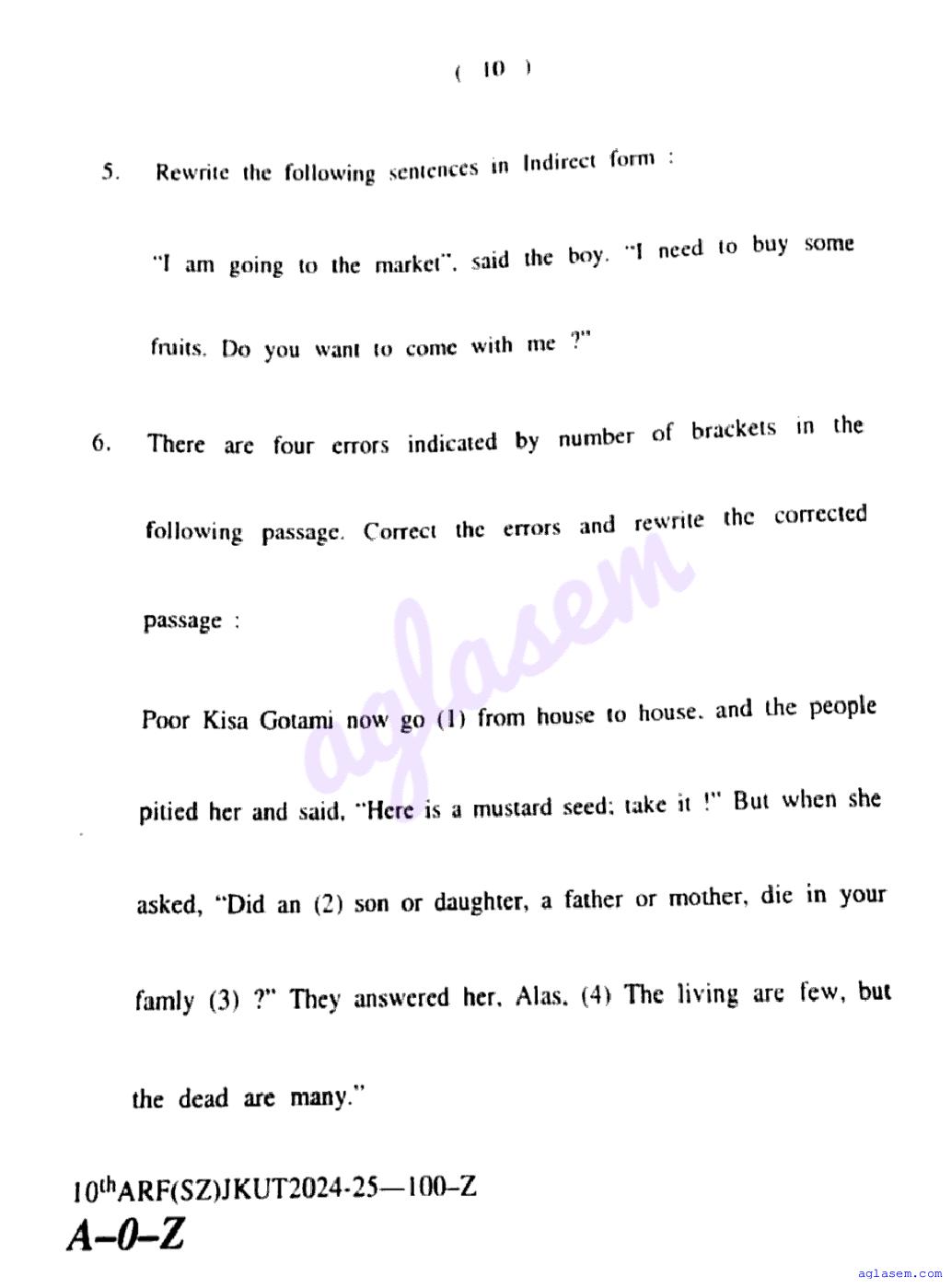 | Educational Resource Here | Jammu and Kashmir Board Old Papers of Class 10 English |