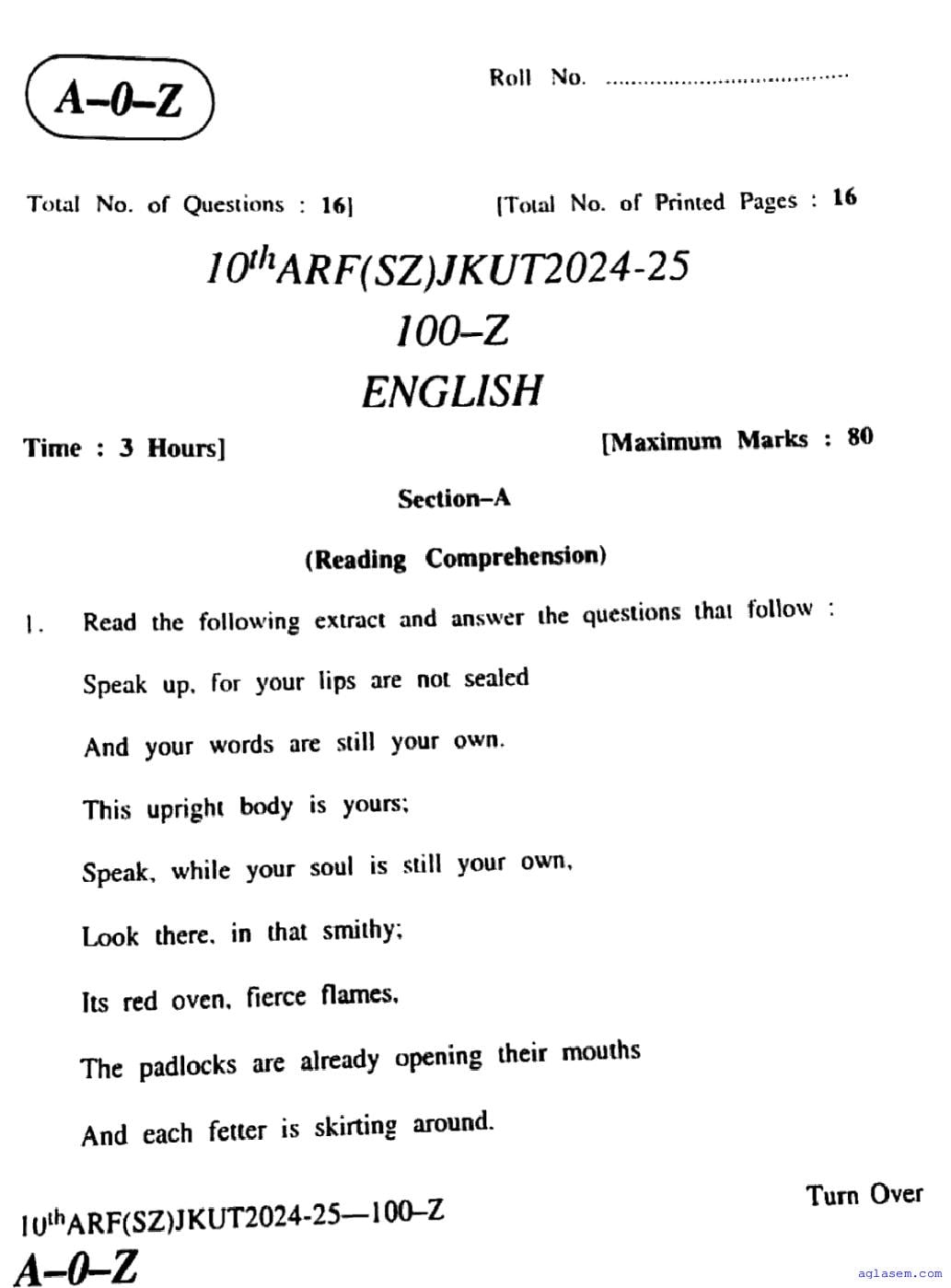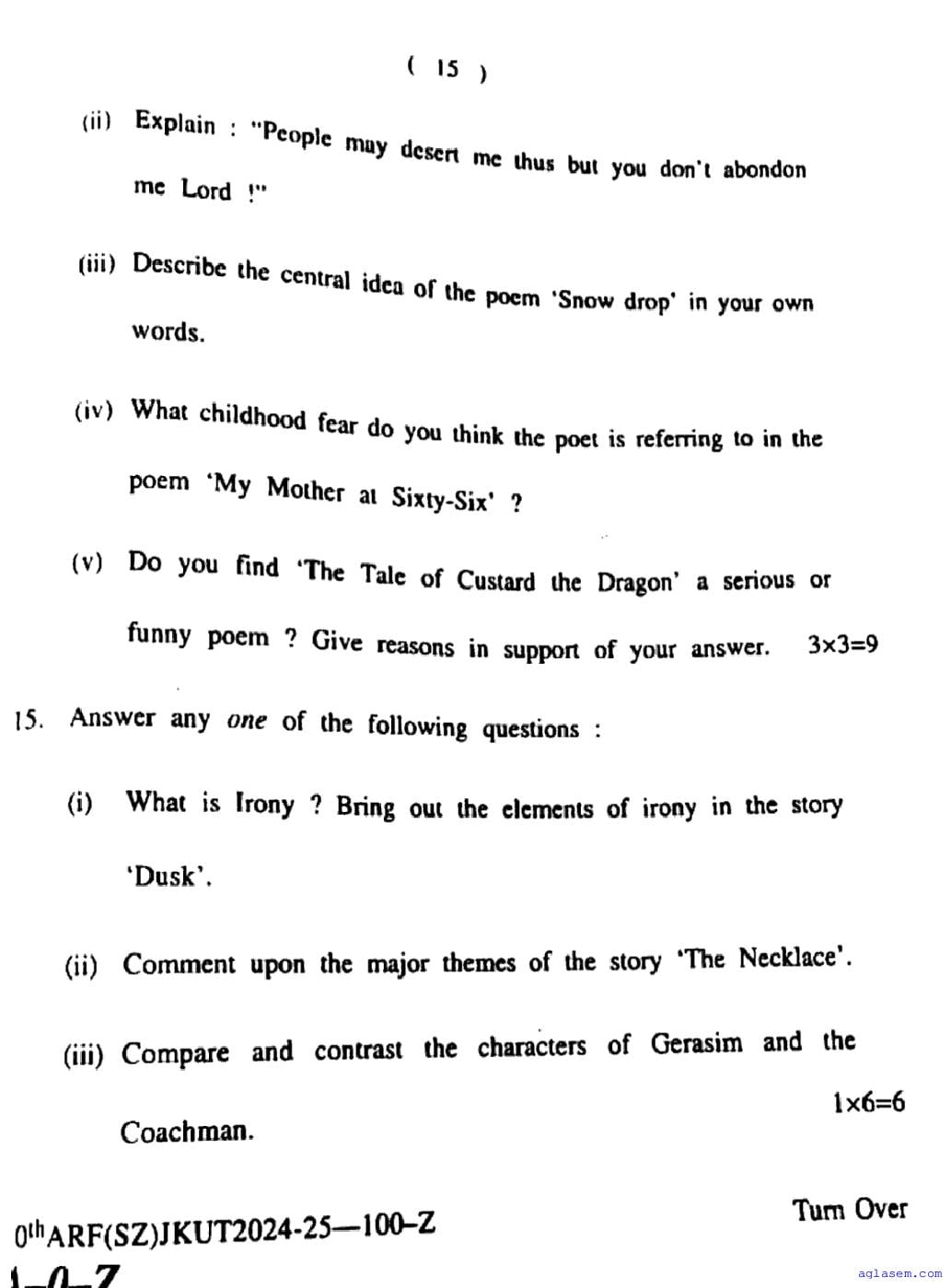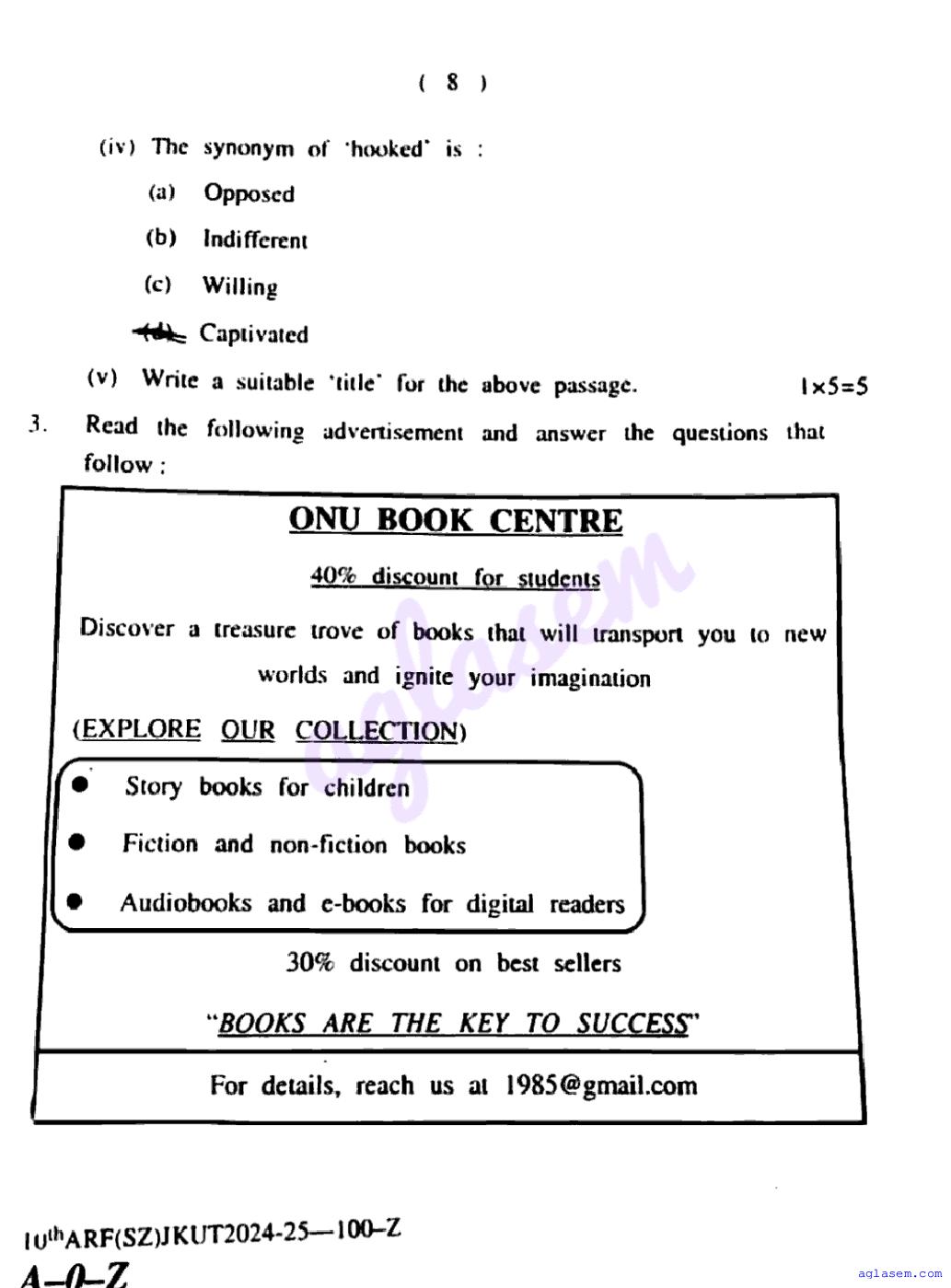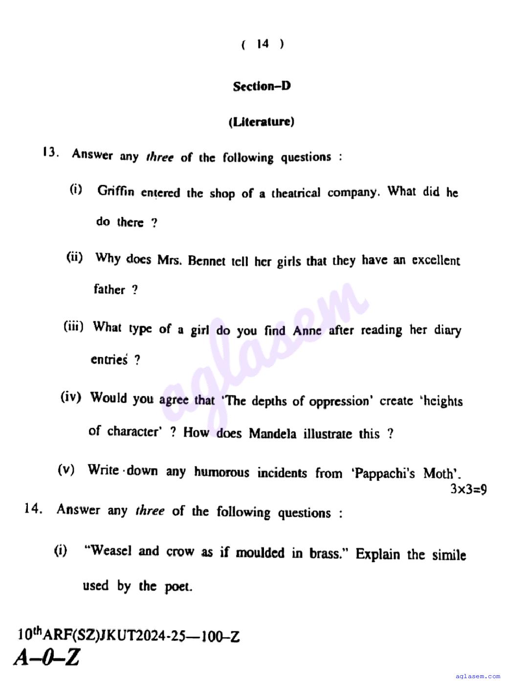 | Educational Resource Here | Jammu and Kashmir Board Old Papers of Class 10 English |