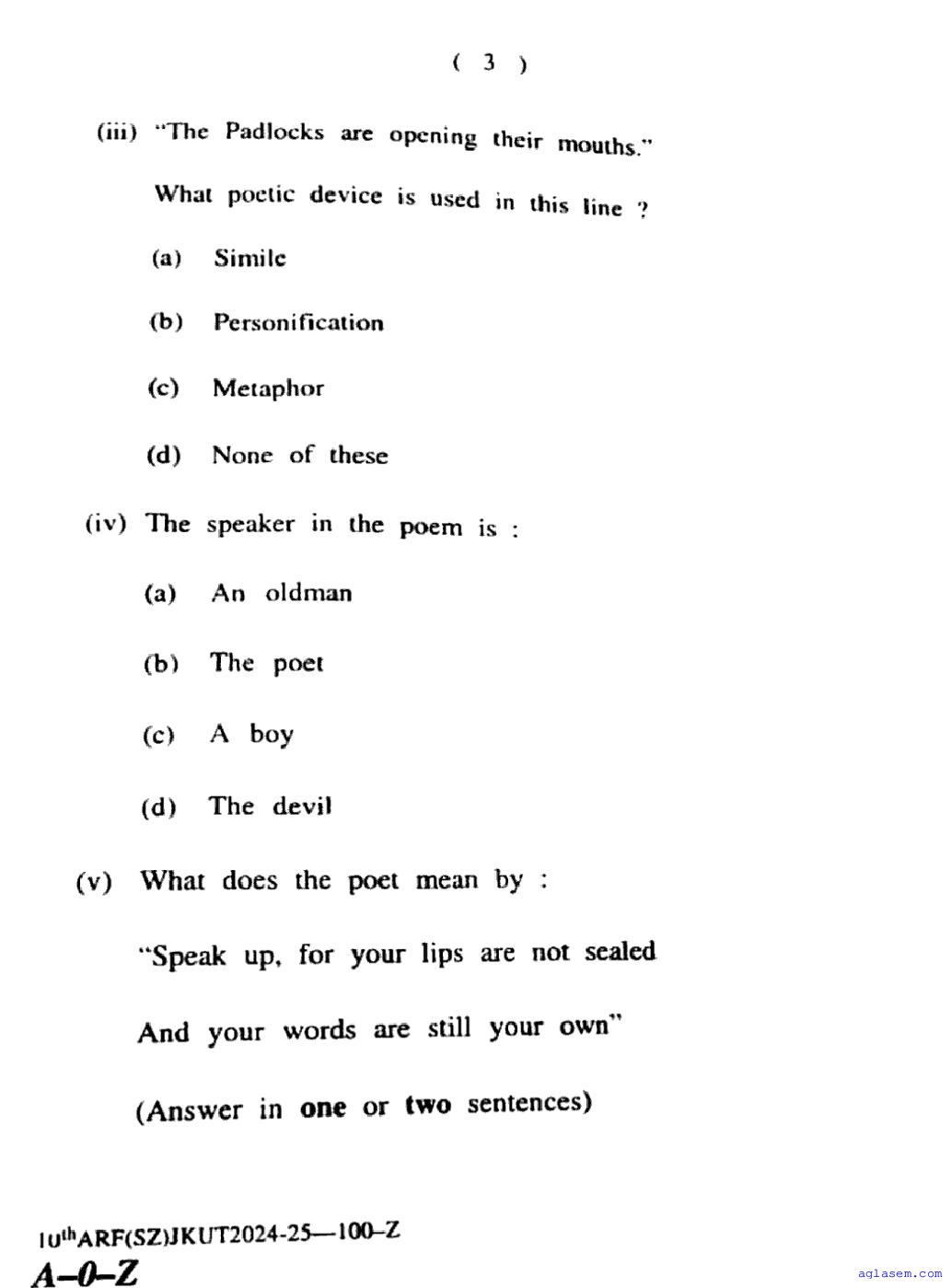 If you have any queries on JKBOSE Class 10th English Question Paper , then please ask in comments below.