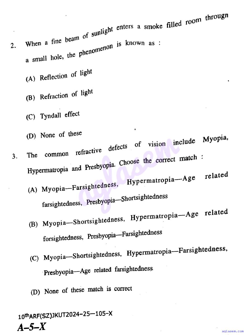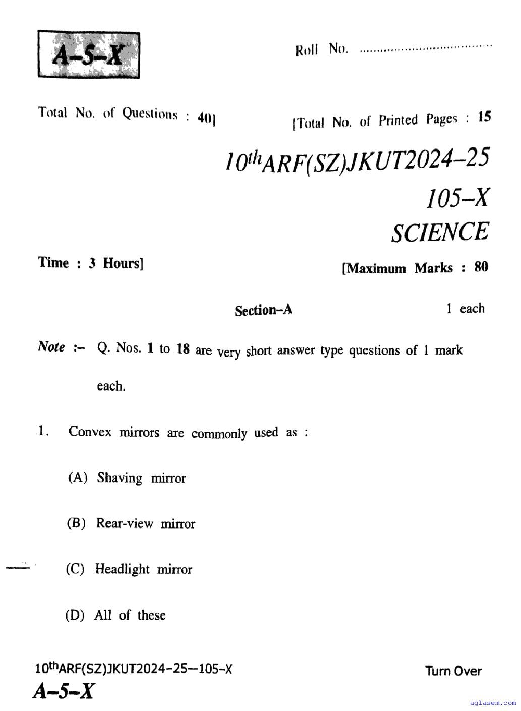 JKBOSE Class 10th Question Paper 2025 Science View Download