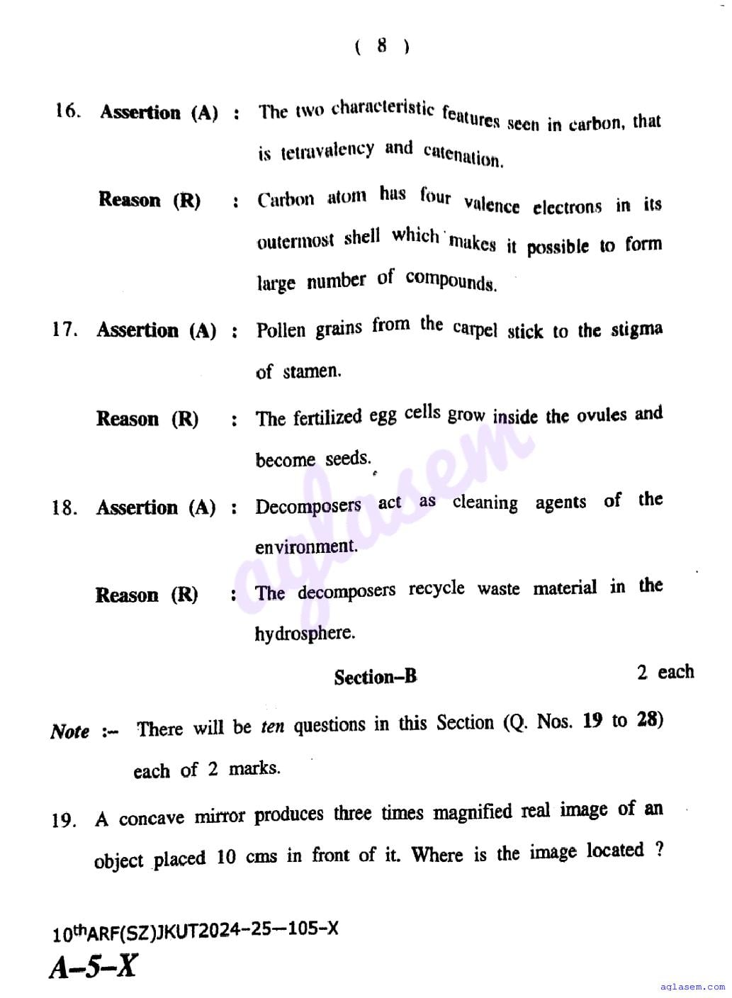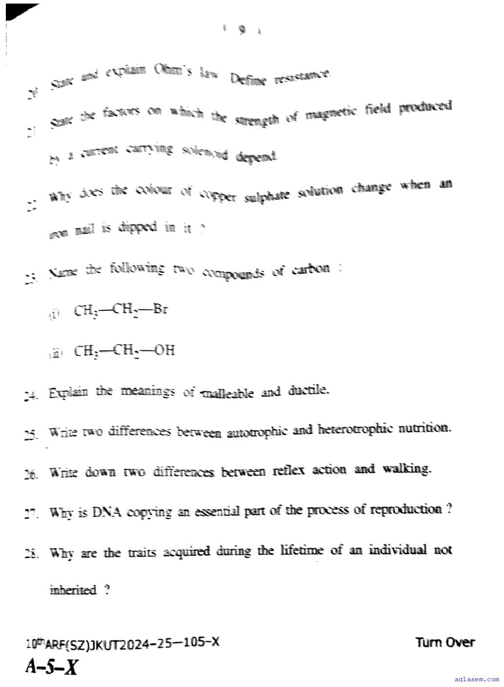 | Educational Resource Here | Jammu and Kashmir Board Old Papers of Class 10 Science |