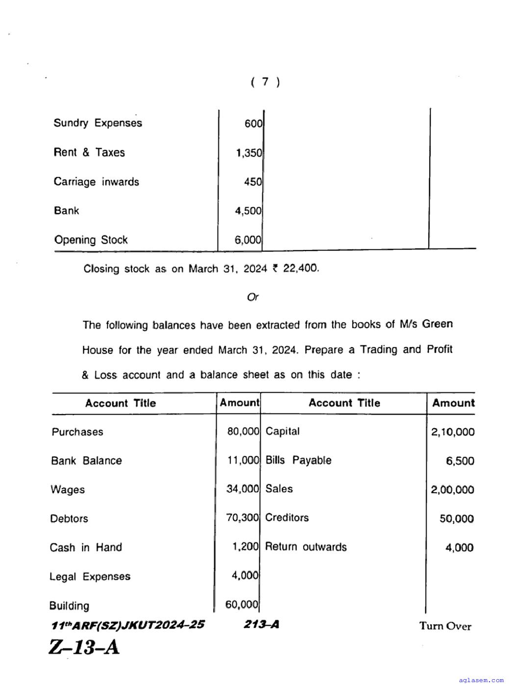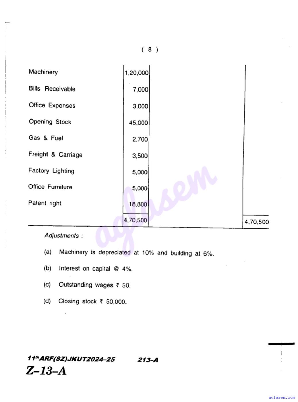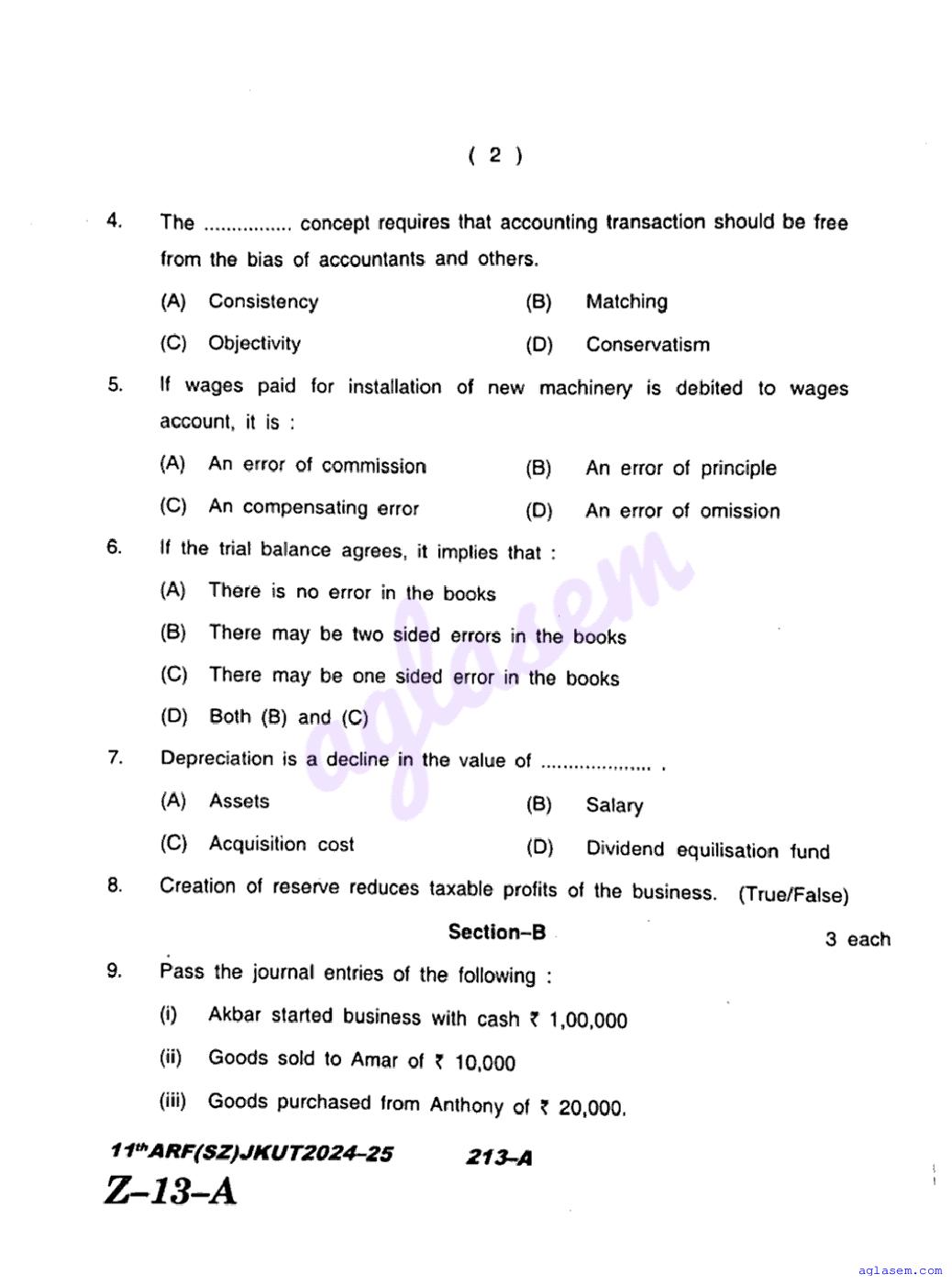 JKBOSE Class 11th Accountancy Question Paper