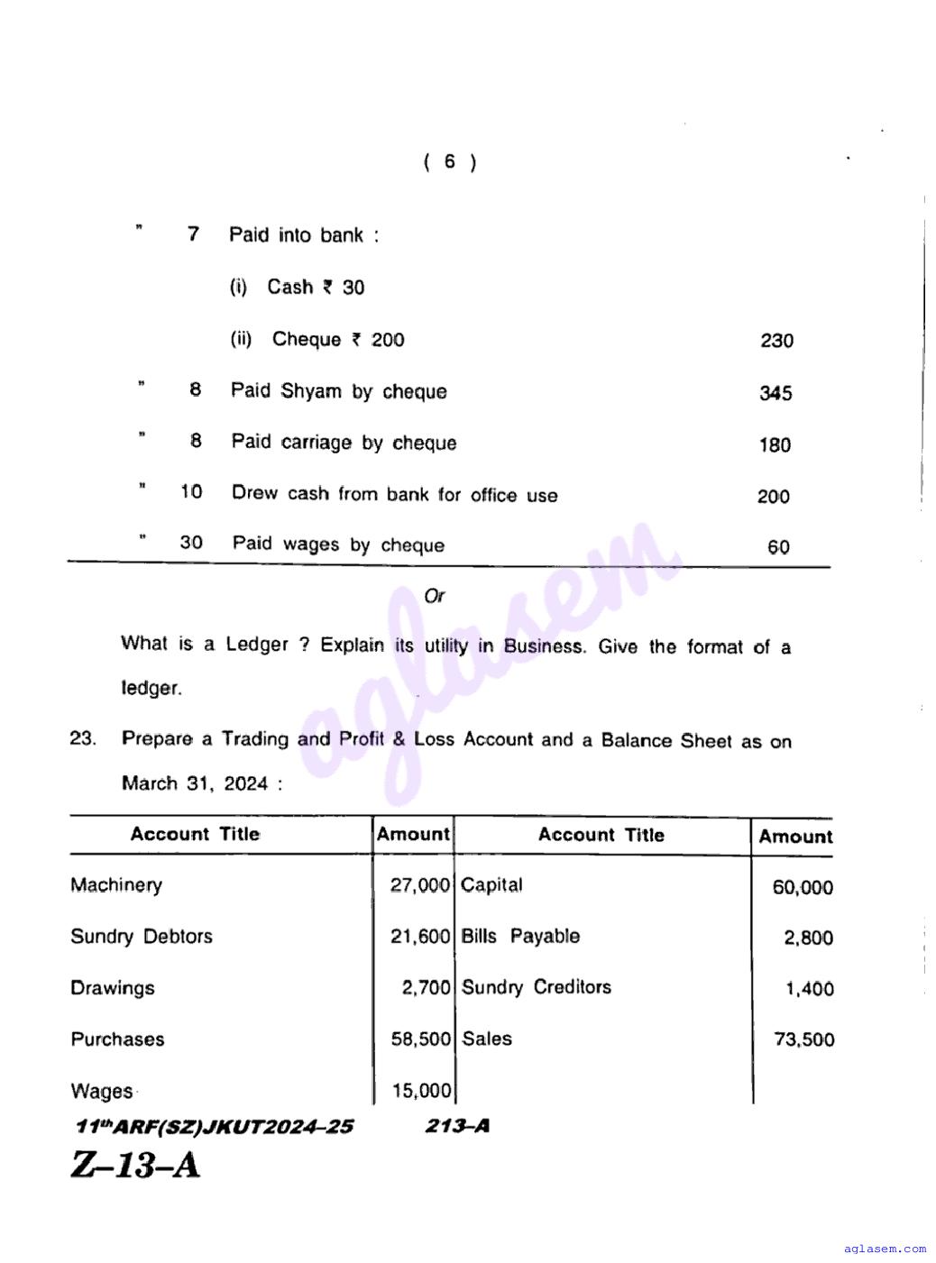 JKBOSE Class 11th Accountancy Question Paper PDF
