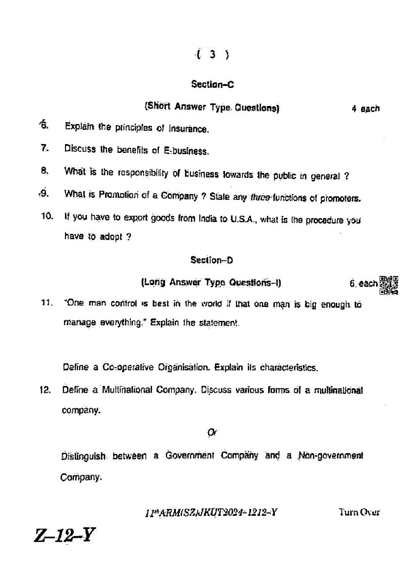 The JKBOSE question paper for class 11 Business Studies is as follows.