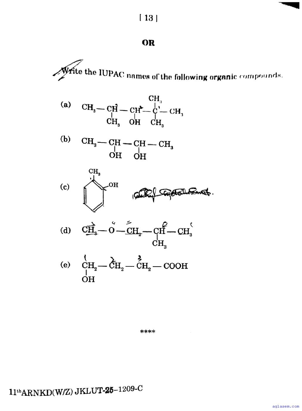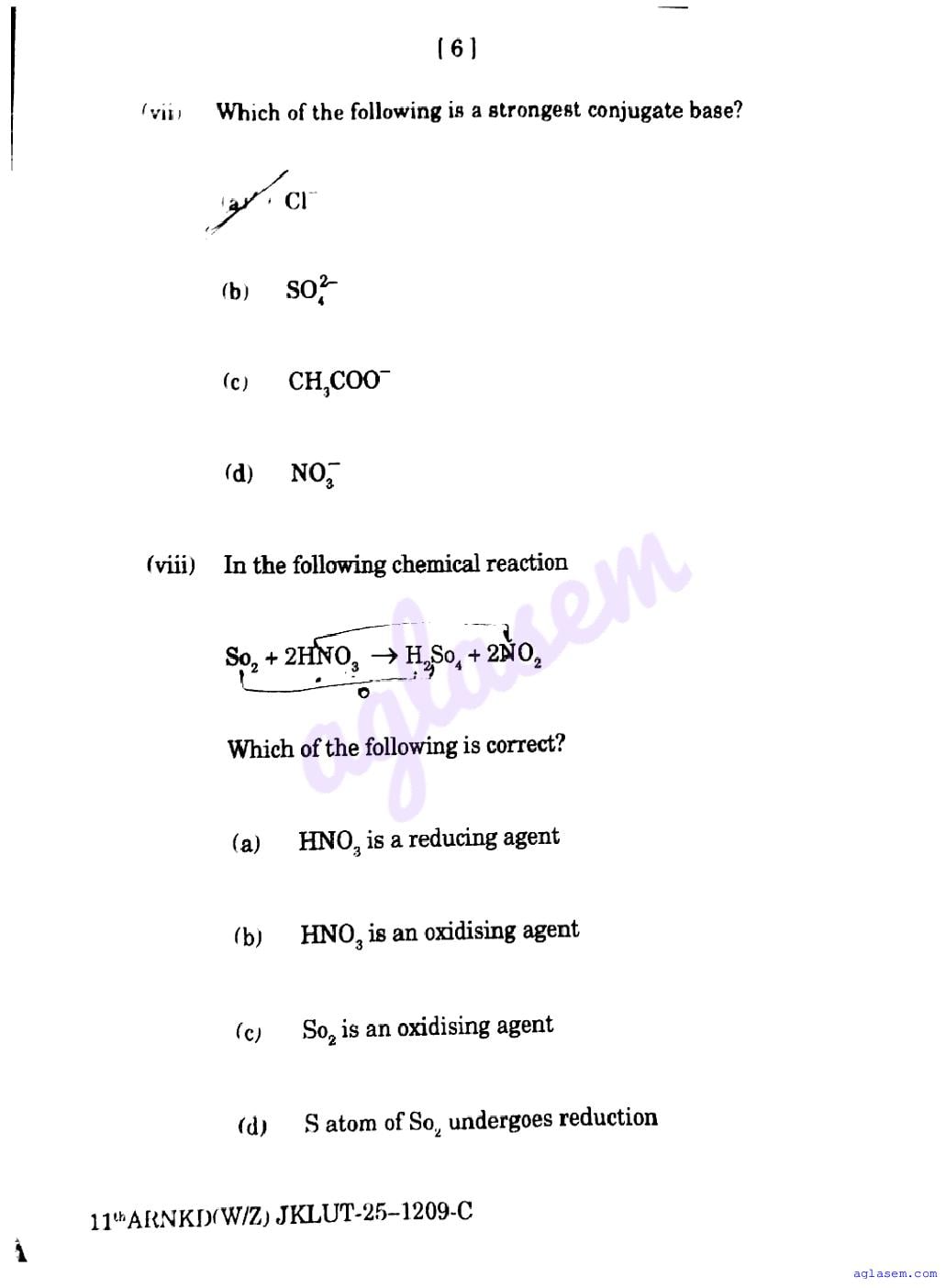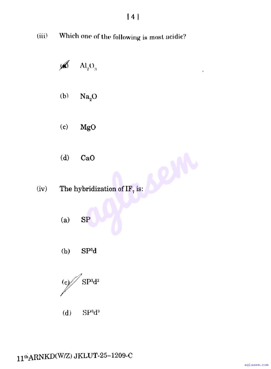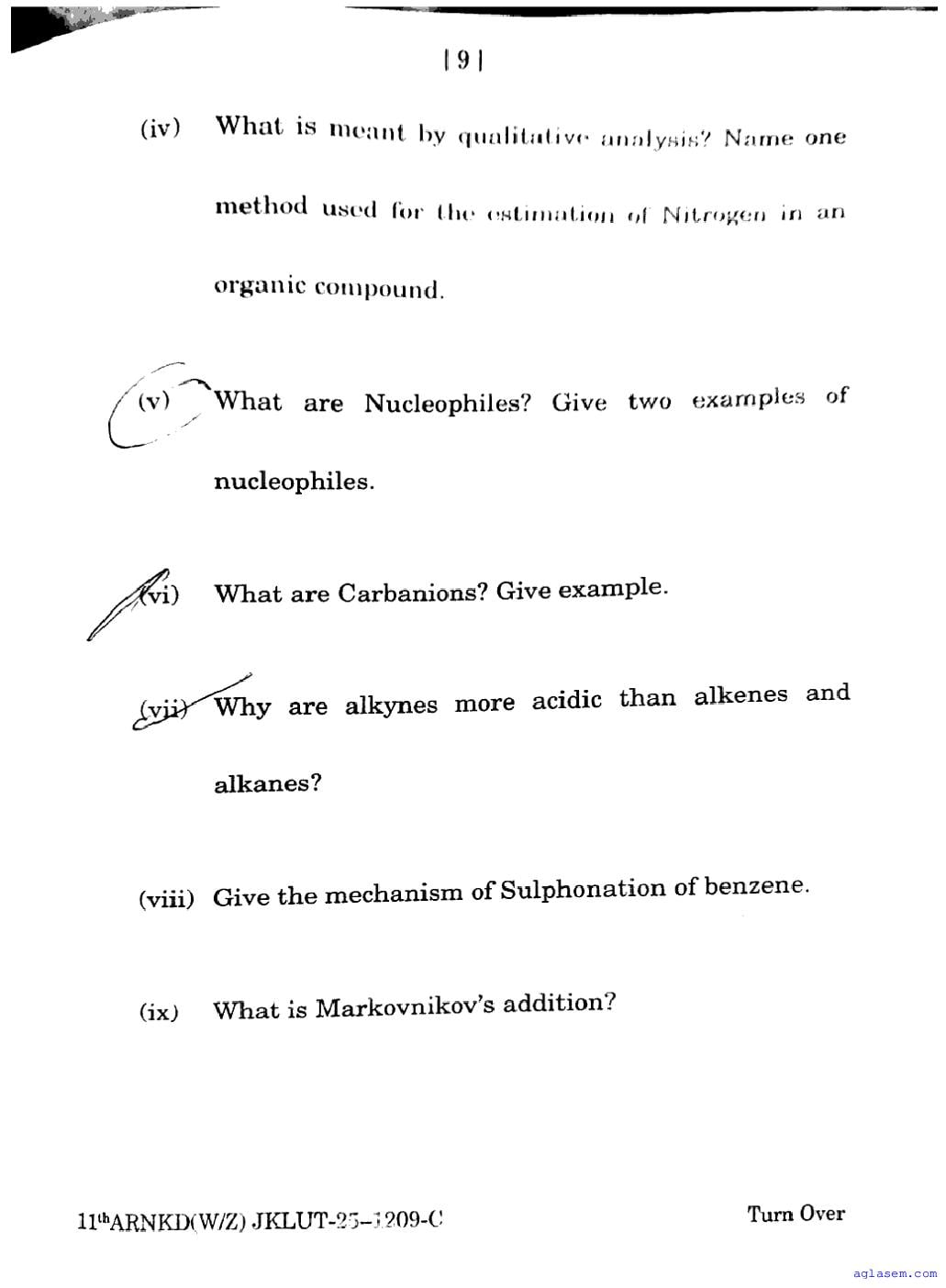 The JKBOSE question paper for class 11 Chemistry is as follows.