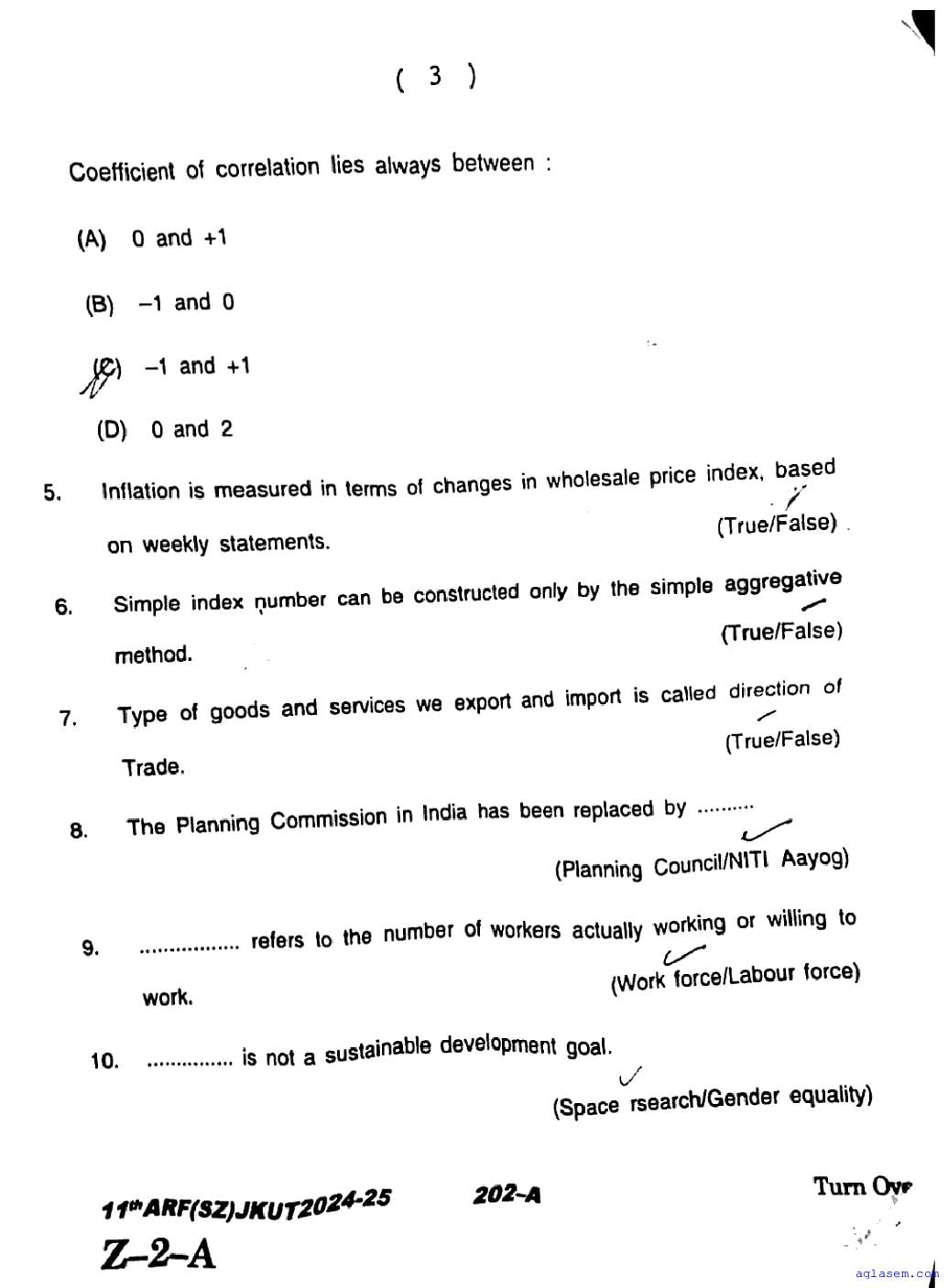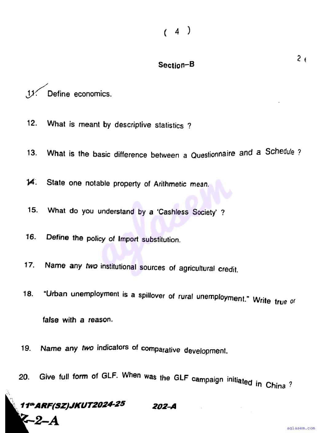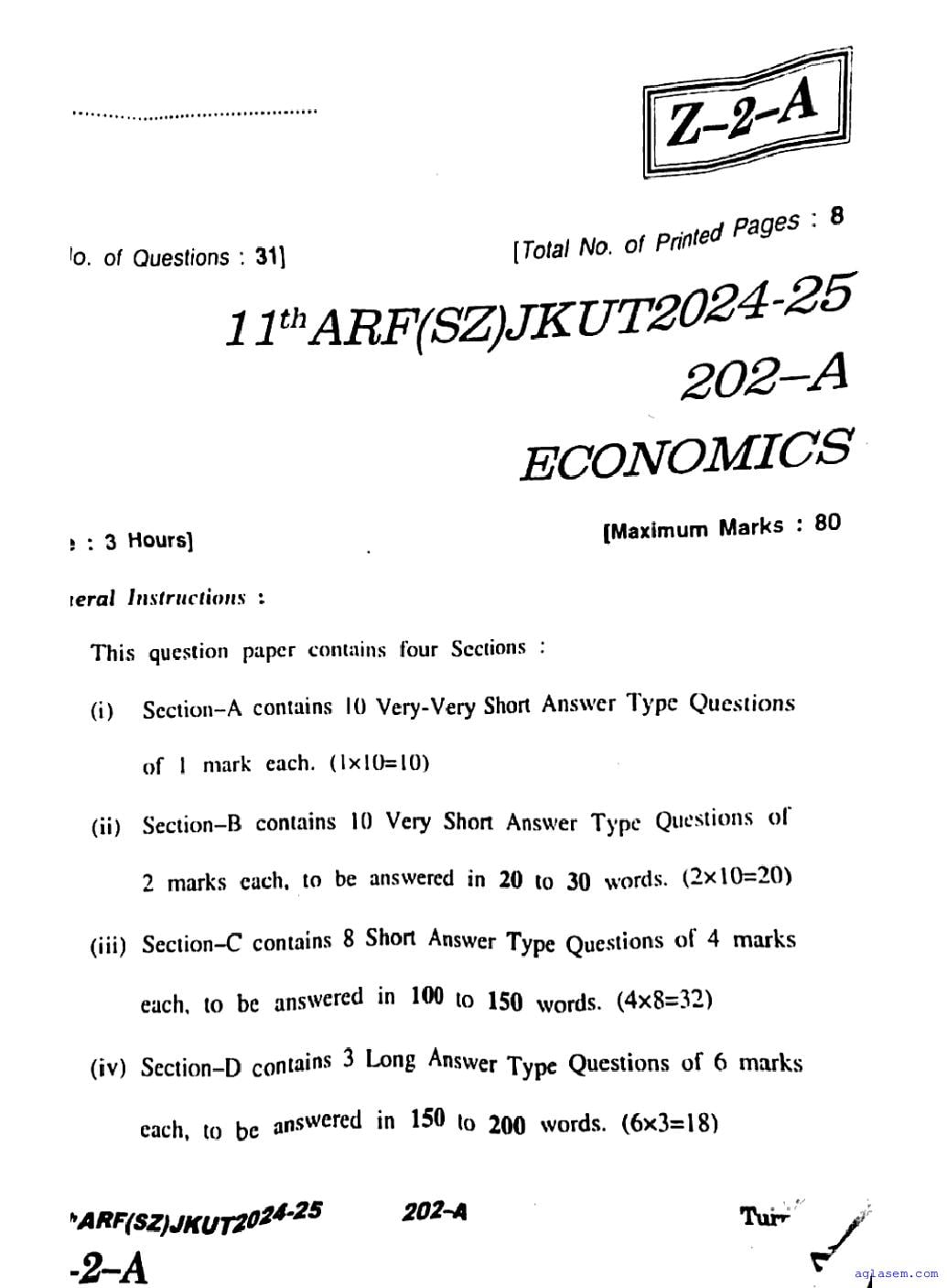The JKBOSE question paper for class 11 Economics is as follows.