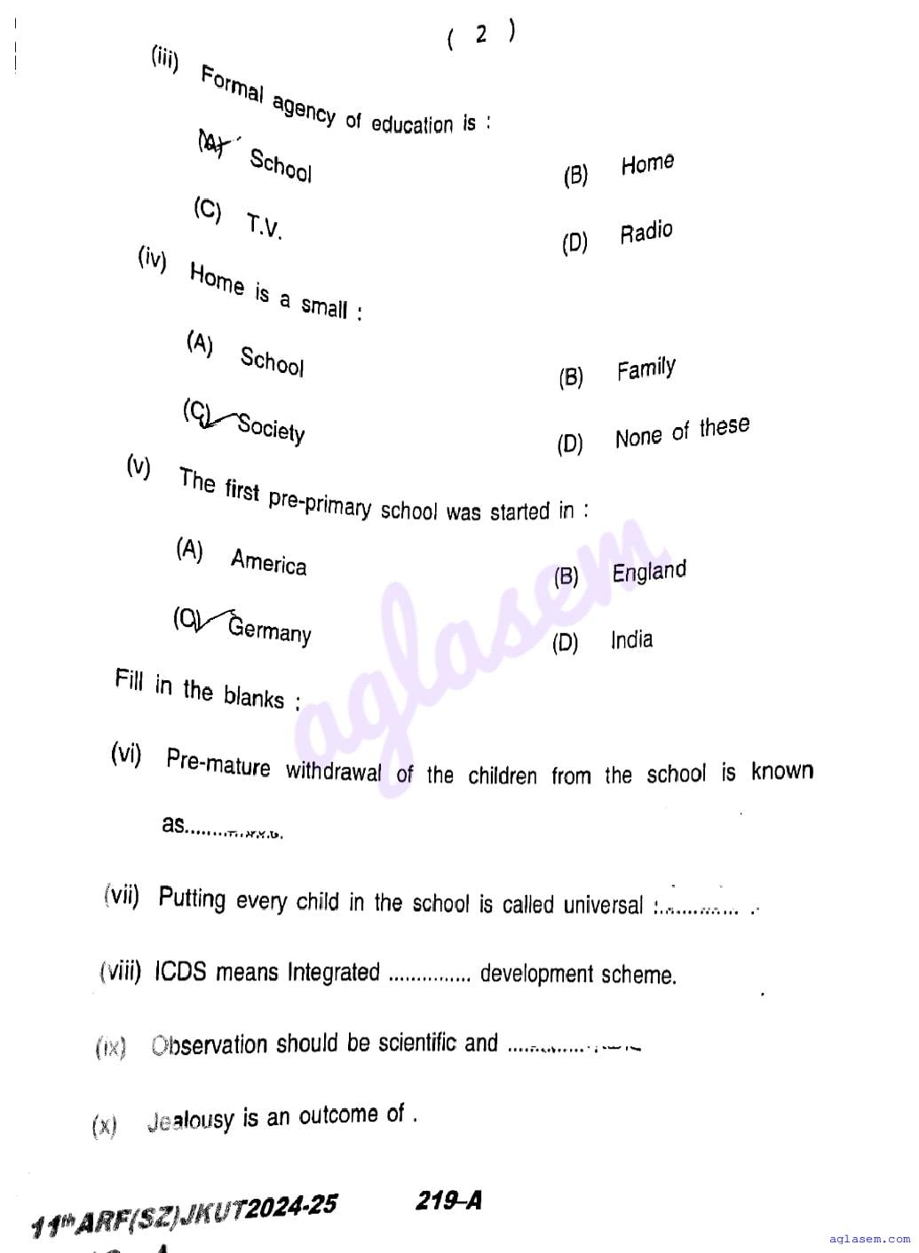 If you have any queries on JKBOSE Class 11th Education Question Paper , then please ask in comments below.