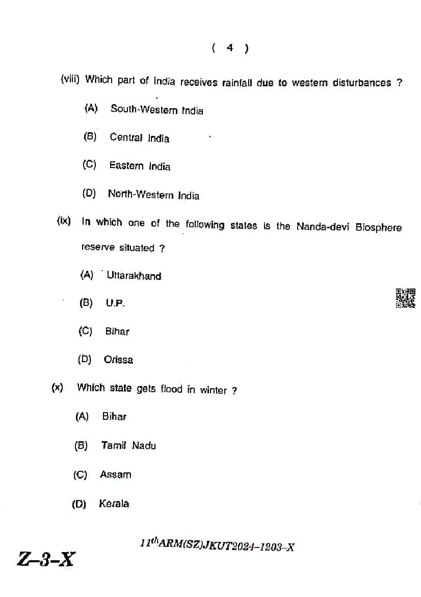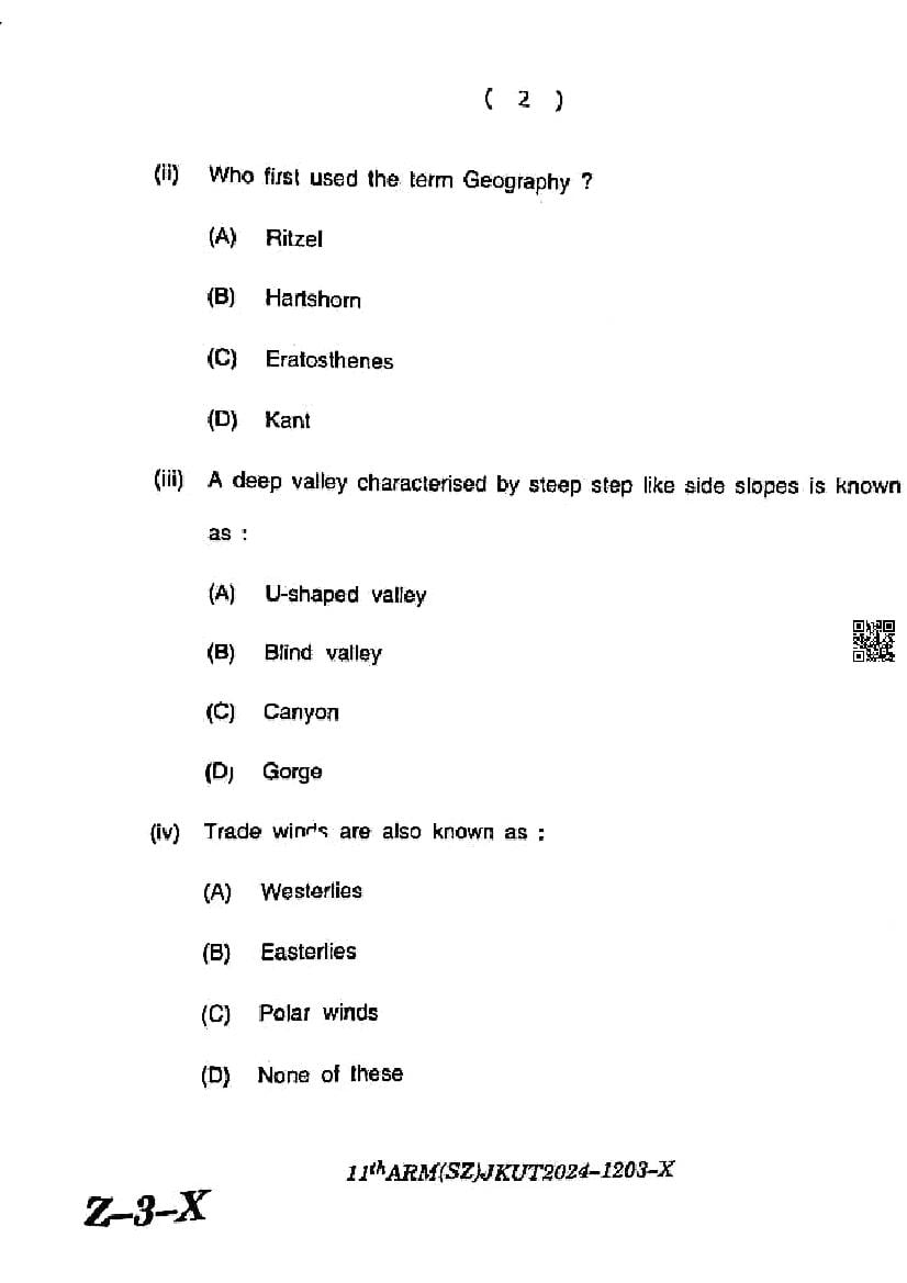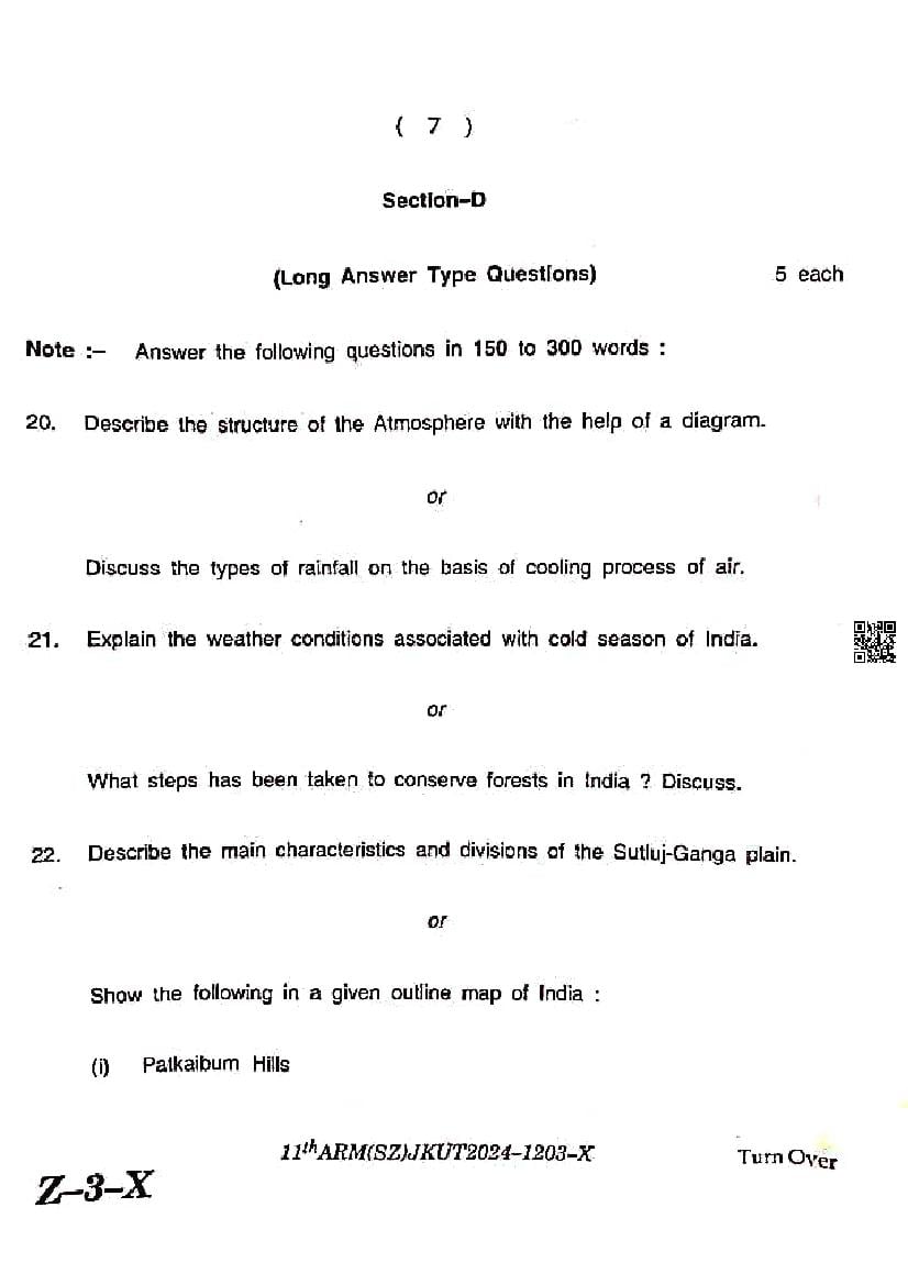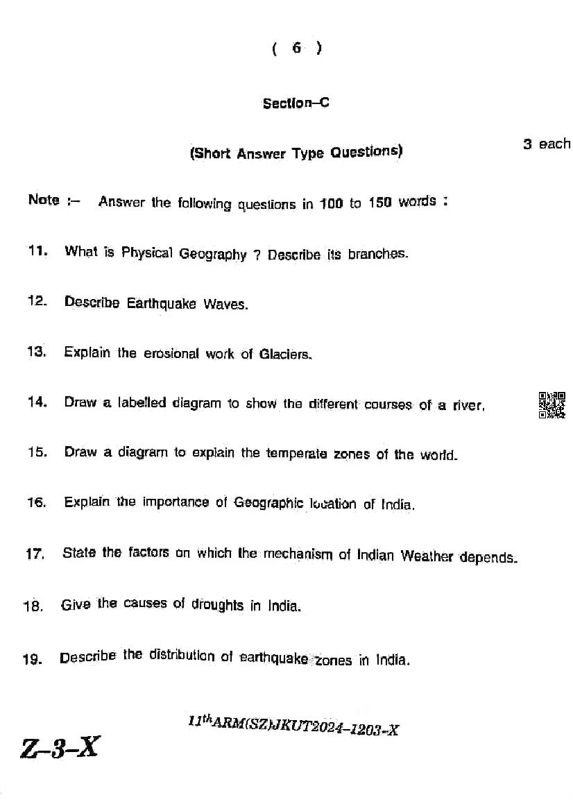 JKBOSE 11th Question Paper 2024 Geography View Download