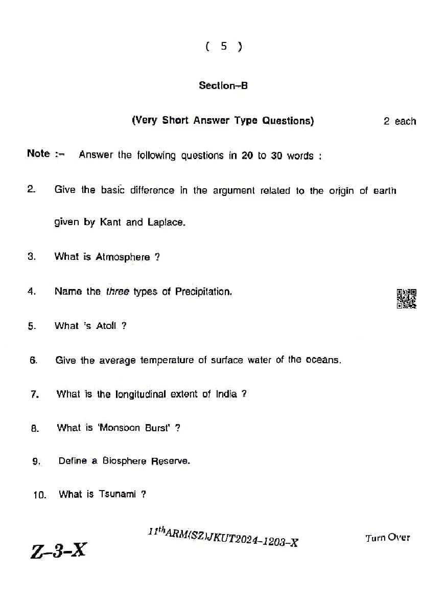 JKBOSE Class 11th Geography Question Paper 2024 PDF Download Link – Click Here to Download Question Paper PDF