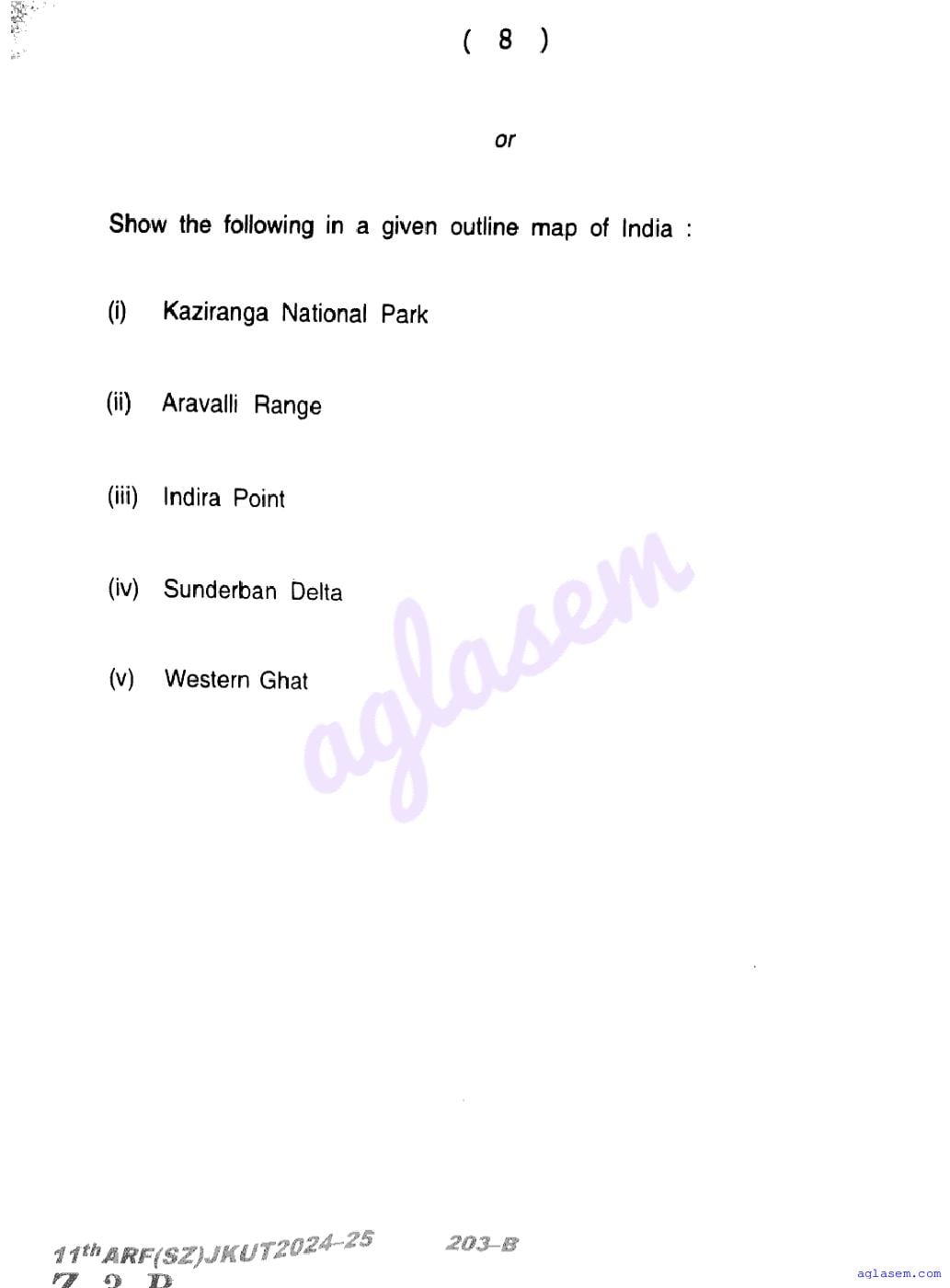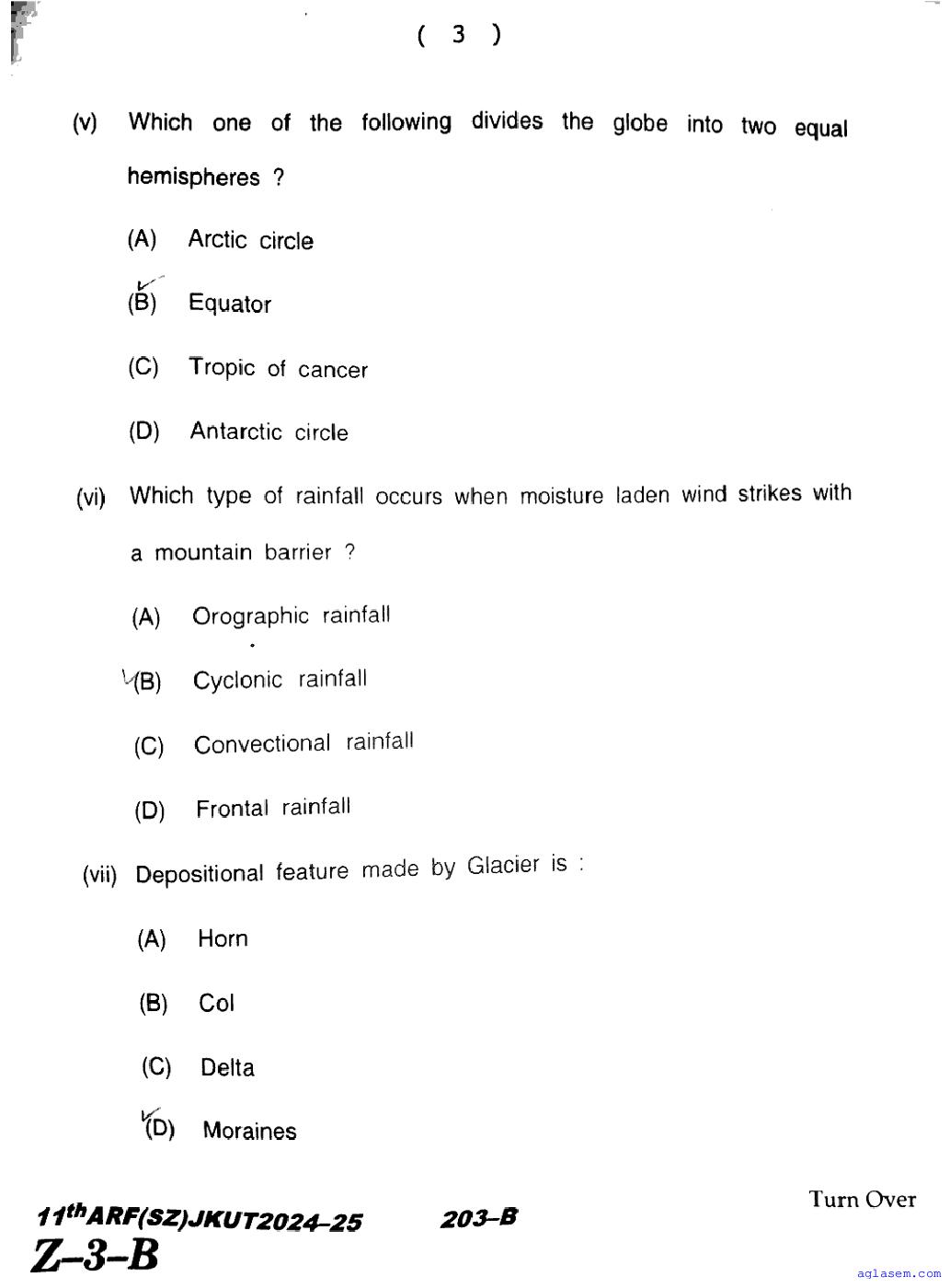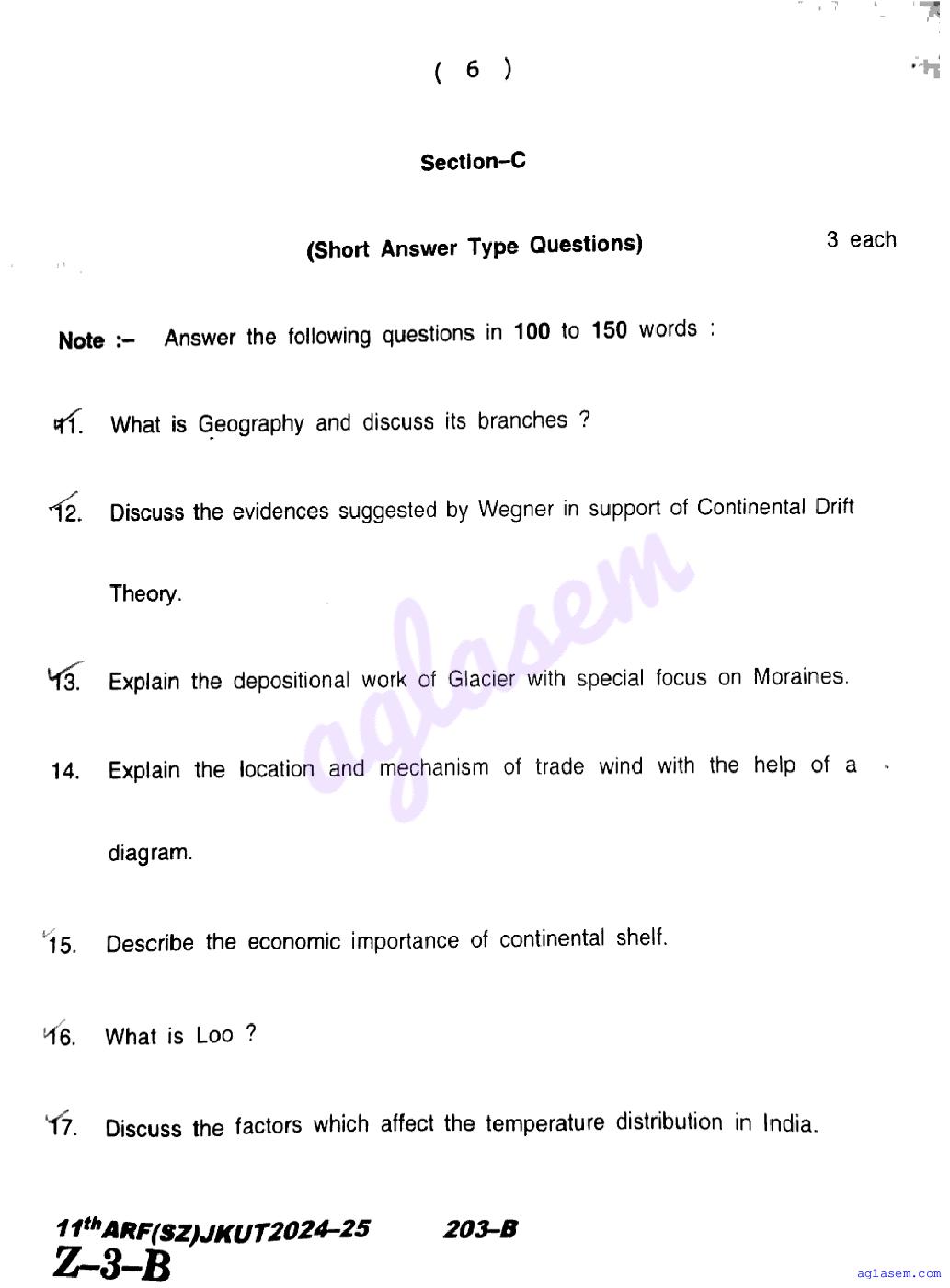 The JKBOSE question paper for class 11 Geography is as follows.