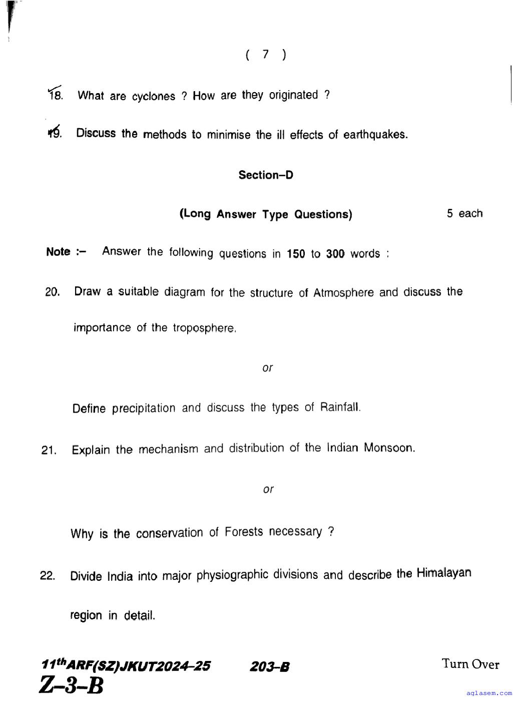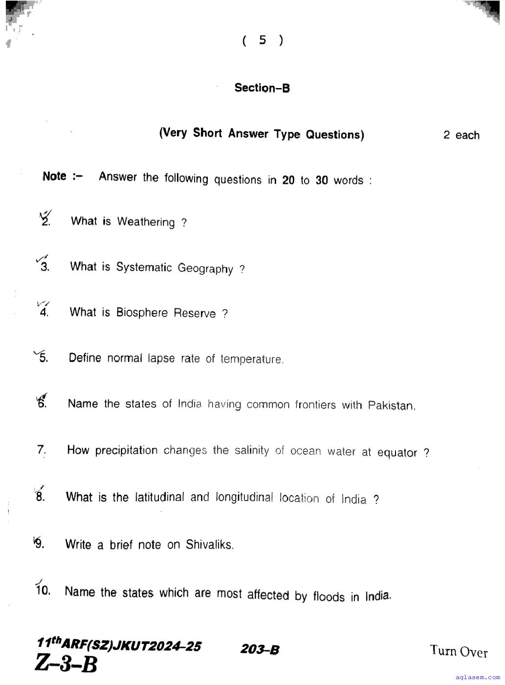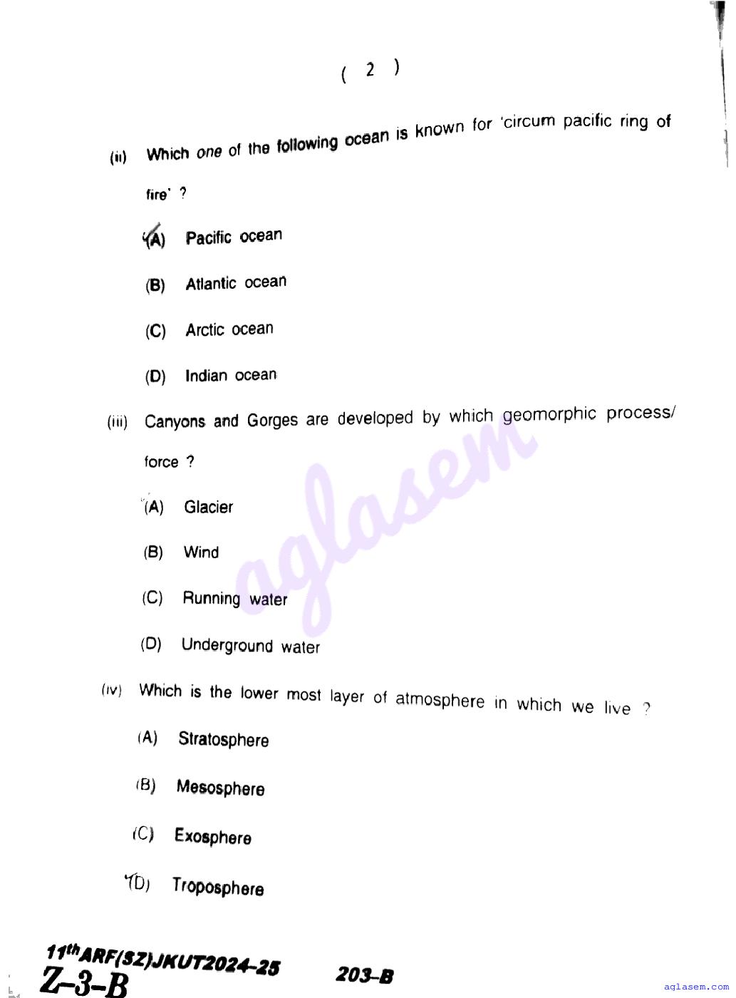 The JKBOSE question paper for class 11 Geography is as follows.