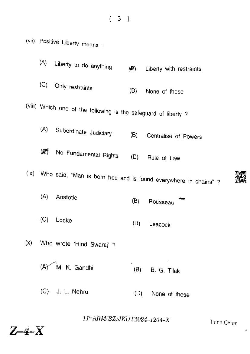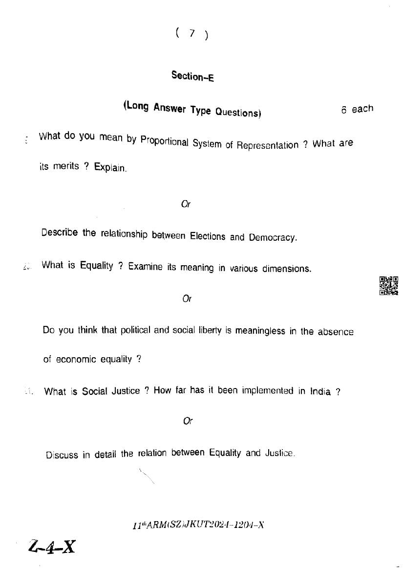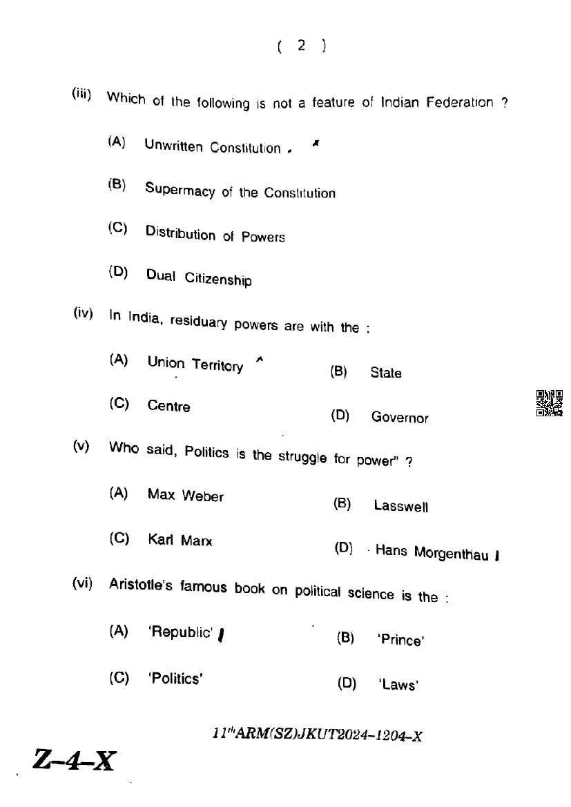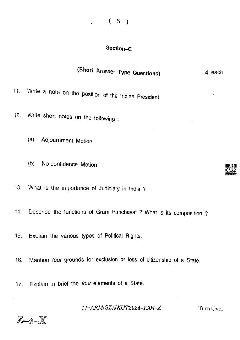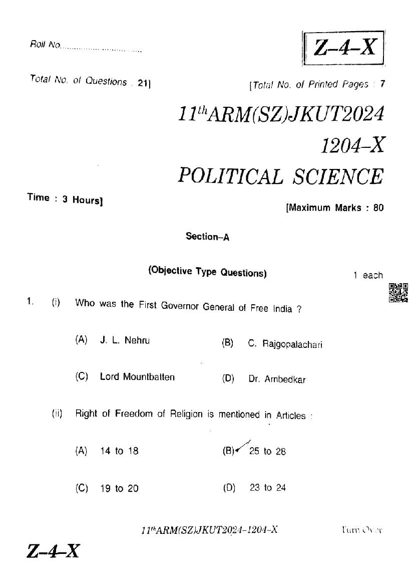 The JKBOSE question paper for class 11 Political Science is as follows.