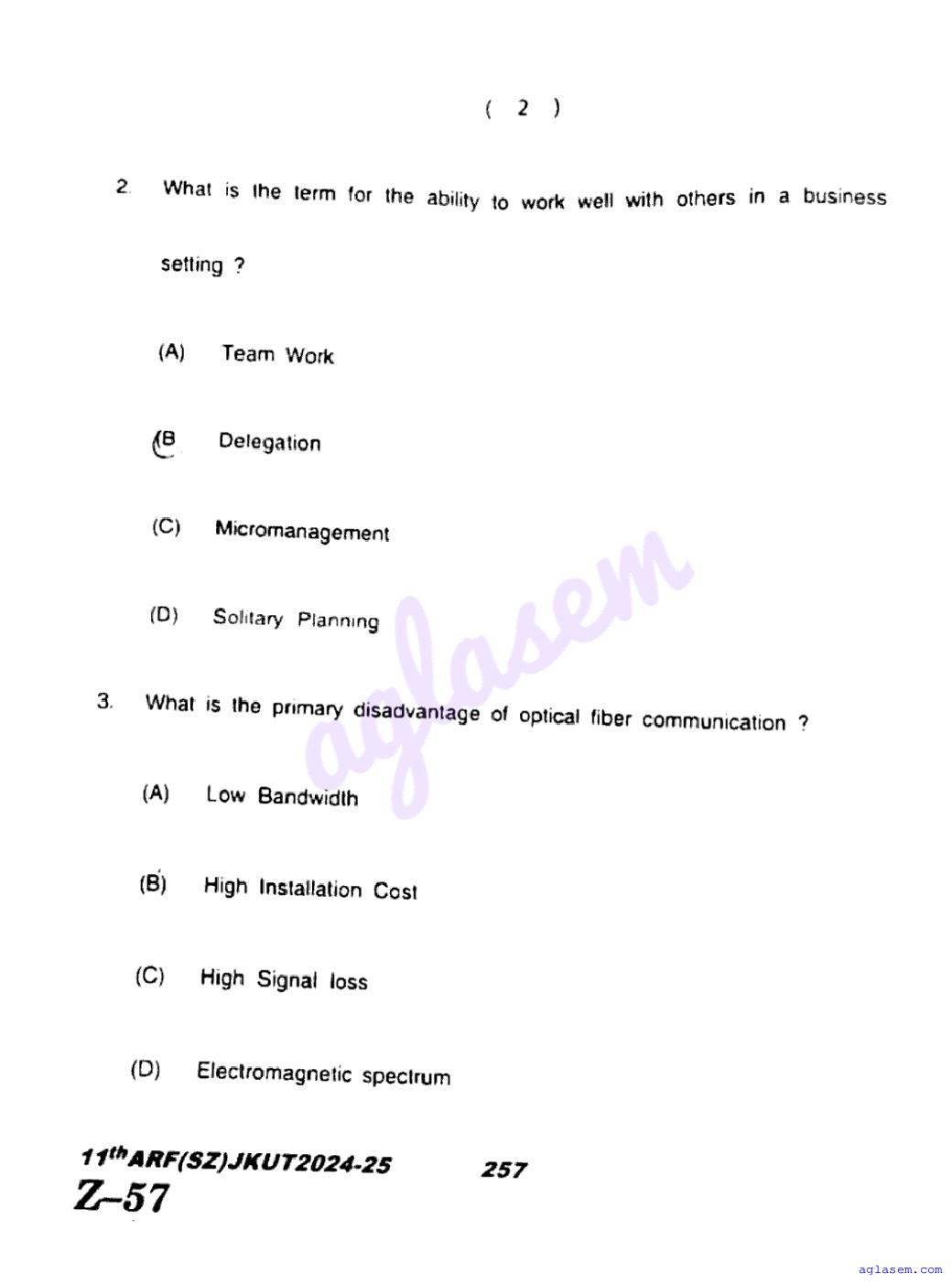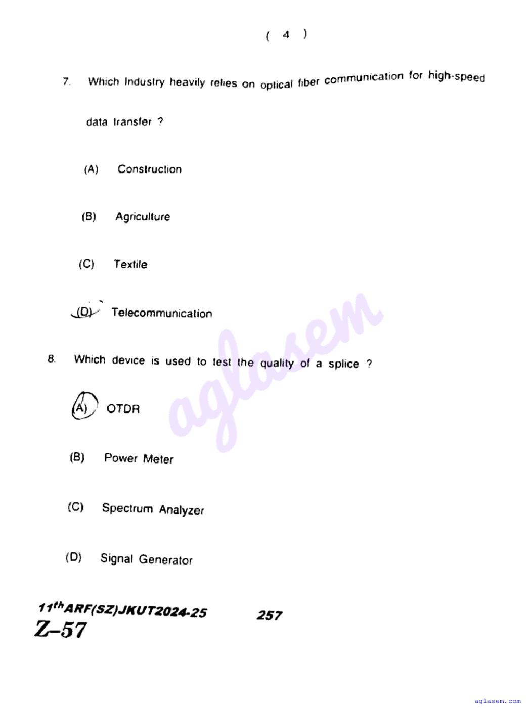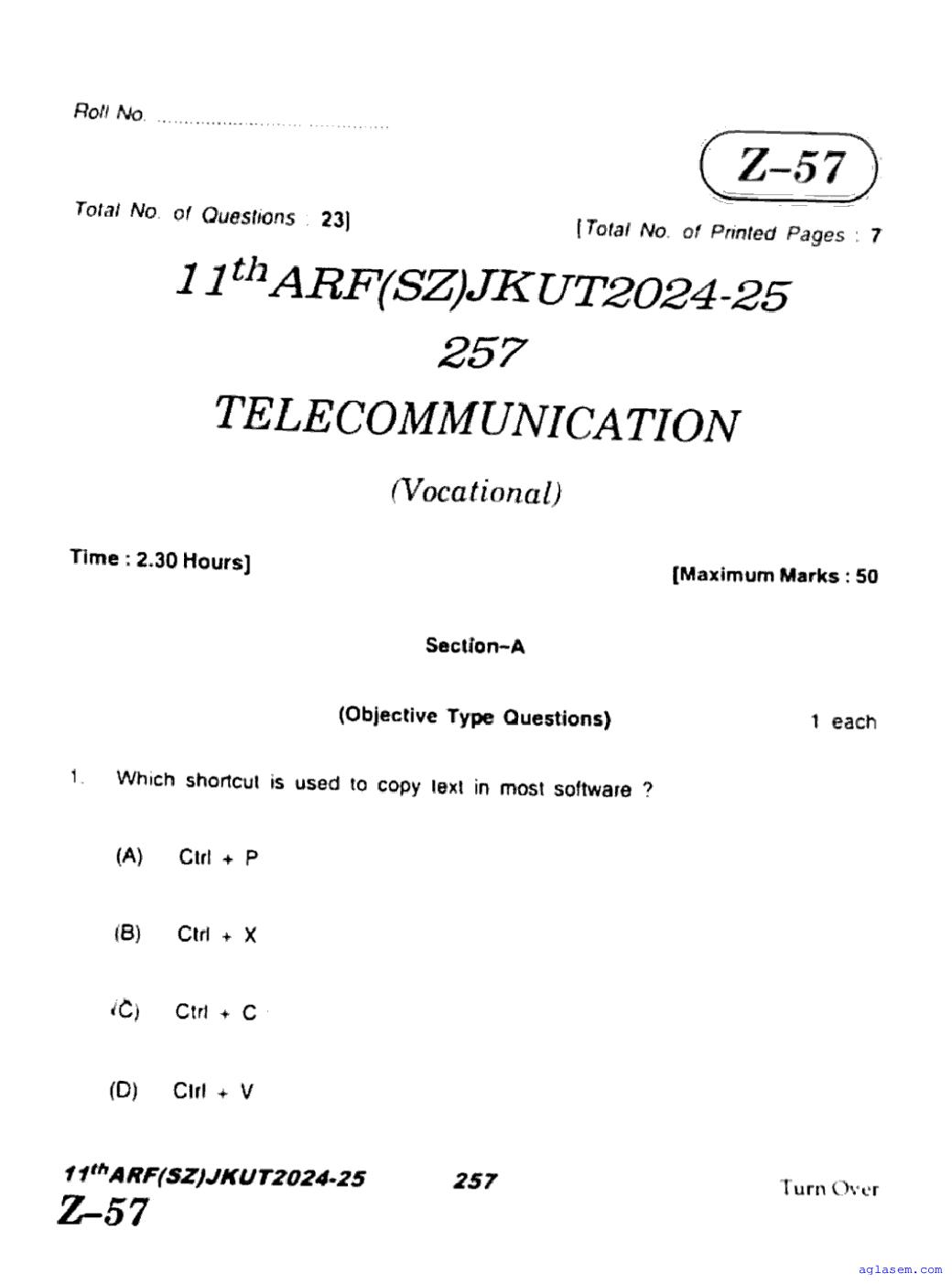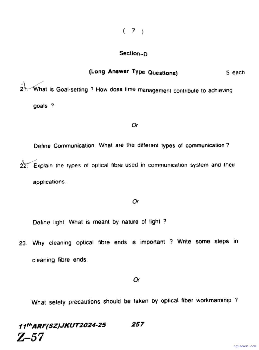 The JKBOSE question paper for class 11 Telecommunication is as follows.