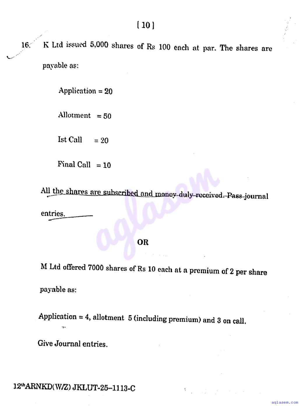 - JKBOSE Class 11th Previous Year Question Papers