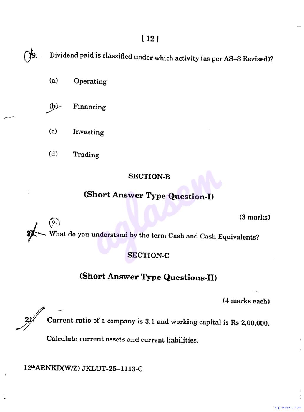 | Educational Resource Here | Jammu and Kashmir Board Old Papers of Class 12 Accountancy |