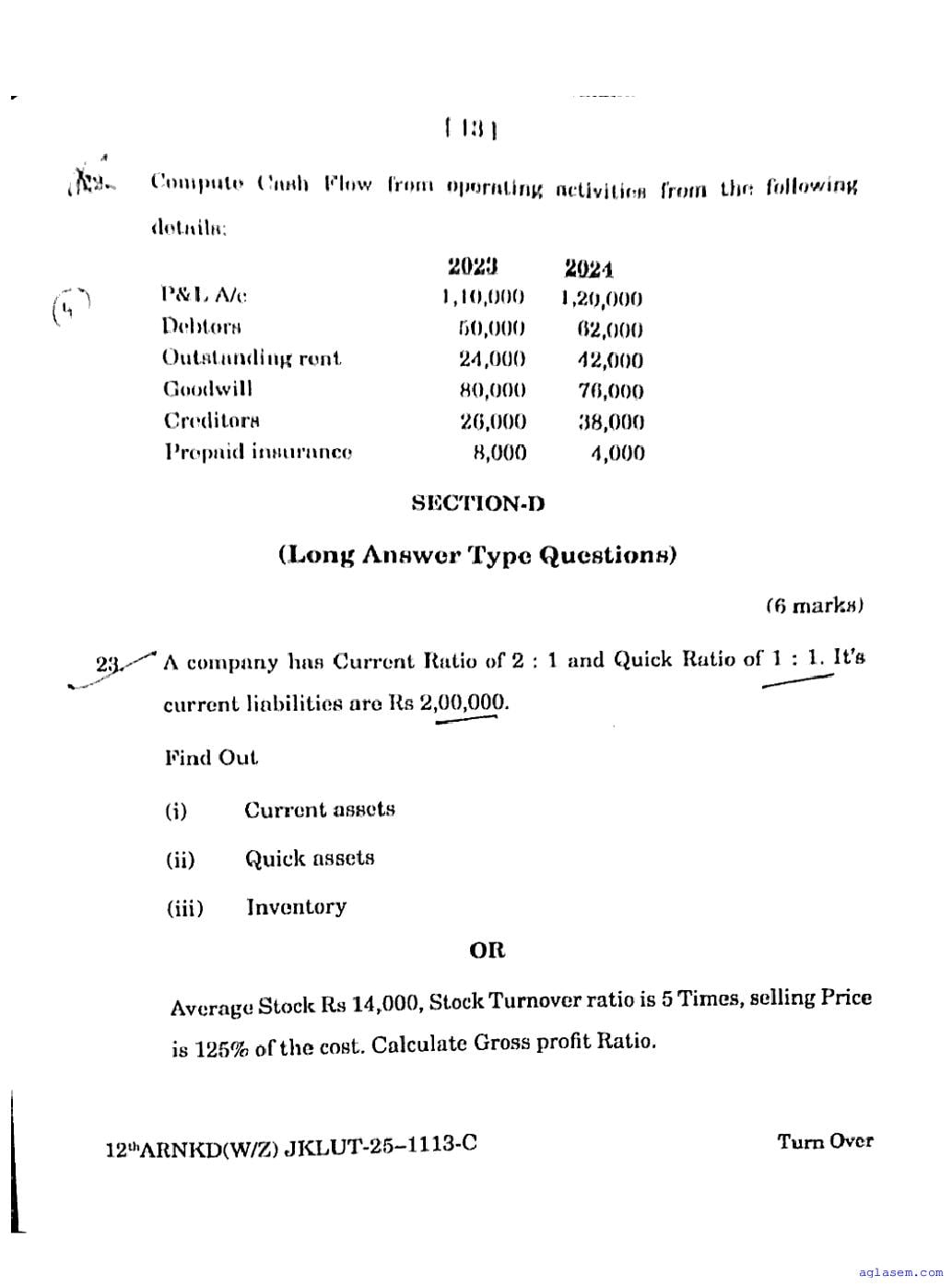 JKBOSE Class 12th Accountancy Question Paper 2026, 2025, 2024, 2023, 2022 is the question paper of Accountancy subject which was used for class 12 exams last year. You can now download the JK Board Class 12 Accountancy old paper PDF in order to prepare for your exam. This JKBOSE class 12th question paper tells you exactly what questions were asked in Accountancy exam which helps you get an idea of what to expect in your test and thus score high marks in class 12 test.