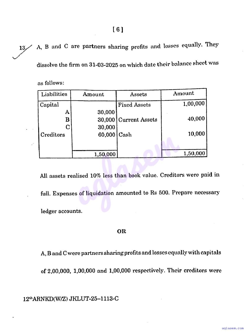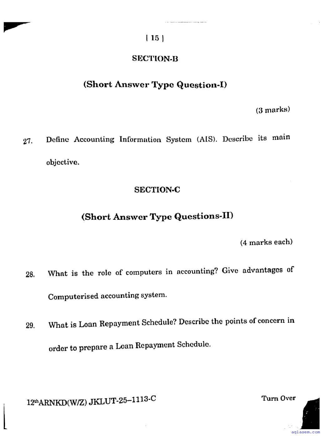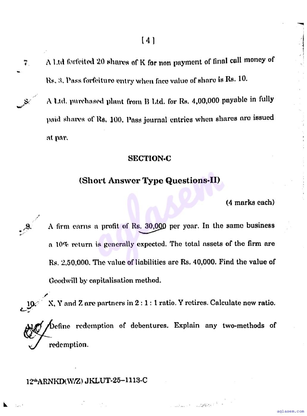 JKBOSE Class 12th Accountancy Question Paper PDF