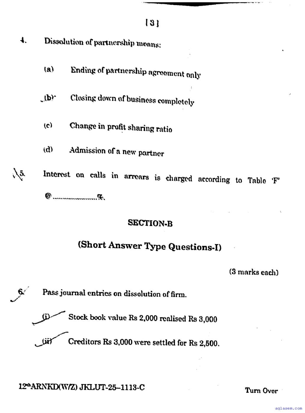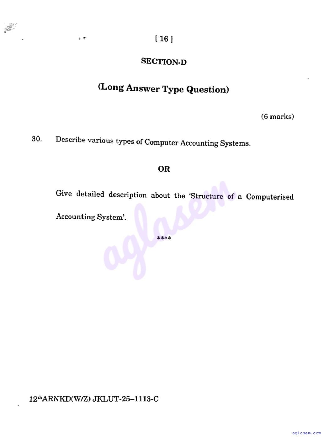 JKBOSE Class 12th Accountancy Question Paper