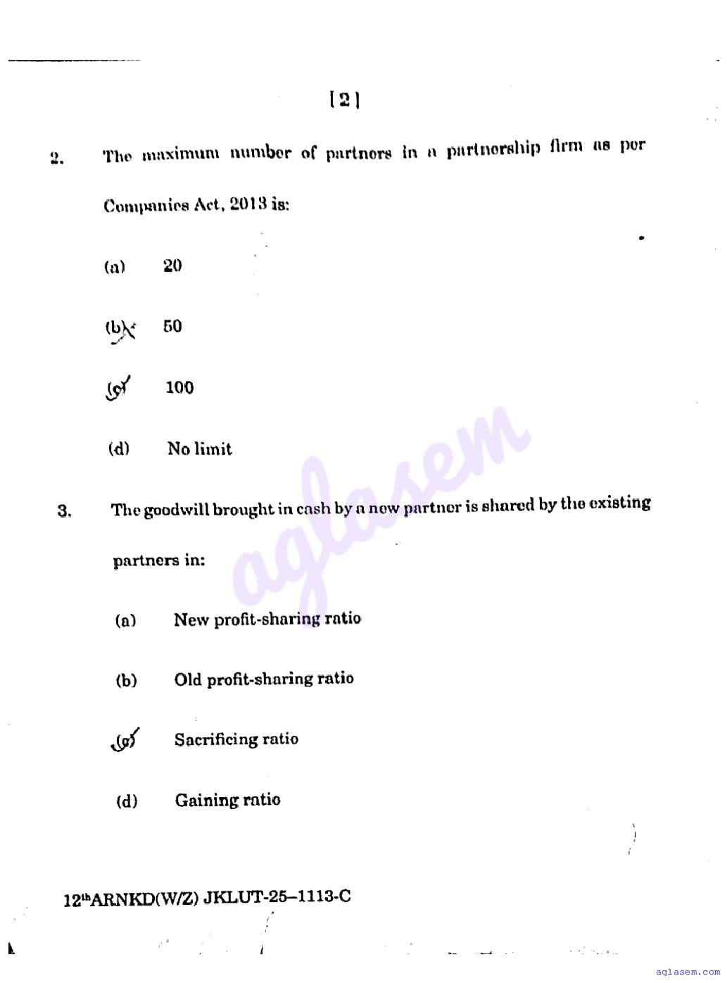 The JKBOSE question paper for class 12 Accountancy is as follows.