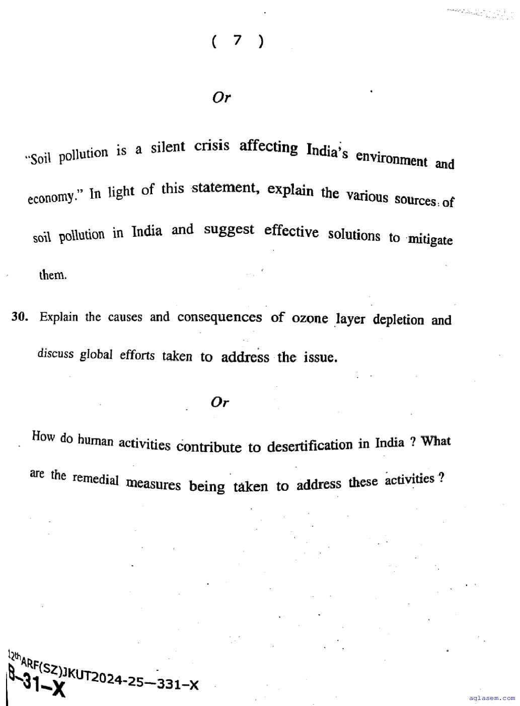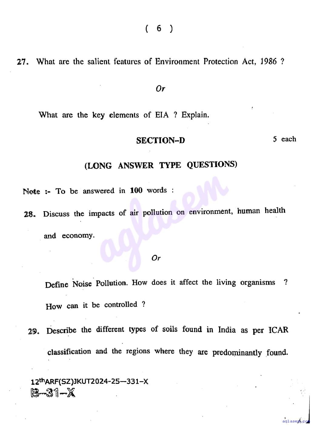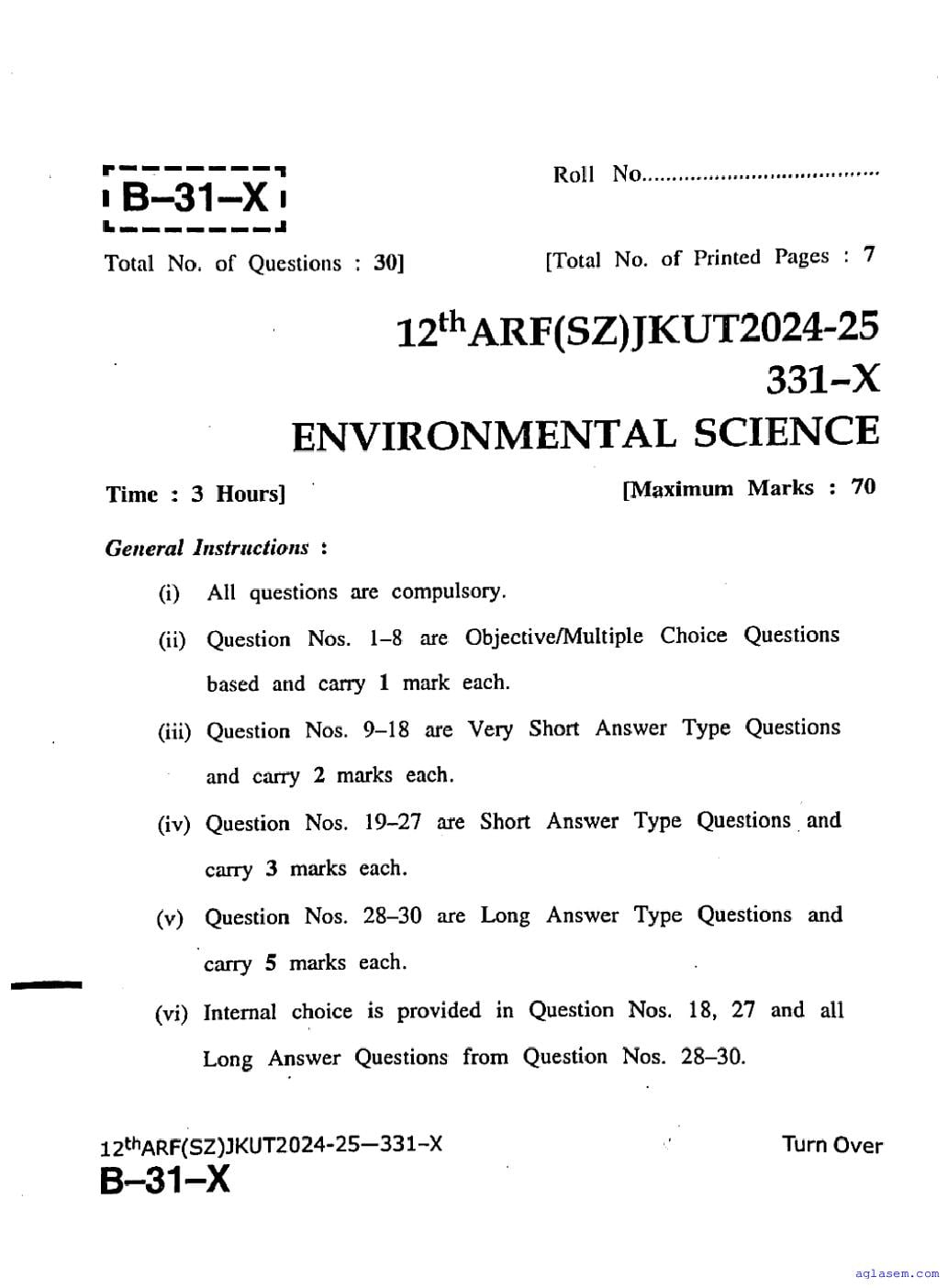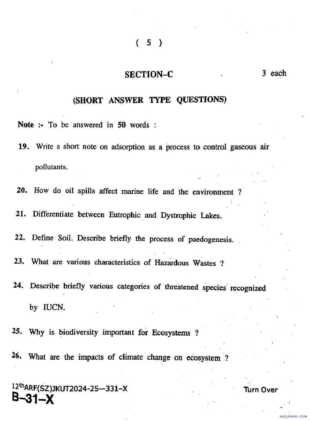 The JKBOSE question paper for class 12 Environmental Science is as follows.
