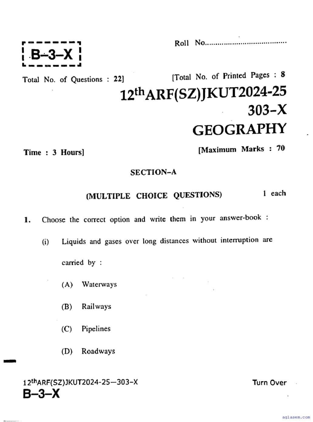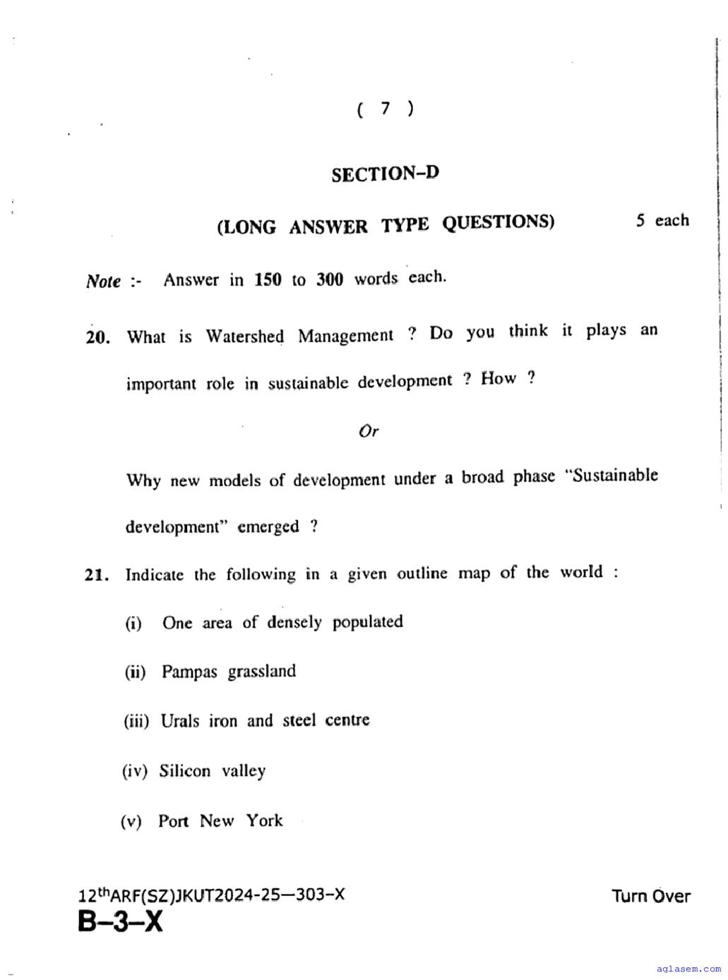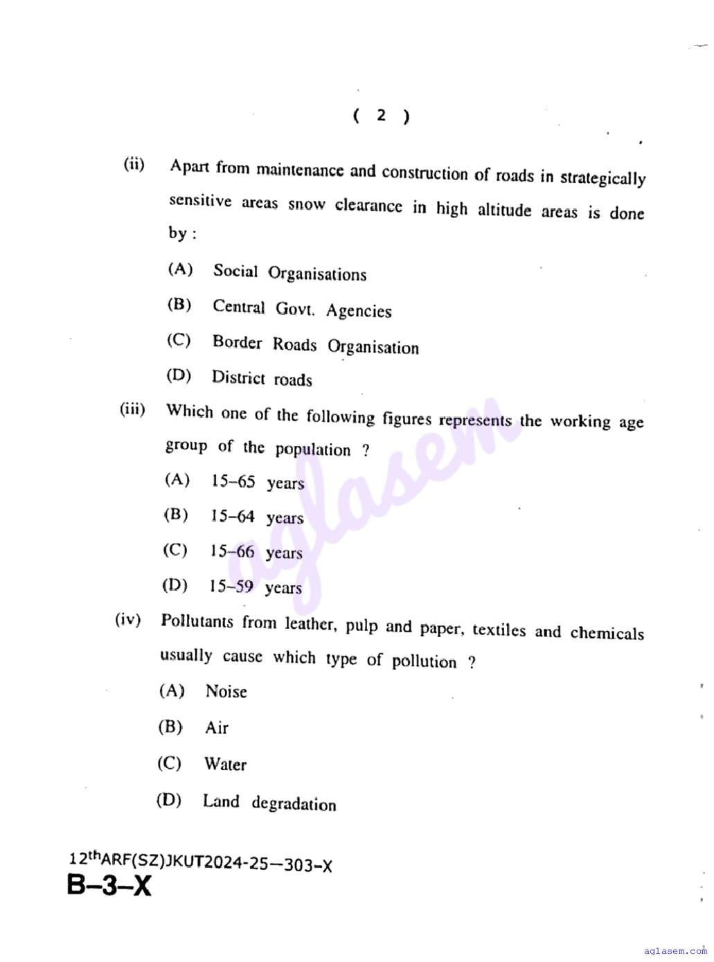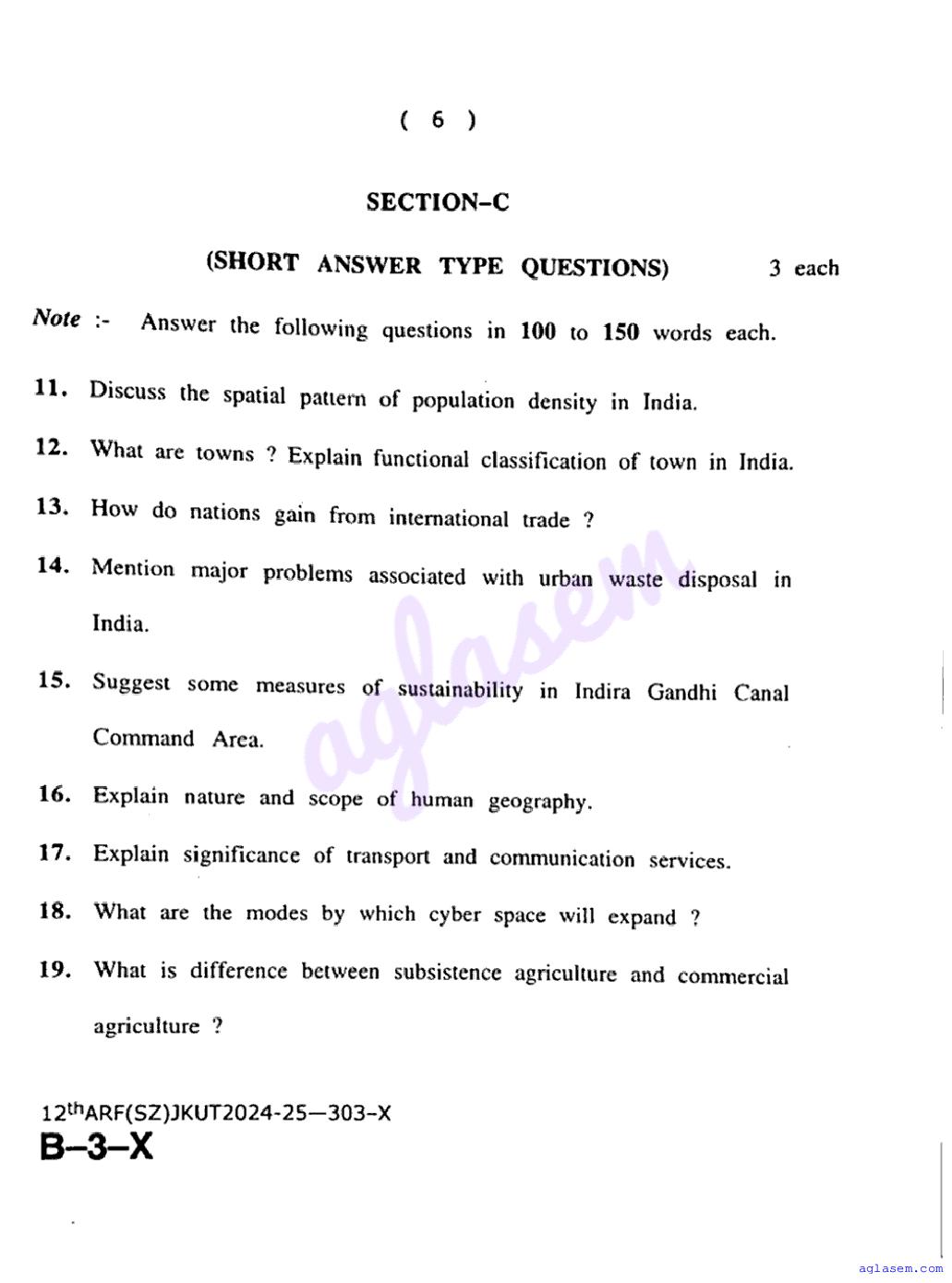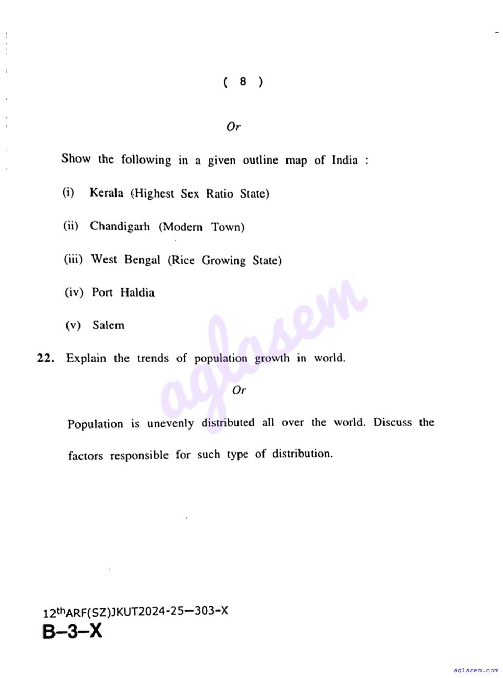 The JKBOSE question paper for class 12 Geography is as follows.