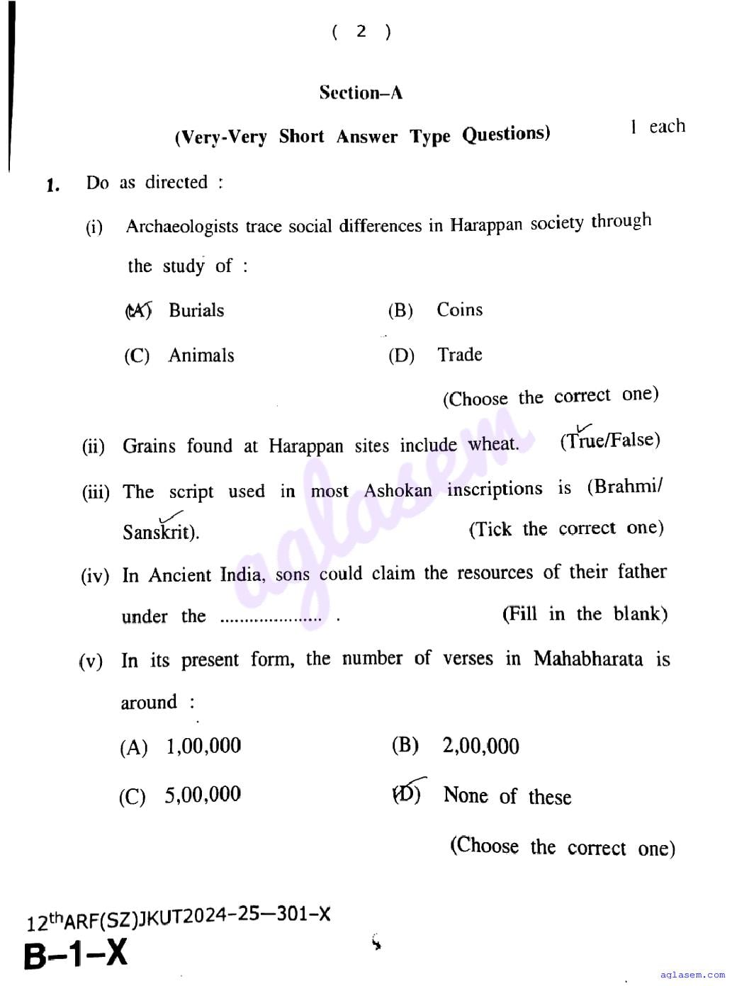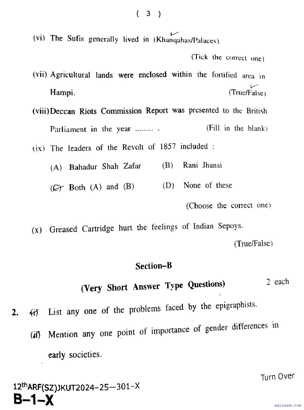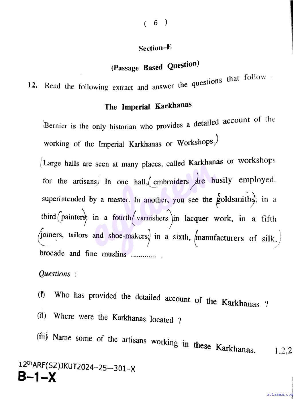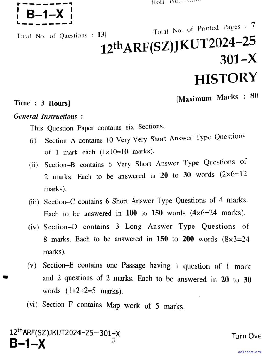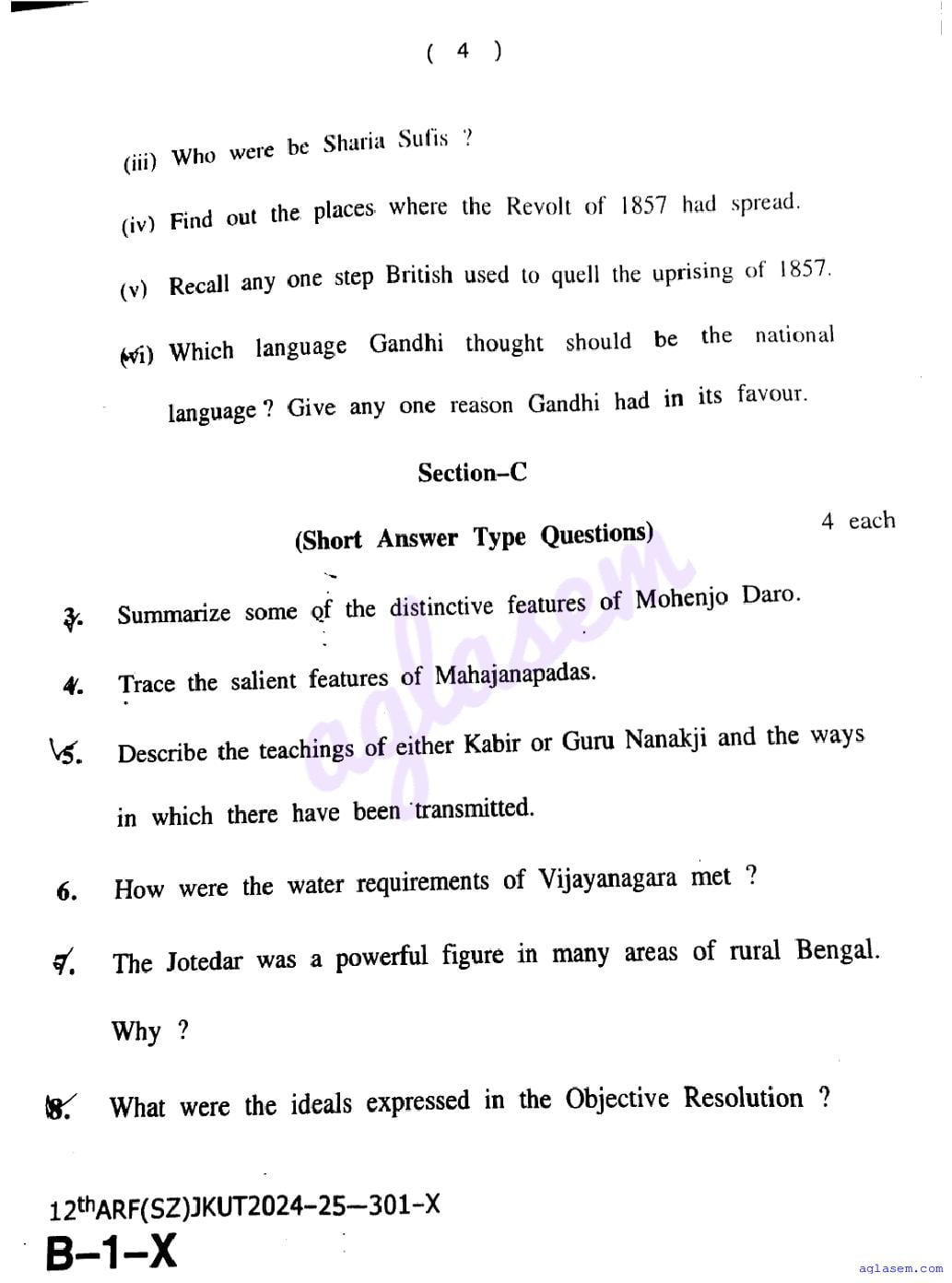 The JKBOSE question paper for class 12 History is as follows.