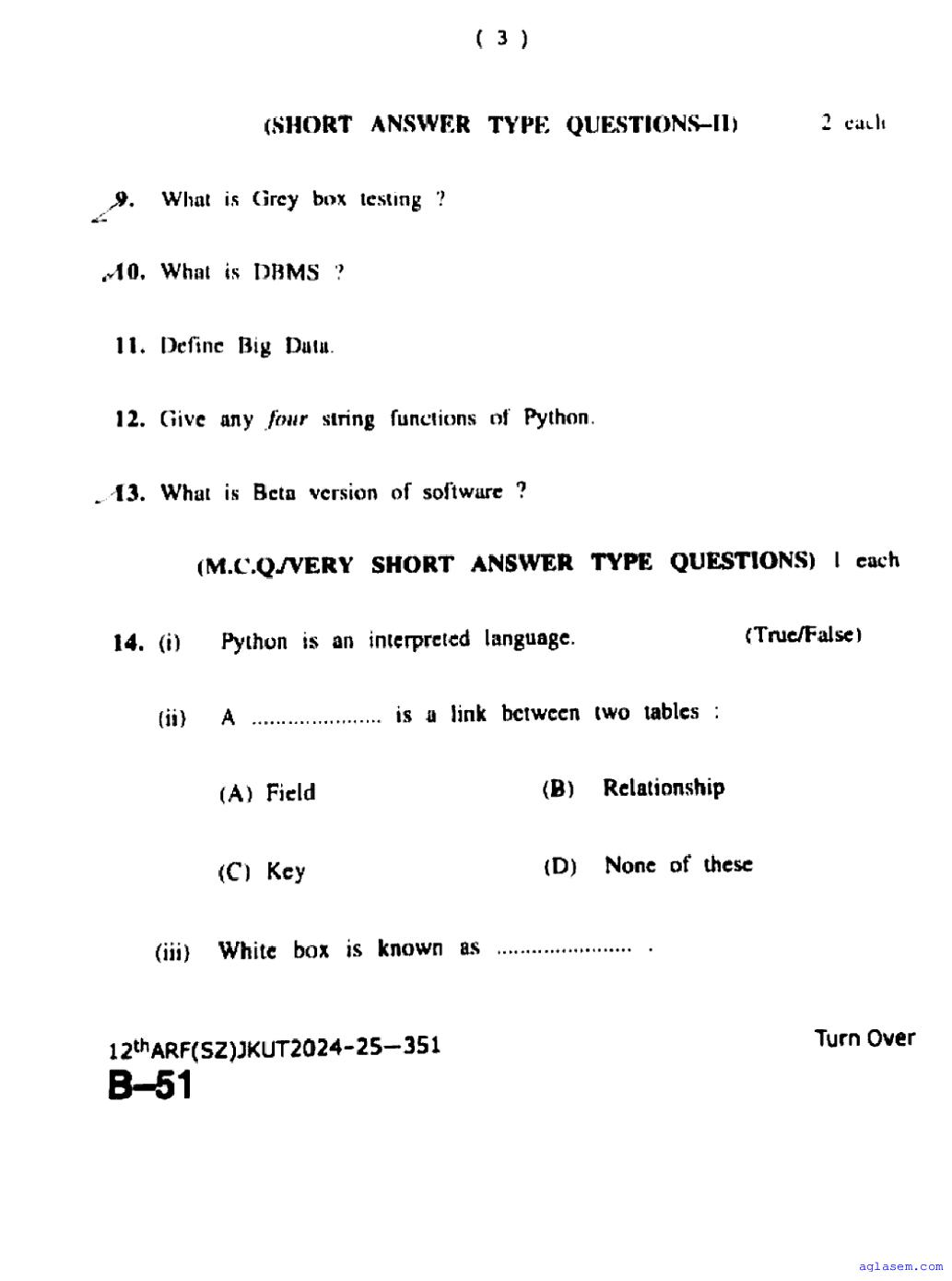 The JKBOSE question paper for class 12 IT ITES is as follows.