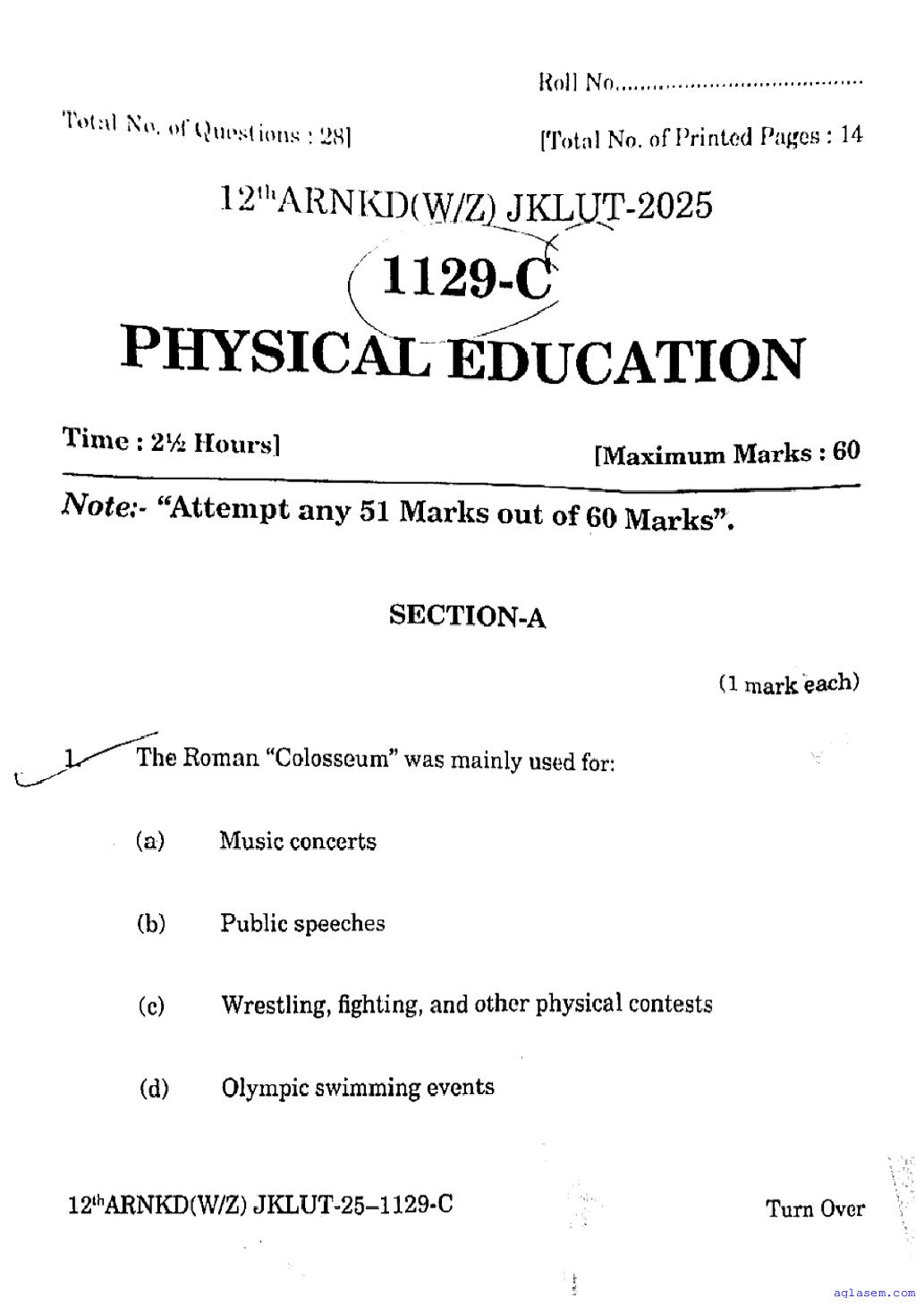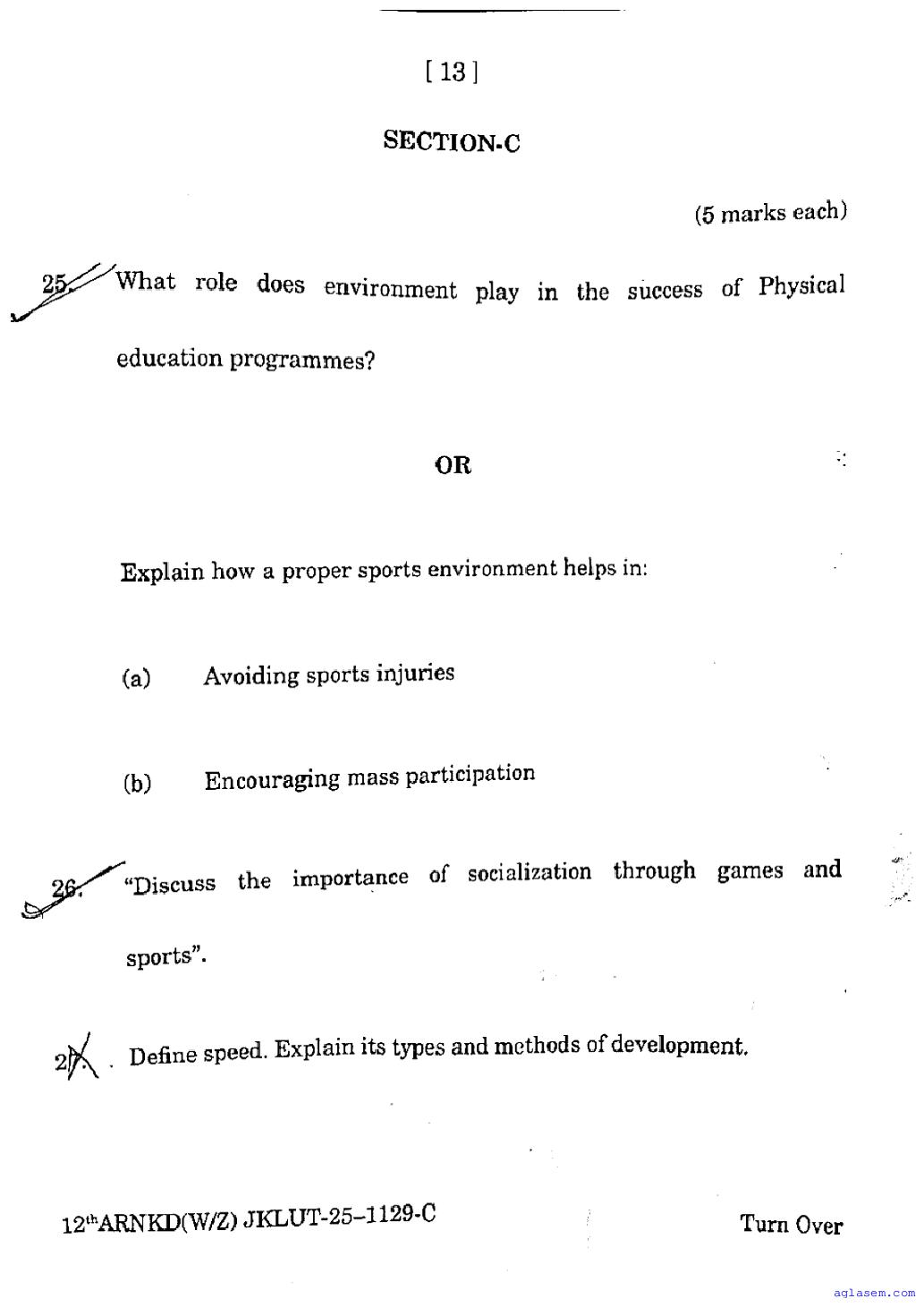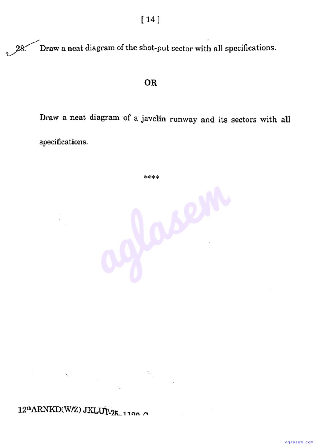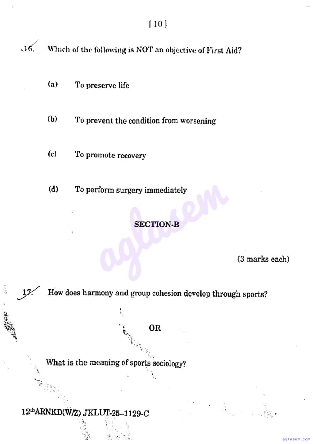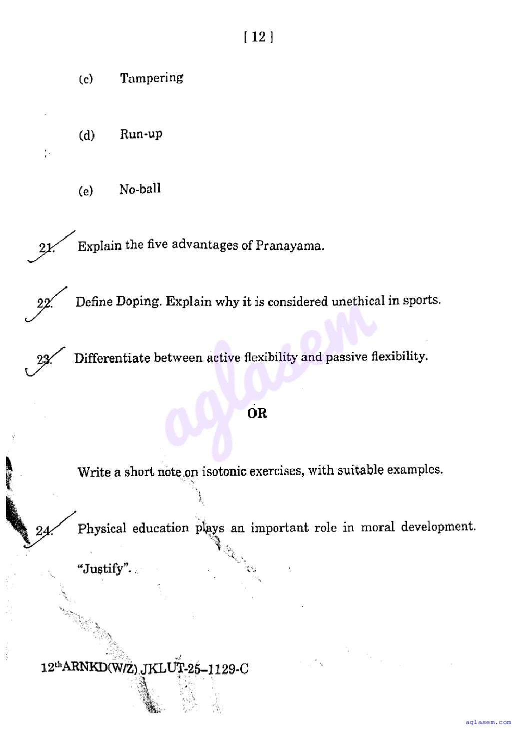 The JKBOSE question paper for class 12 Physical Education is as follows.