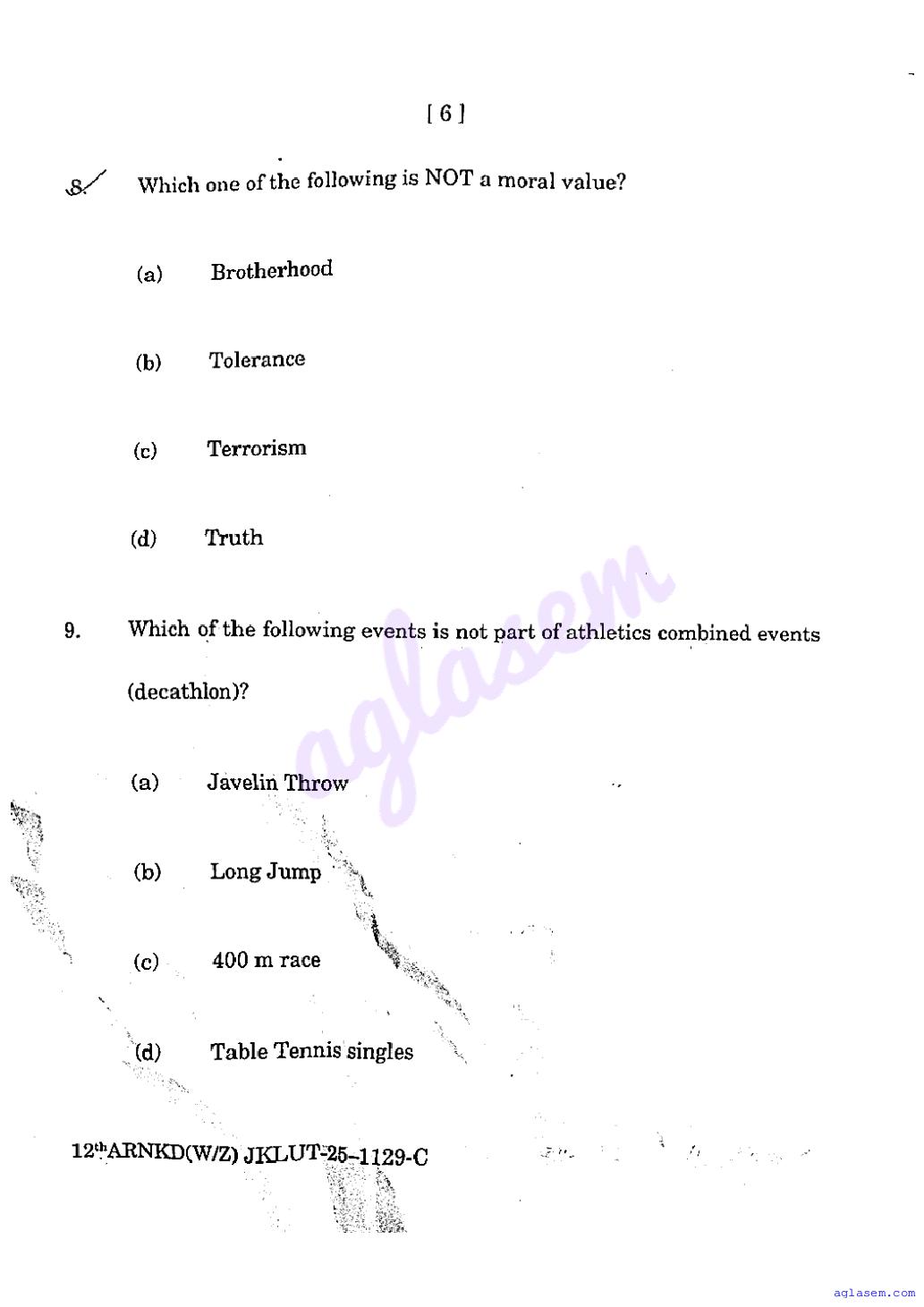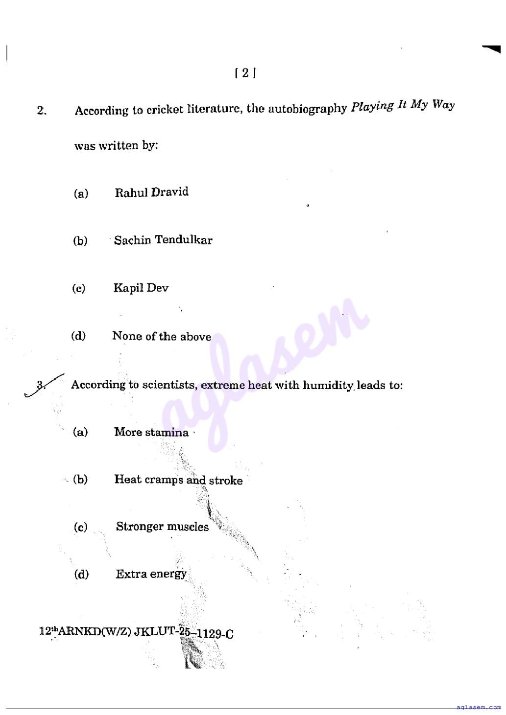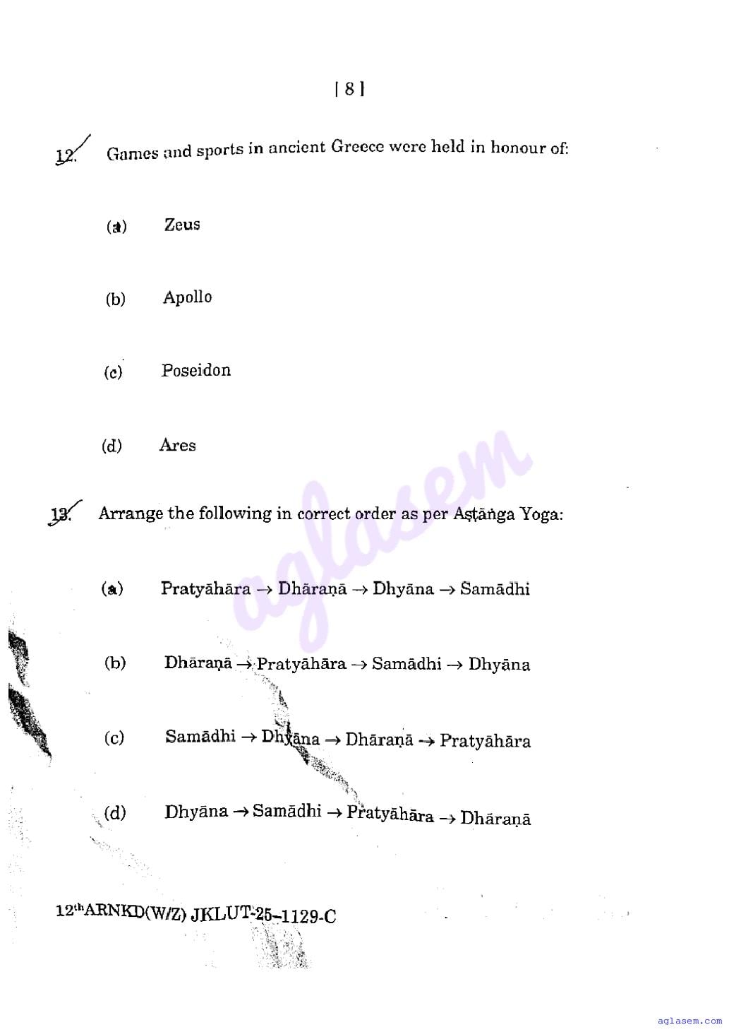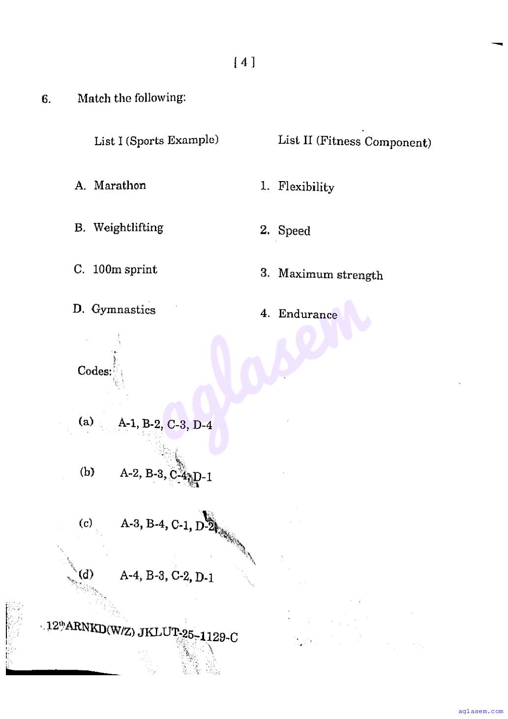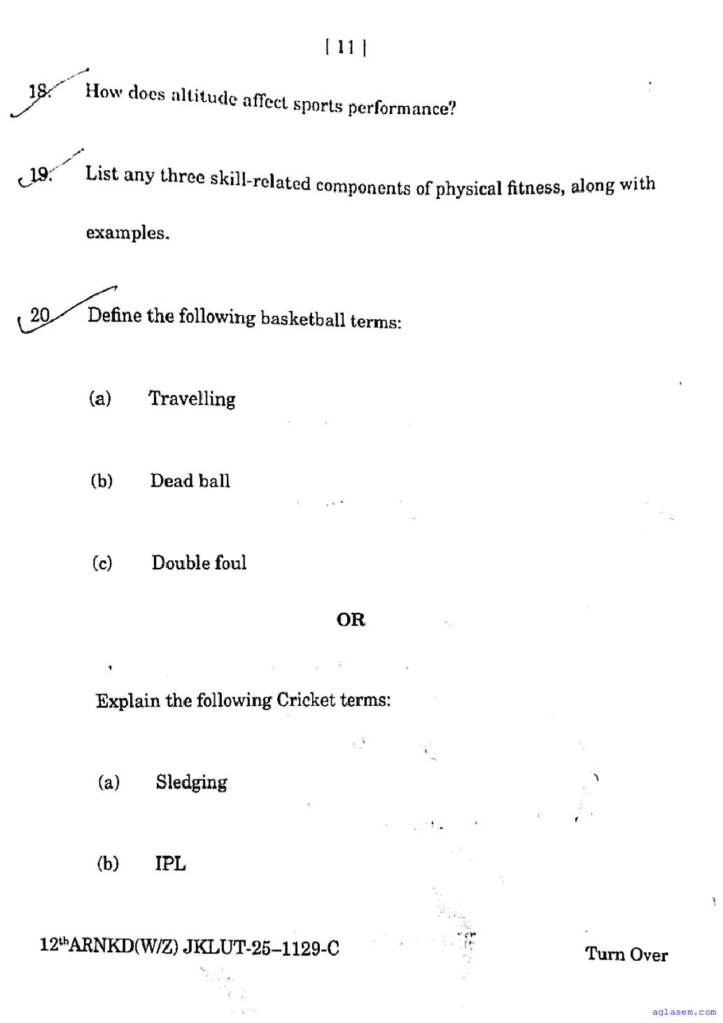 The JKBOSE question paper for class 12 Physical Education is as follows.