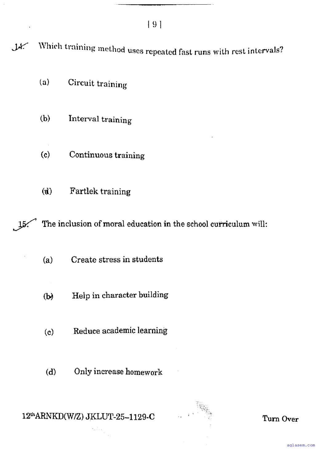 | Educational Resource Here | Jammu and Kashmir Board Old Papers of Class 12 Physical Education |
