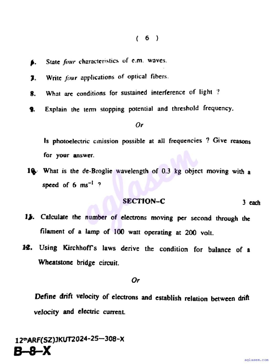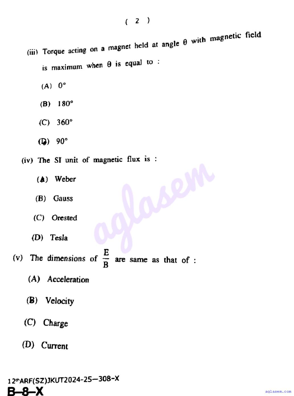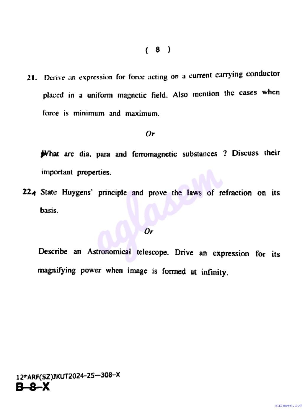 JKBOSE Class 12th Physics Question Paper