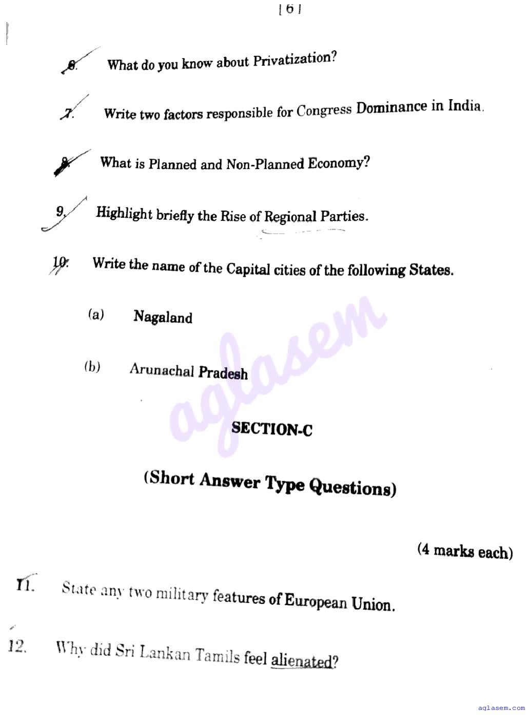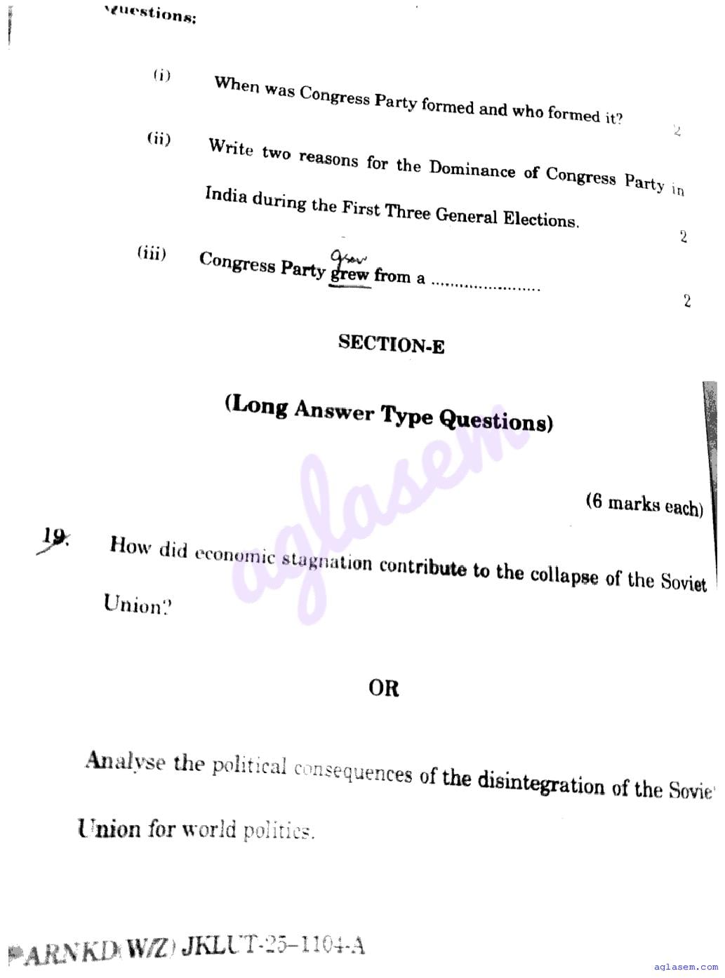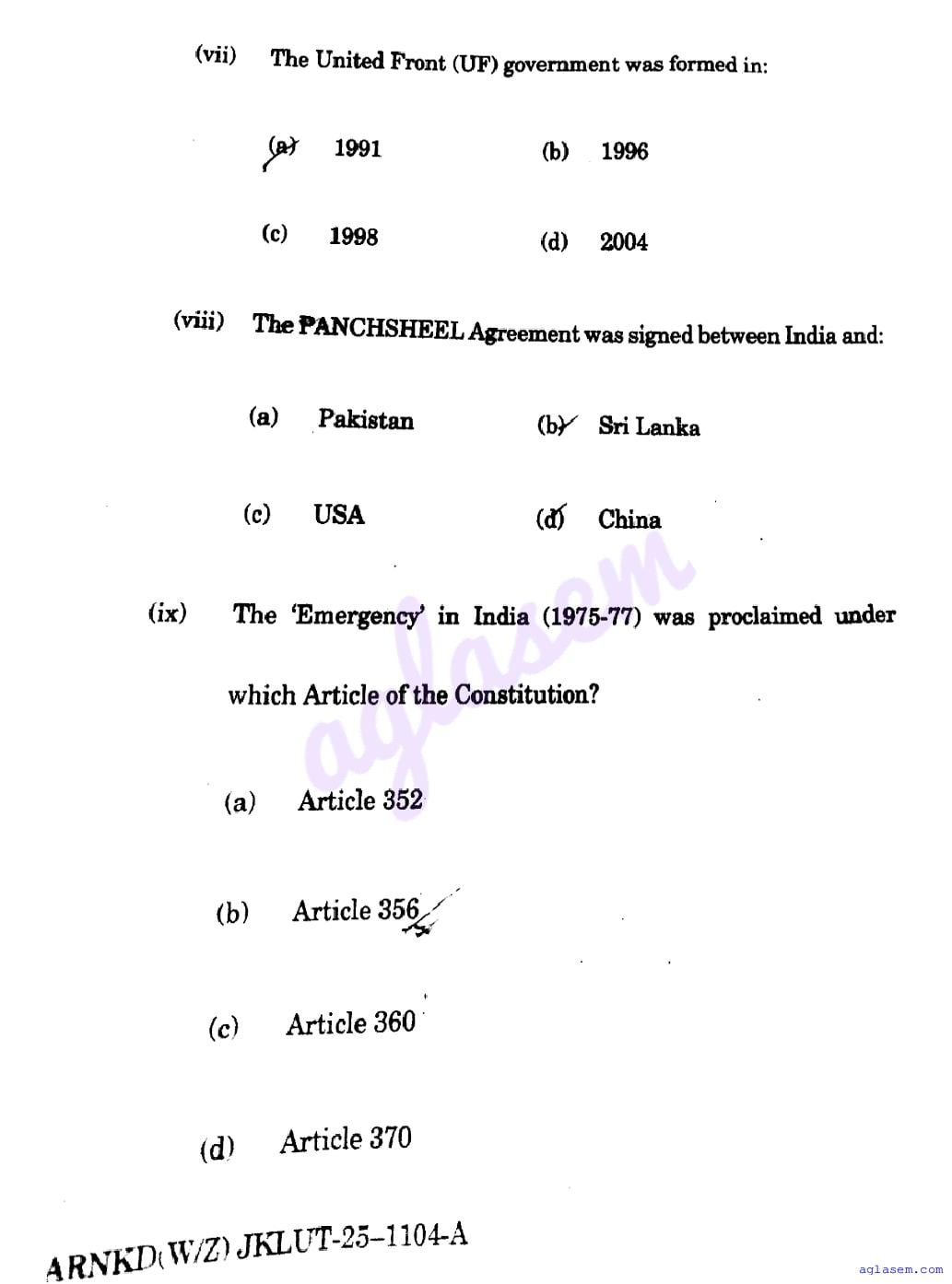 The JKBOSE question paper for class 12 Political Science is as follows.