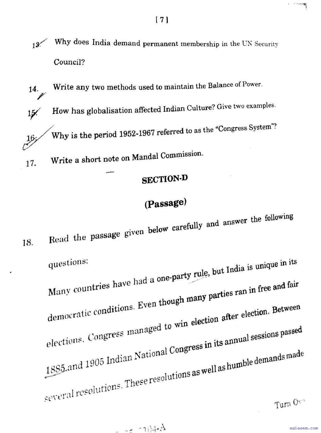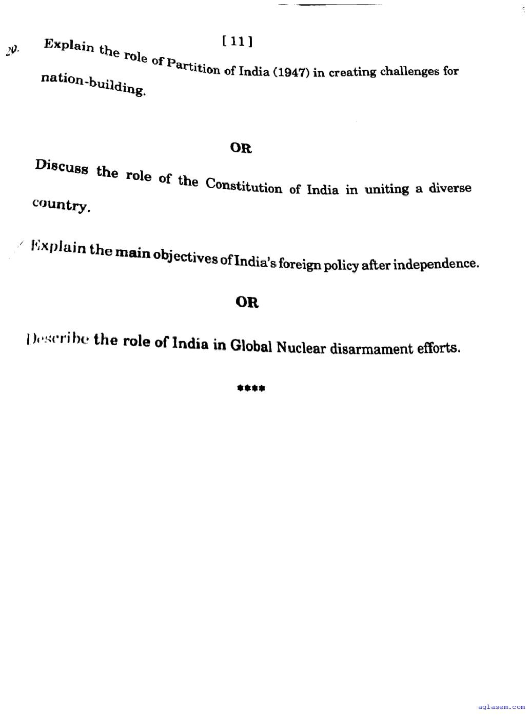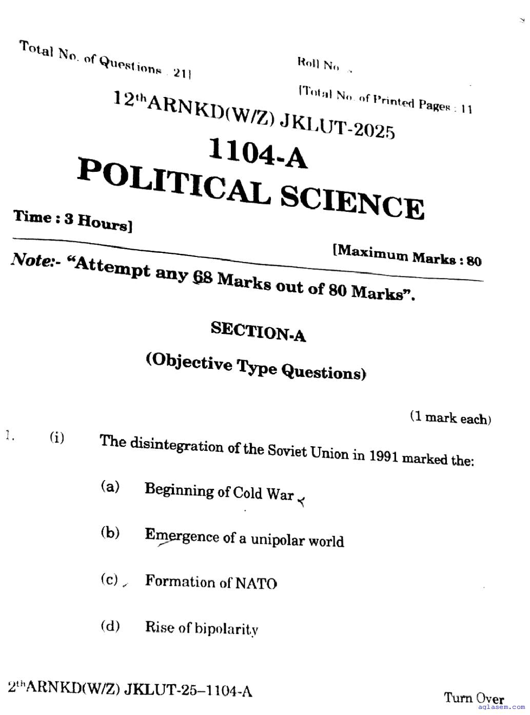 The JKBOSE question paper for class 12 Political Science is as follows.
