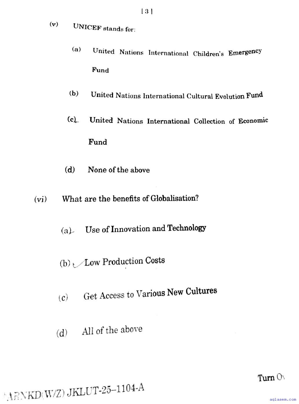 JKBOSE Old Question Papers
