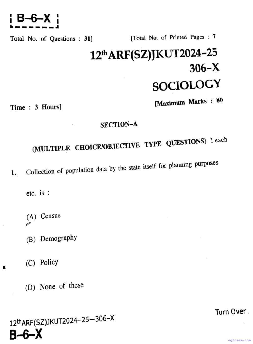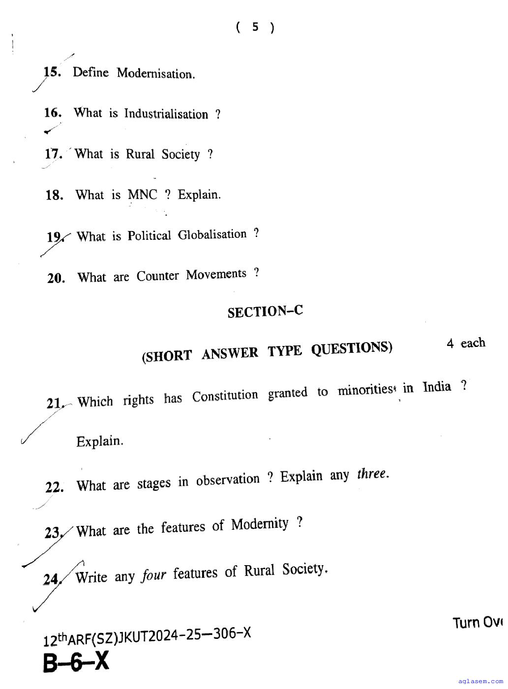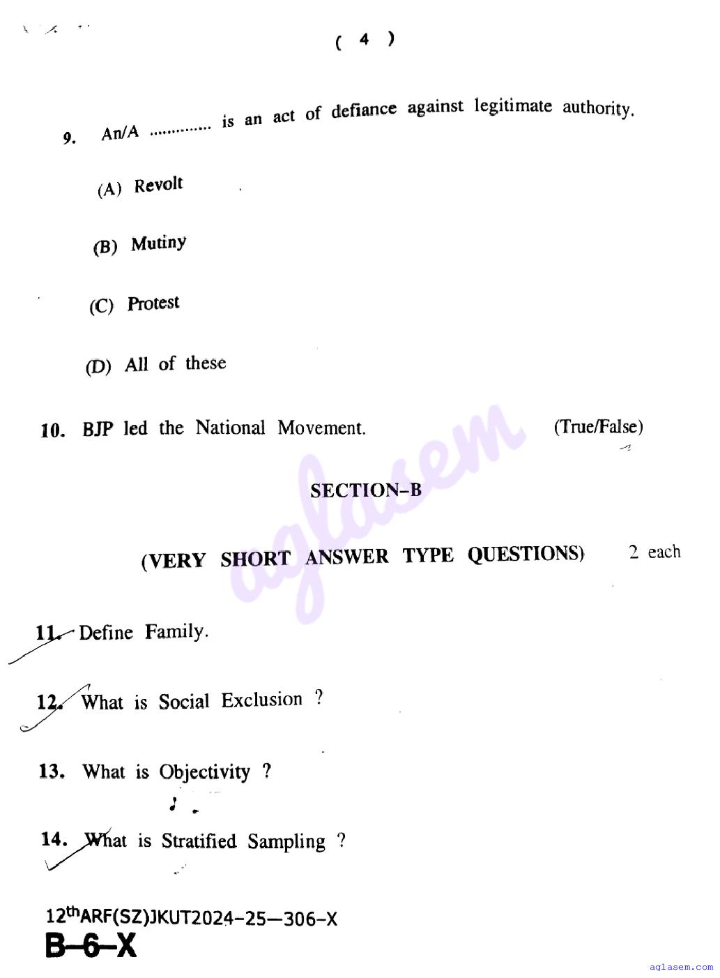 The JKBOSE question paper for class 12 Sociology is as follows.