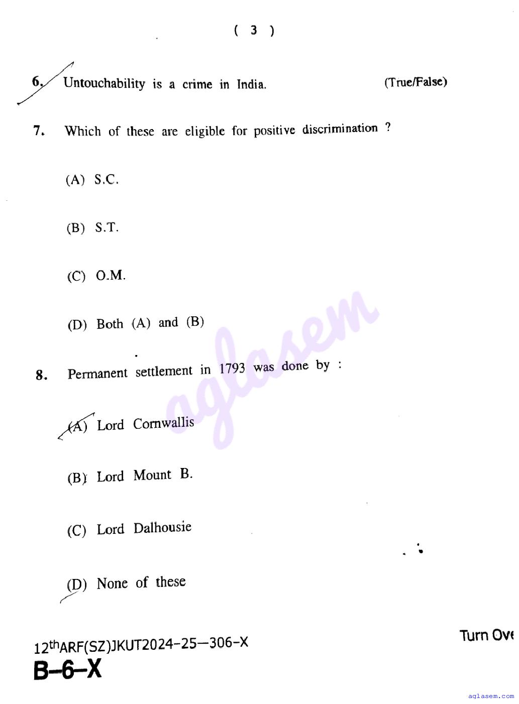 - JKBOSE Class 8th Previous Year Question Papers