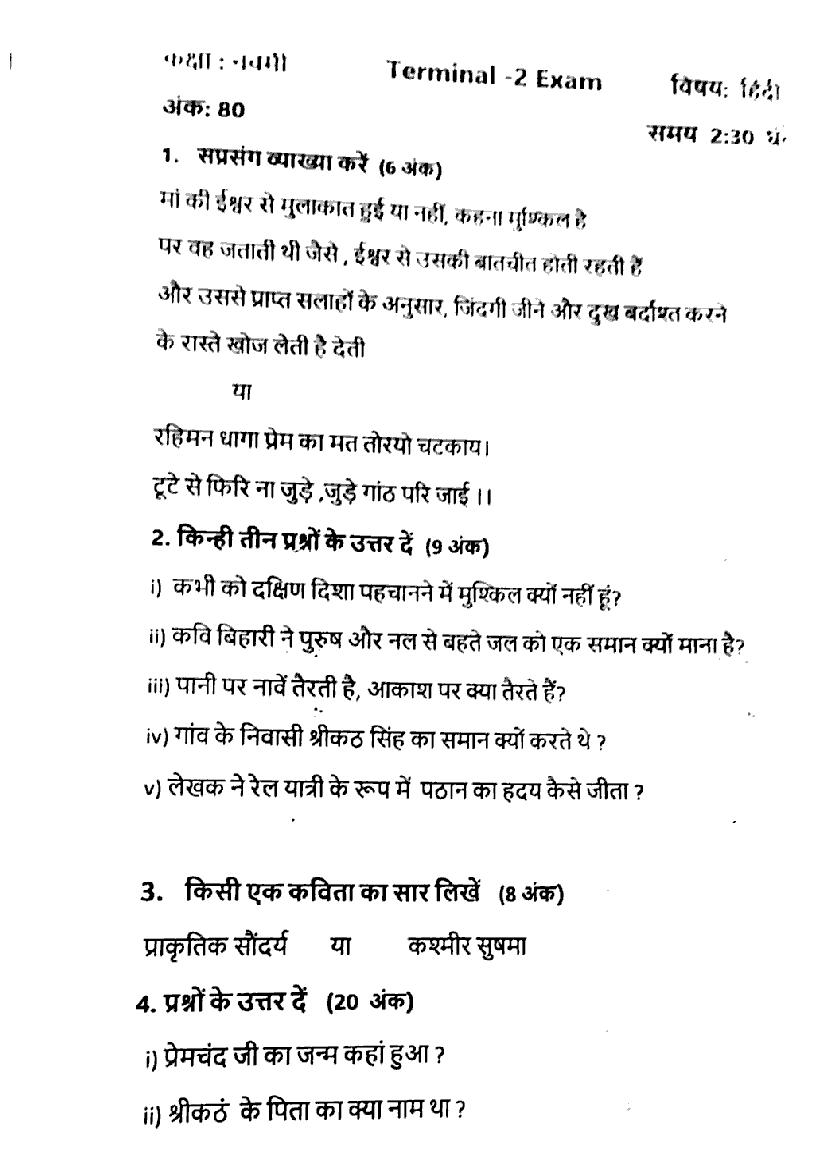 The JKBOSE question paper for class 9 Hindi is as follows.