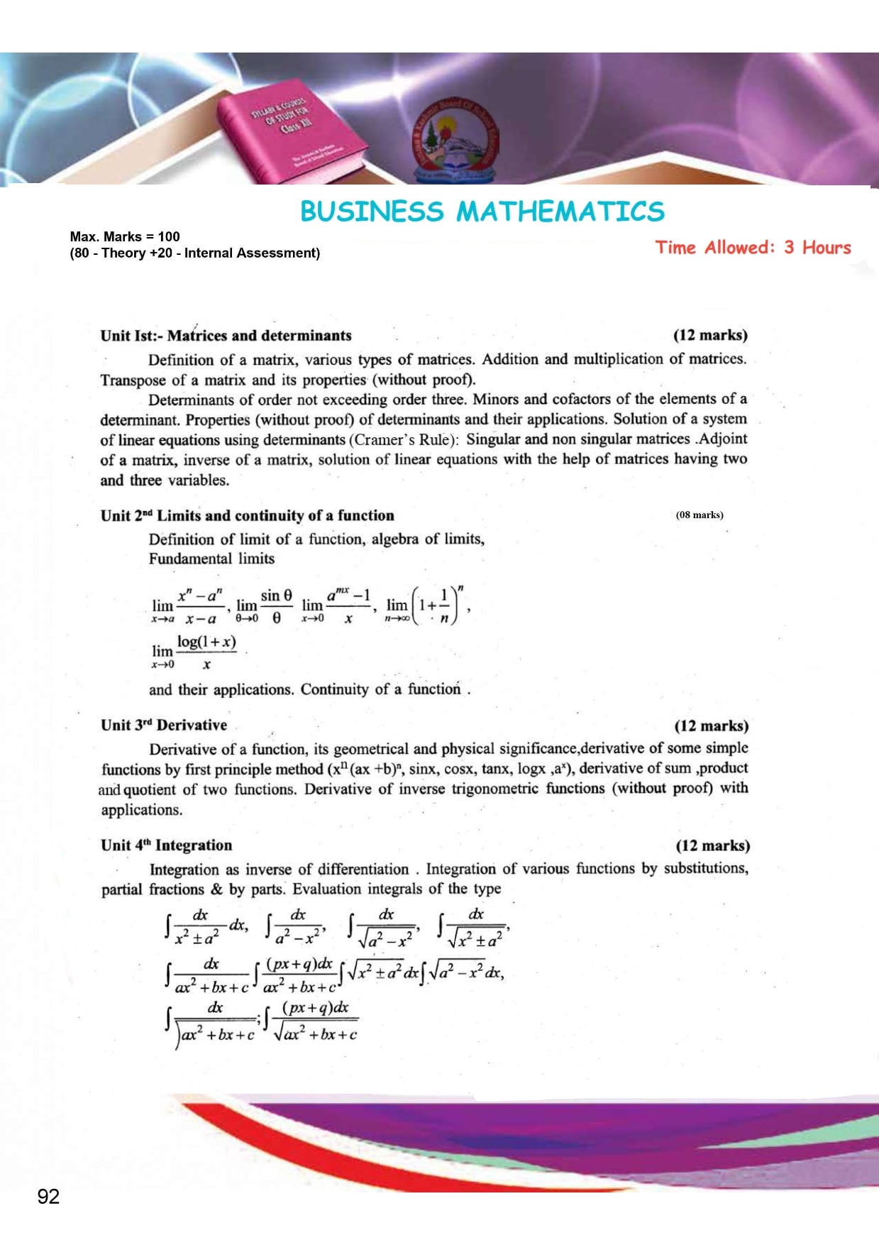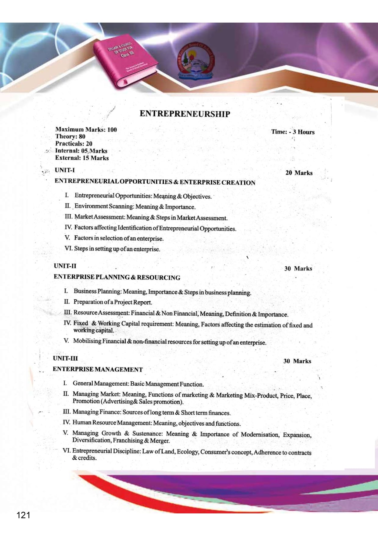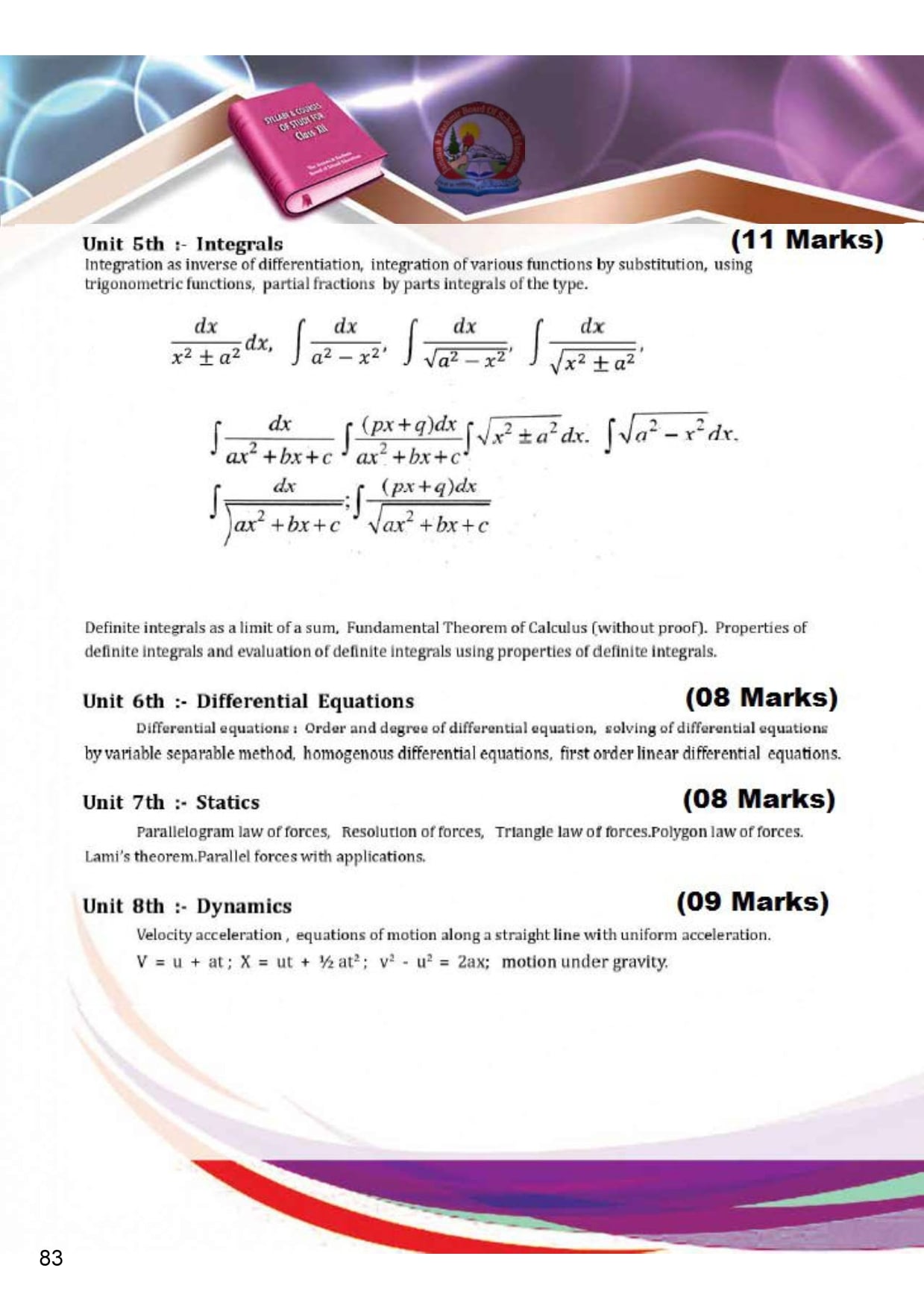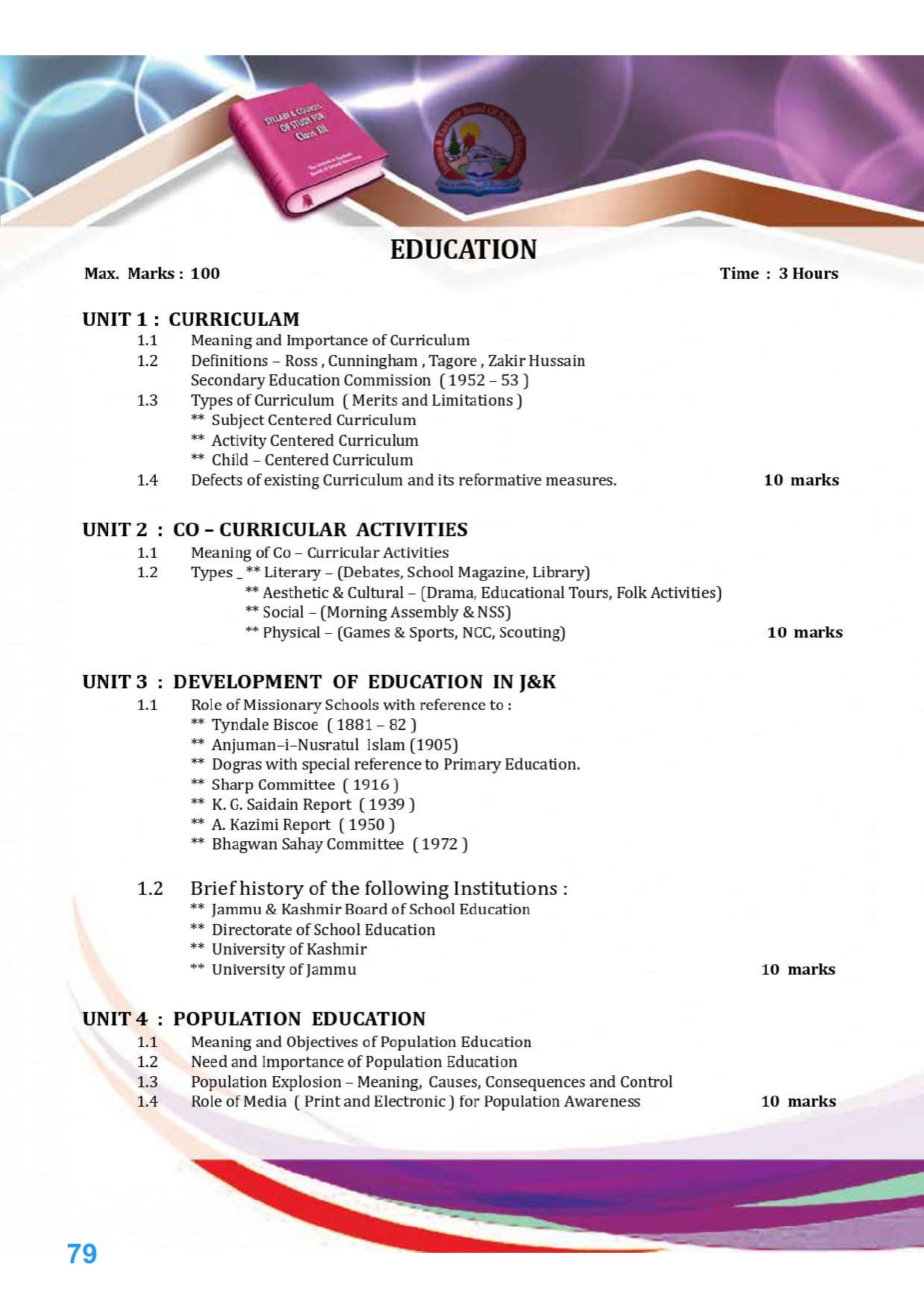 Jammu Kashmir Board Syllabus