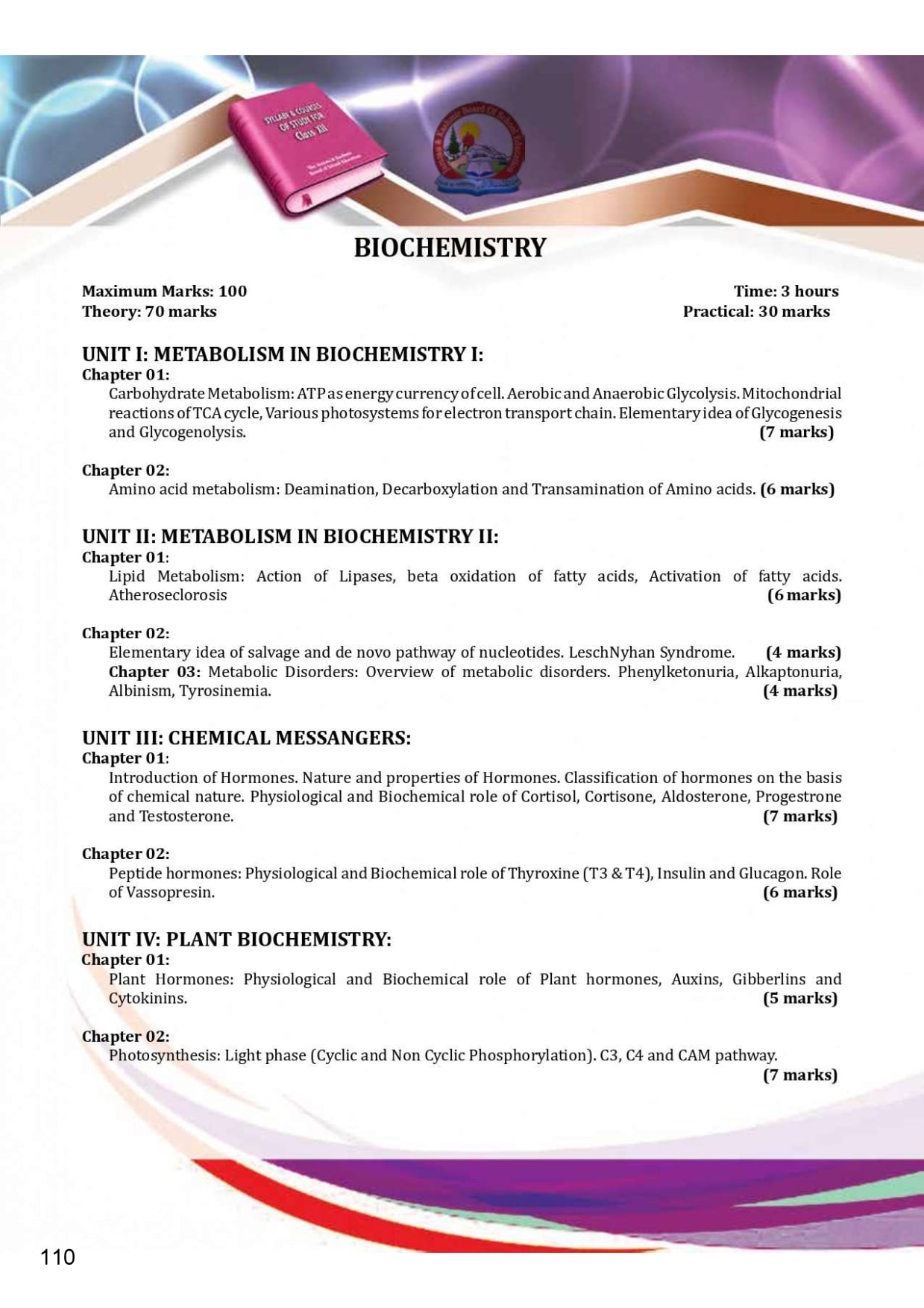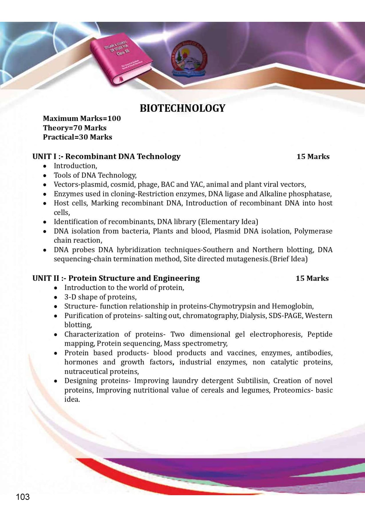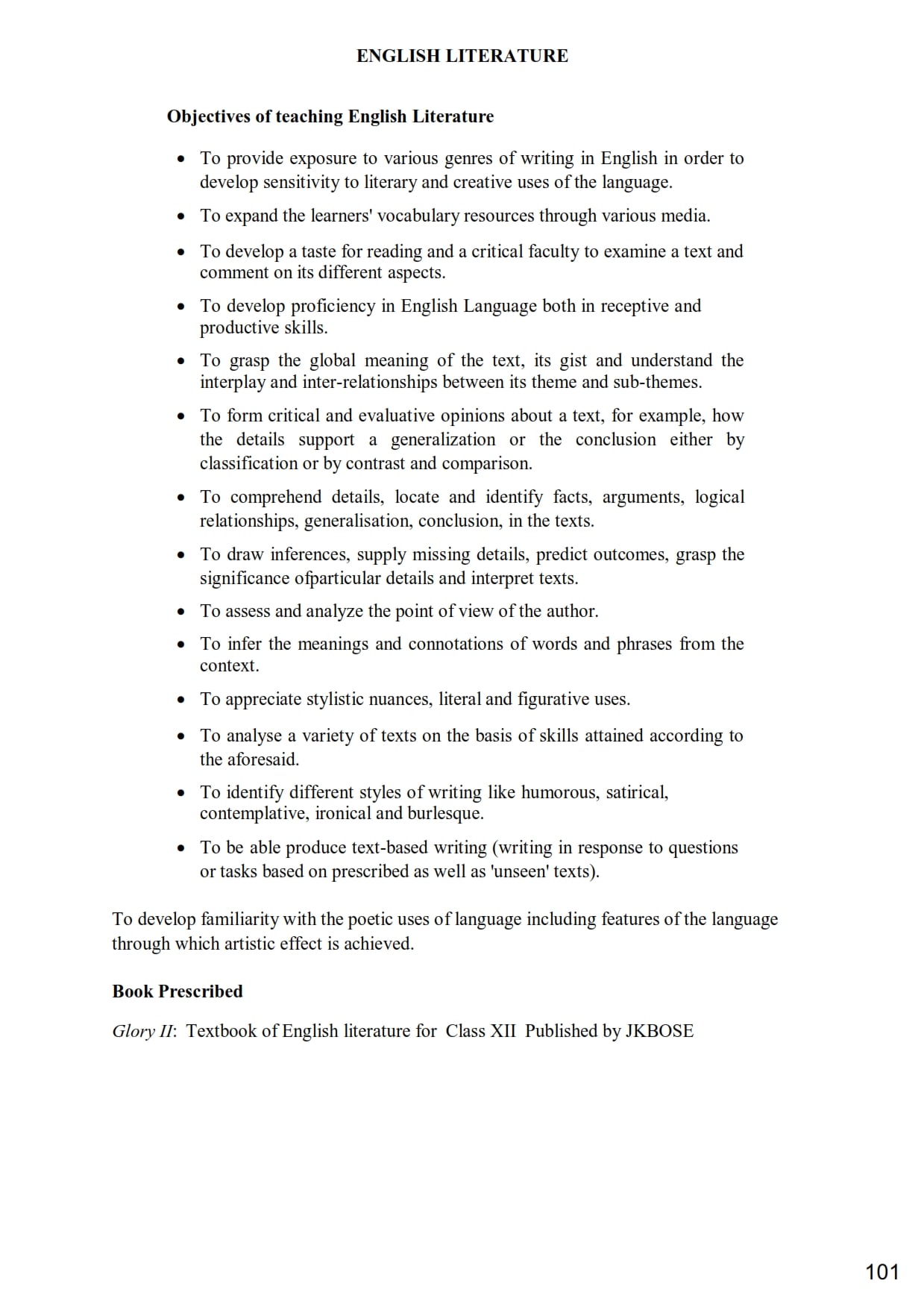 JKBOSE Class 12th Syllabus 2025