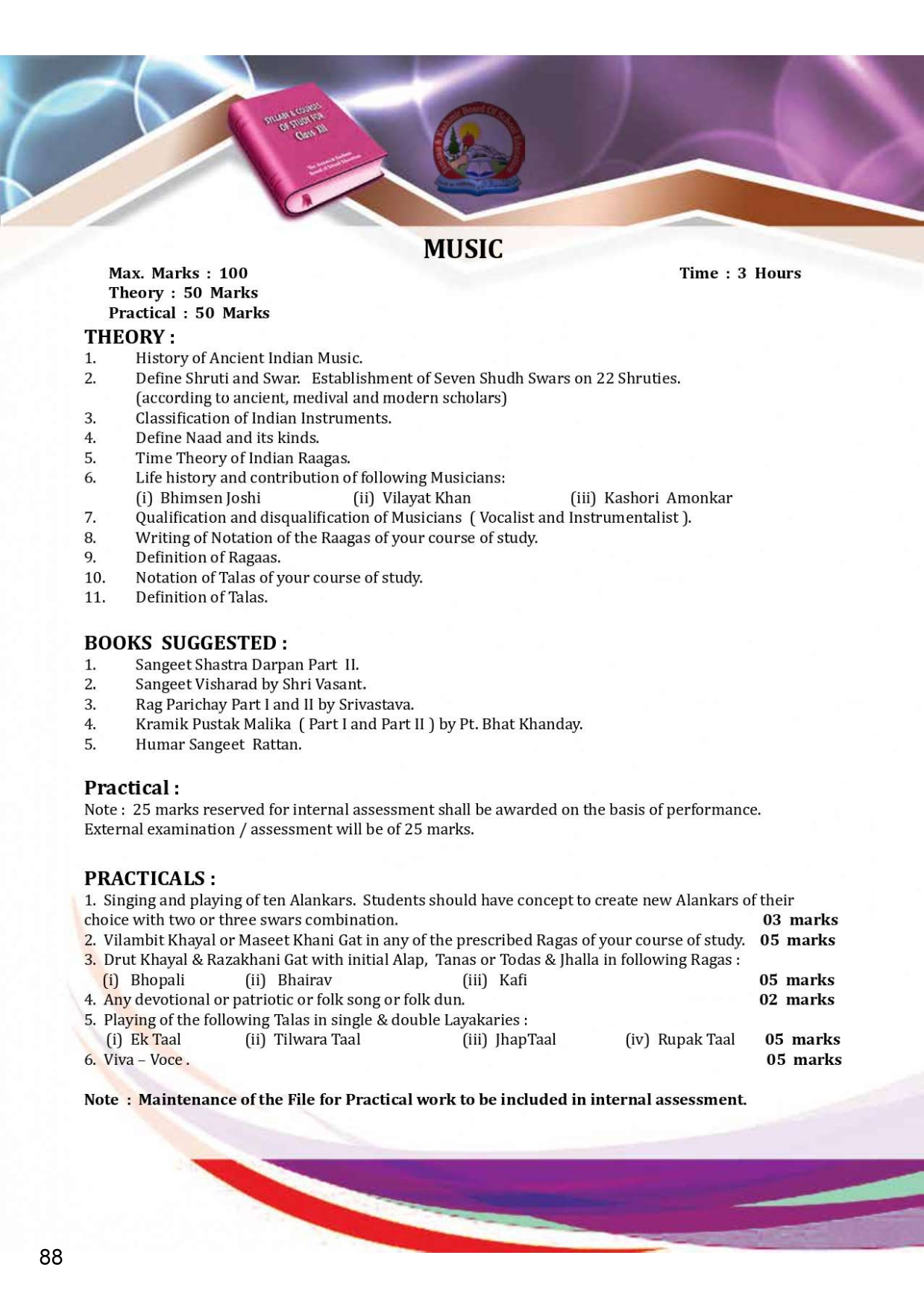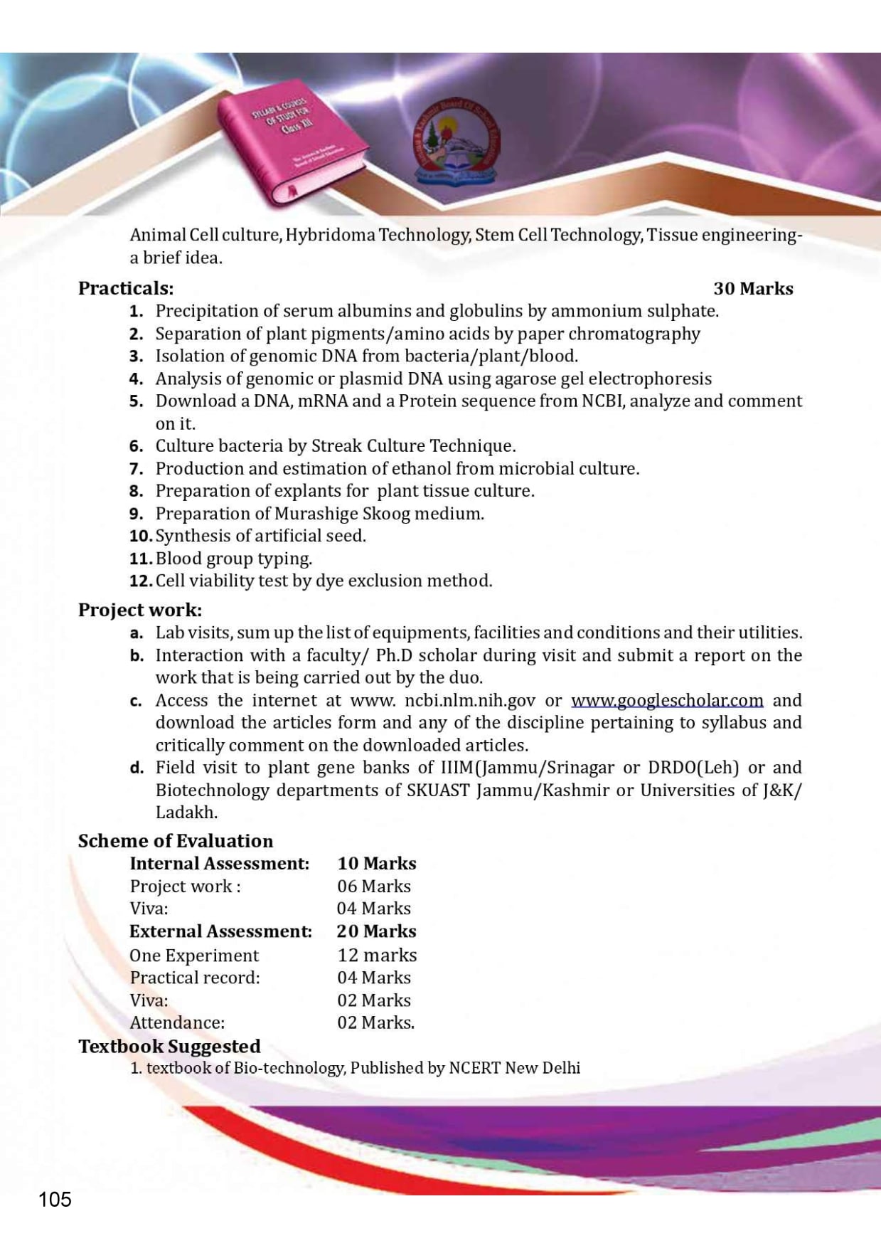 The Jammu and Kashmir Board Syllabus for Class 12 is the list of subjects, and their topics included by Jammu and Kashmir Board of School Education (JKBOSE) for class 12 course of study. The JKBOSE Class 12th Syllabus is as follows. However keep checking jkbose.nic.in for any changes in curriculum of Jammu Kashmir board.