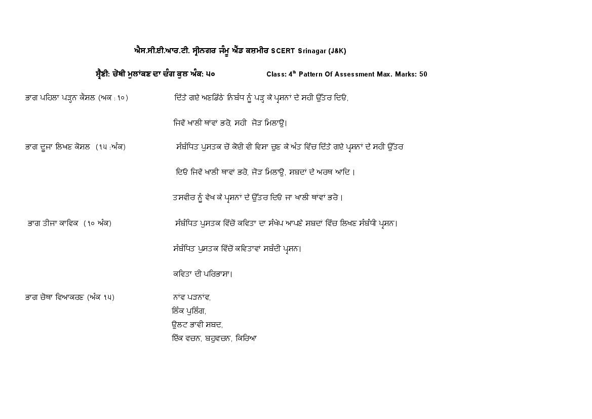 JKBOSE Class 4th Syllabus 2025